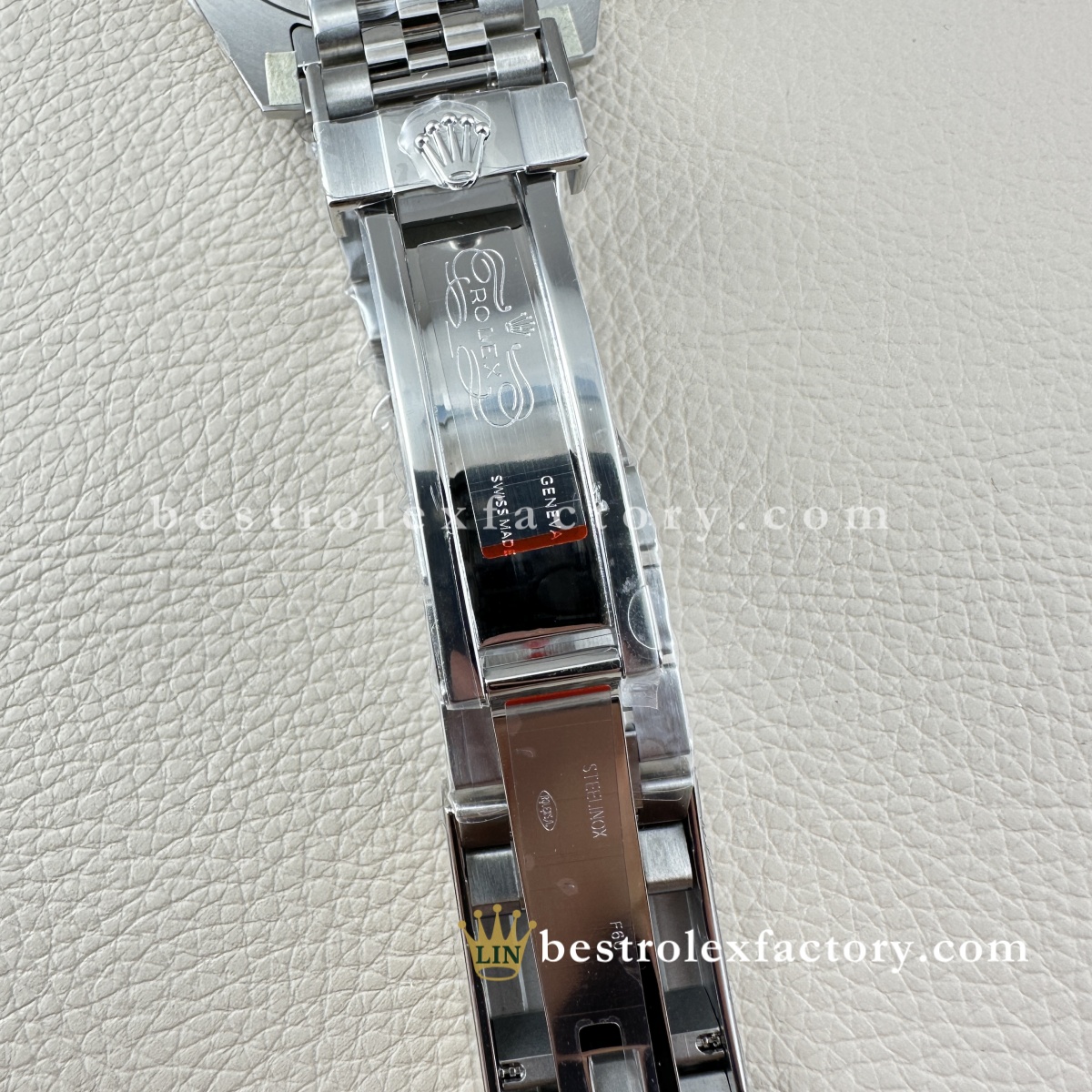 - Il bracciale ha maglie solide con articolazione perfetta ed esattamente lo stesso peso dell'originale. Gli attacchi si adattano perfettamente alla cassa senza spazi. La chiusura ha quel clic solido – non quel suono da barattolo delle versioni più economiche.
