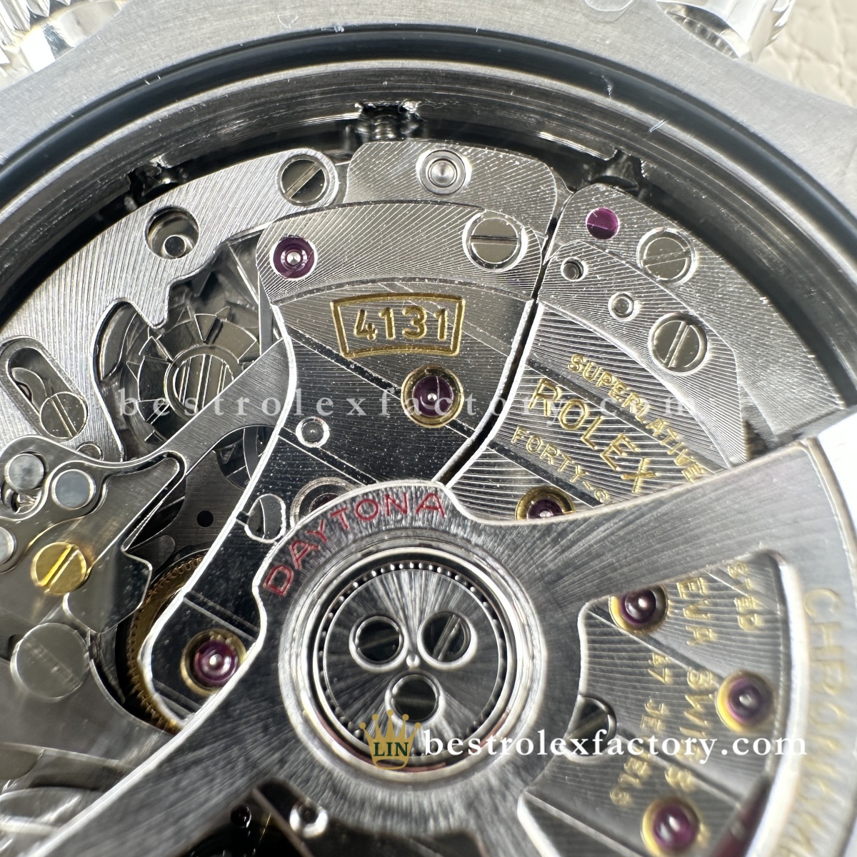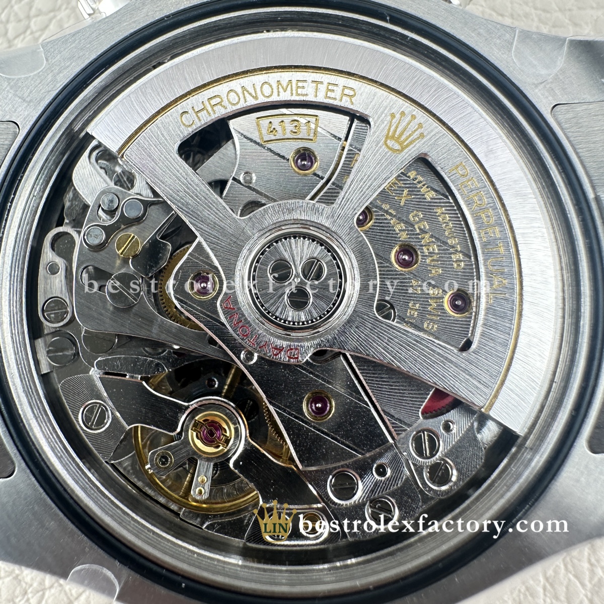 - Dentro è dove diventa davvero pazzo. Movimento clone 4131. Non una versione "sembra un po' così" --- abbiamo smontato il vero 4131, mappato ogni gioiello, ingranaggio e molla. Start/stop/reset sul cronografo? Liscio, clicky, stretto --- come quello vero. Nessun lag, nessun gioco. L'abbiamo persino fatto girare in un track day. Completamente accurato.