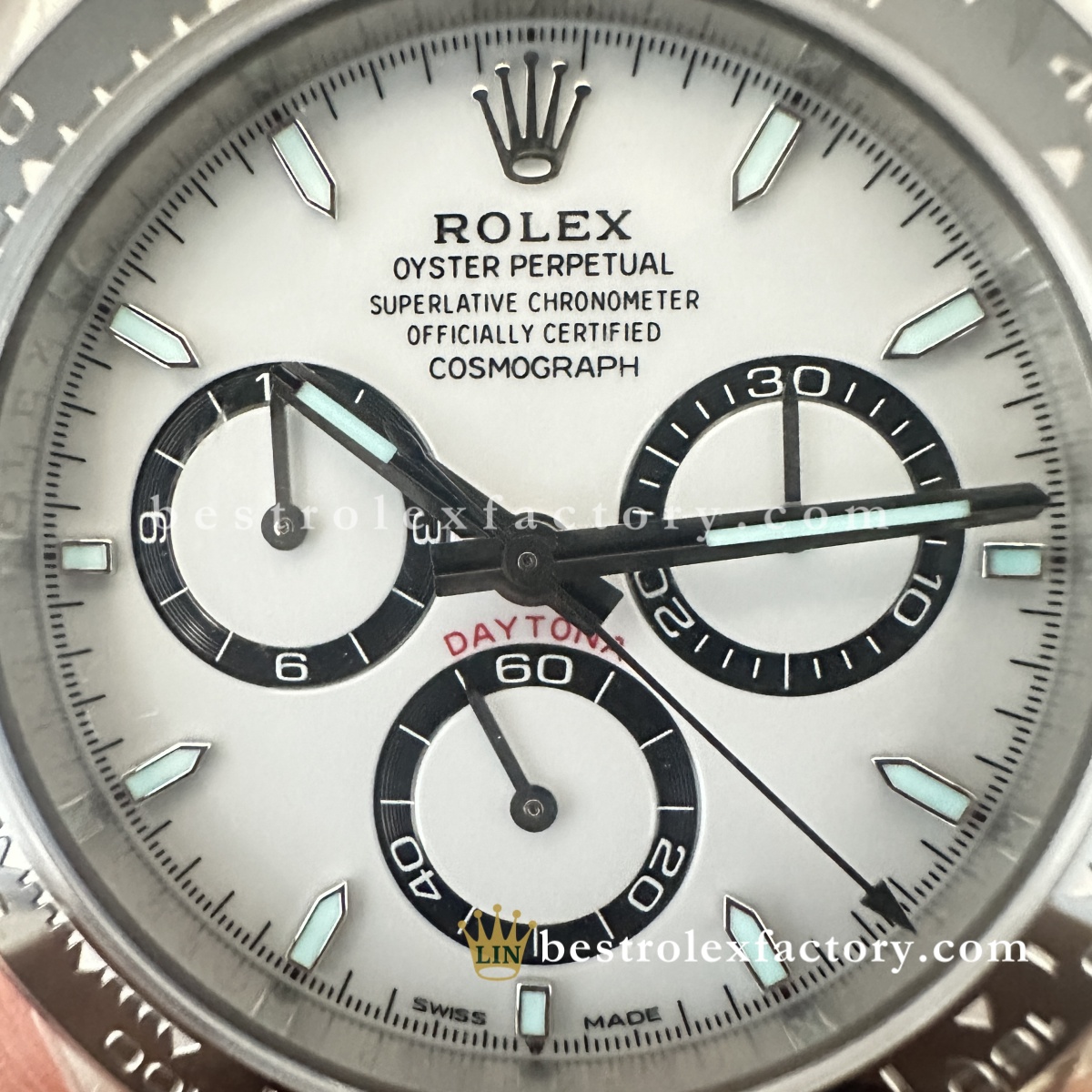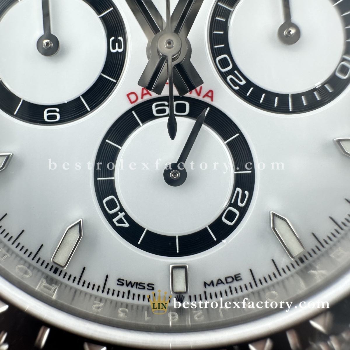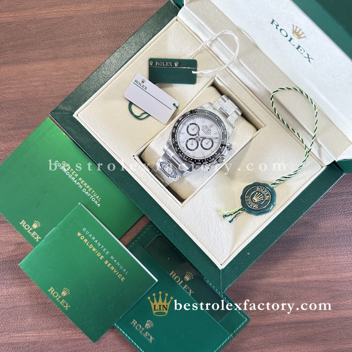 - Il Rolex Daytona Panda? Questo era quasi troppo ambizioso da toccare. Il Clean Factory 126500LN-0001 --- quadrante bianco, subdial neri, l'icona che tutti fissano --- e ci siamo buttati a capofitto. La parte spaventosa? È venuto fuori così vicino, che veri orologiai ci stanno chiamando per comprare le nostre parti per riparazioni genuine.