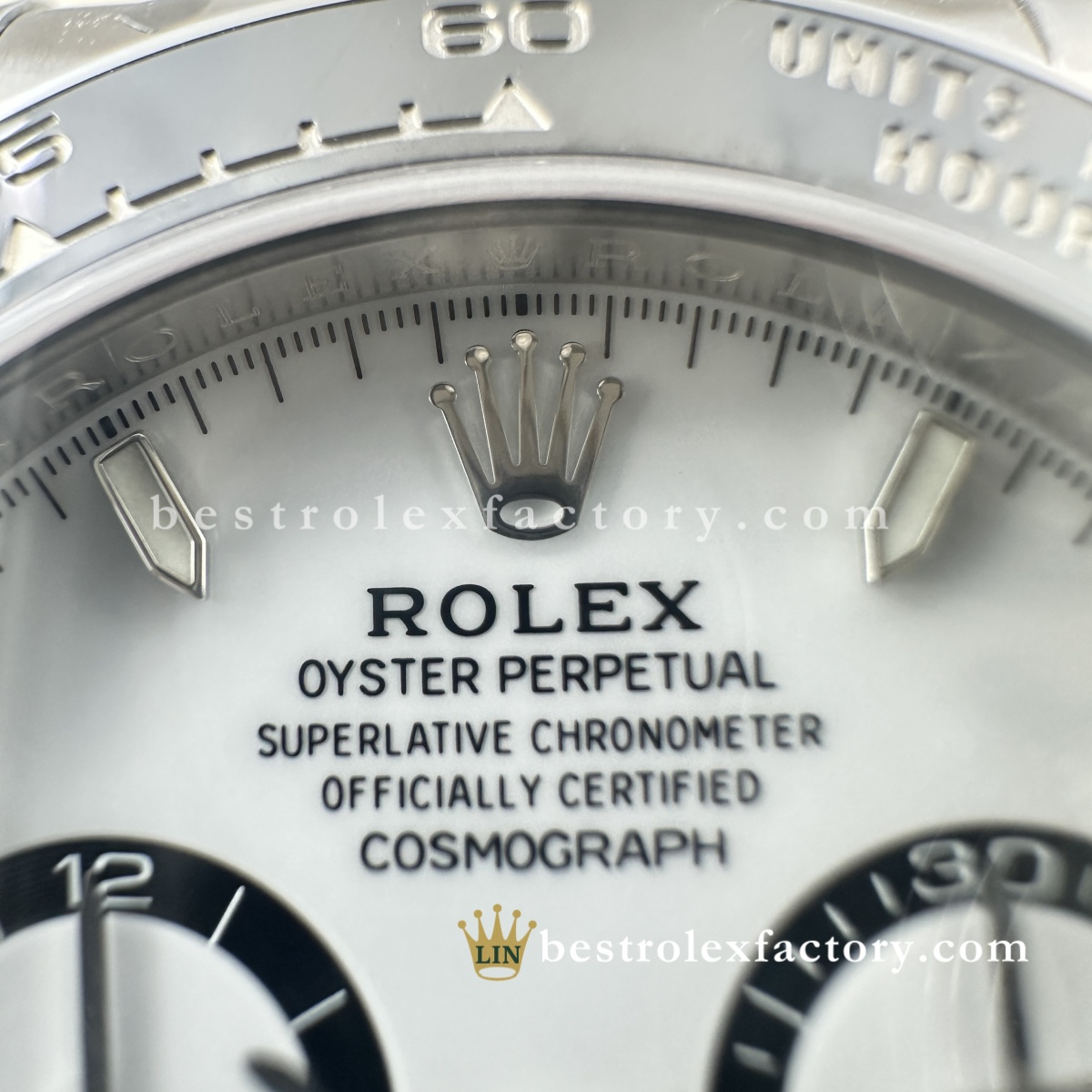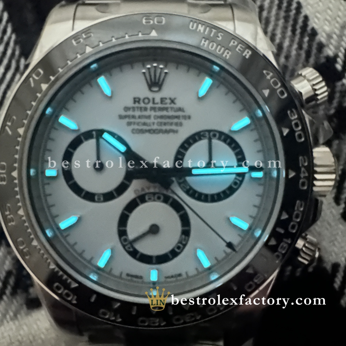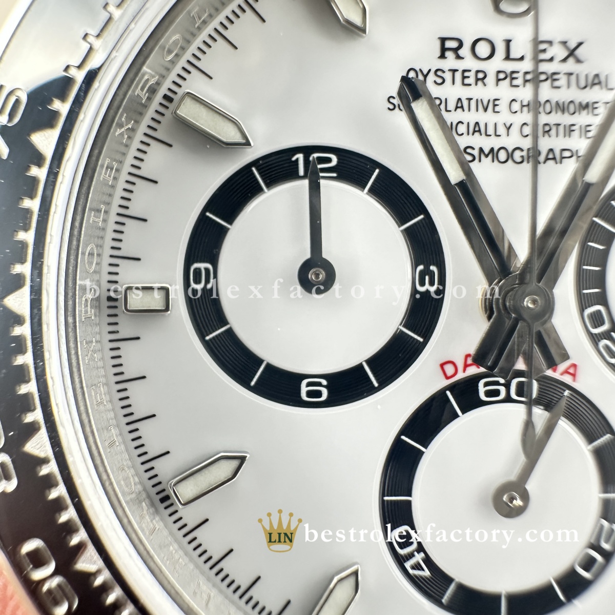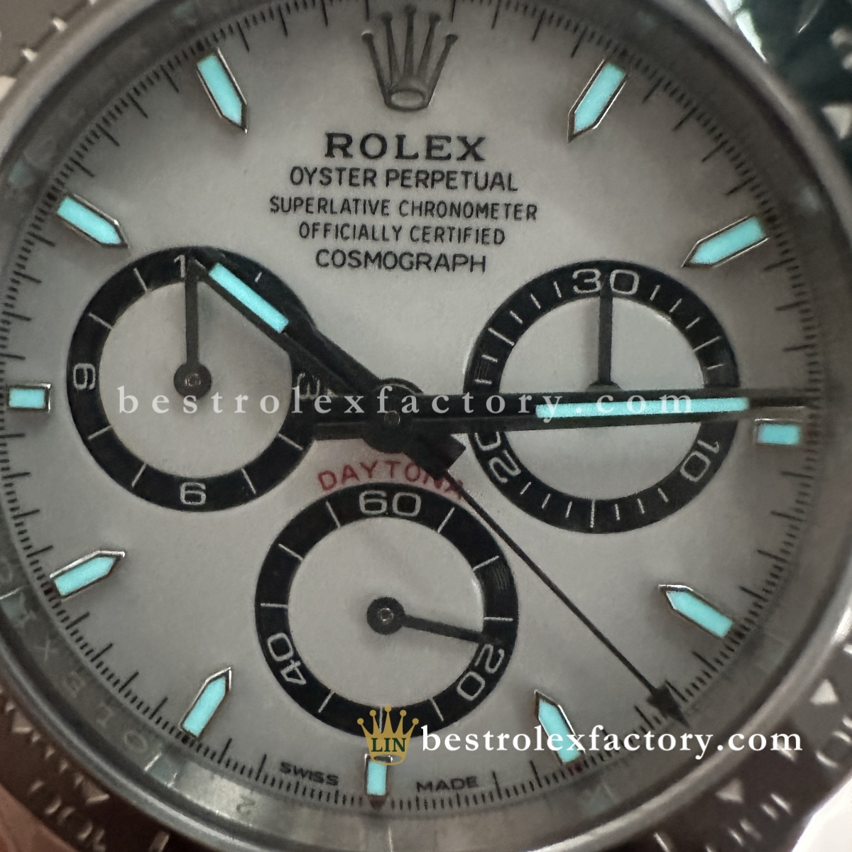 - Il Rolex Daytona Panda? Questo era quasi troppo ambizioso da toccare. Il Clean Factory 126500LN-0001 --- quadrante bianco, subdial neri, l'icona che tutti fissano --- e ci siamo buttati a capofitto. La parte spaventosa? È venuto fuori così vicino, che veri orologiai ci stanno chiamando per comprare le nostre parti per riparazioni genuine.