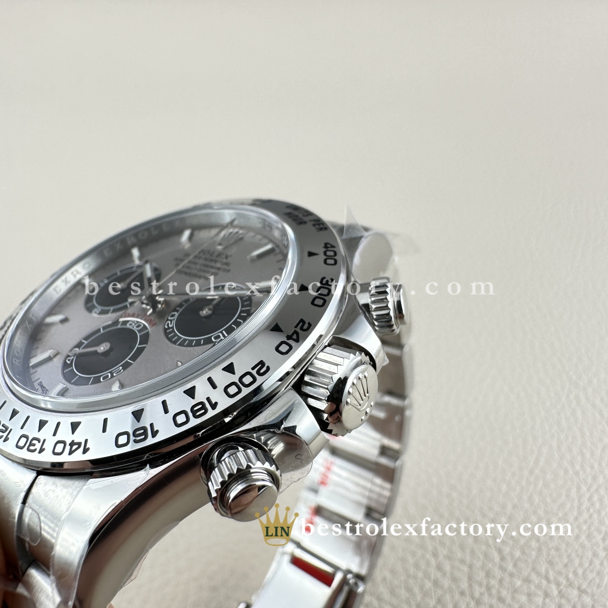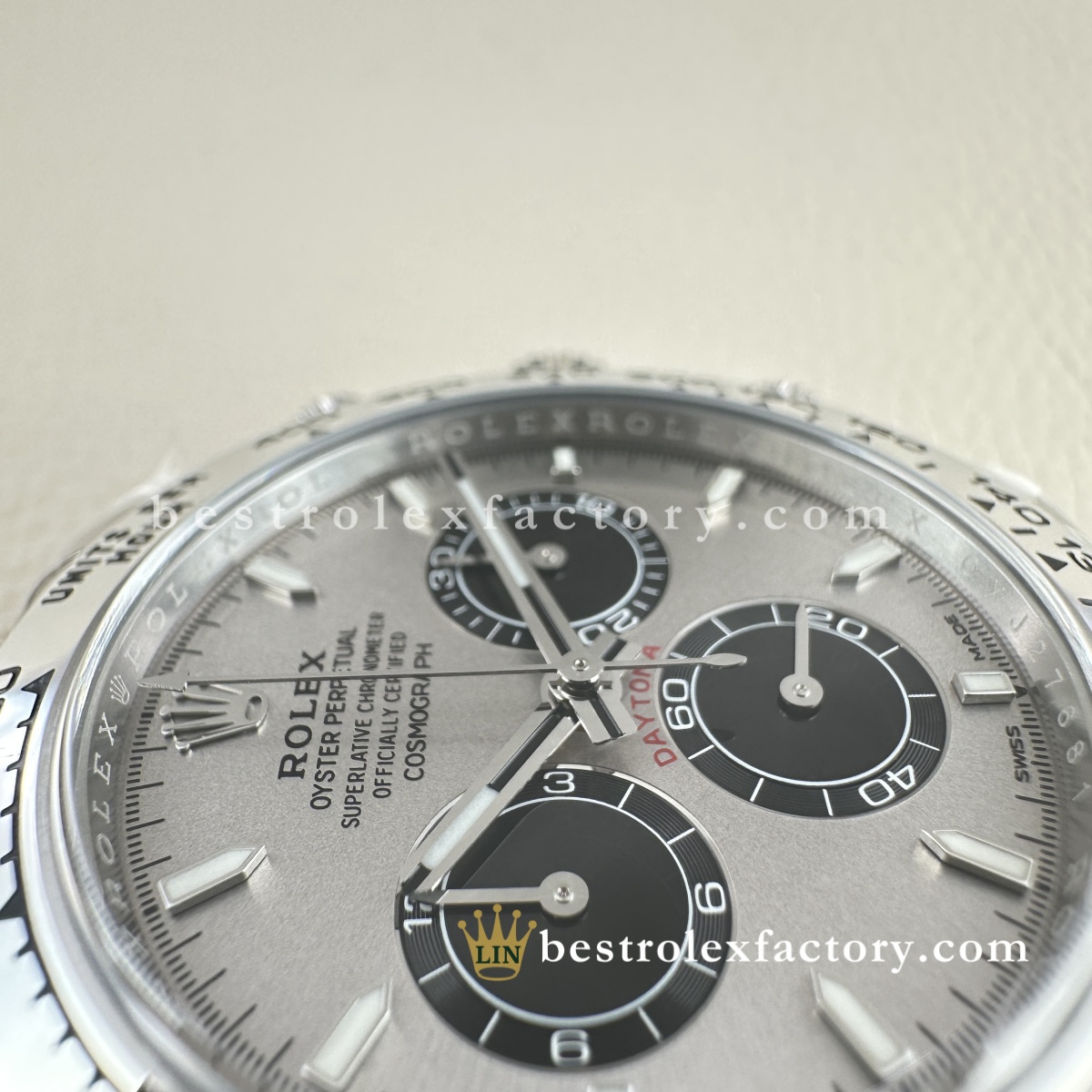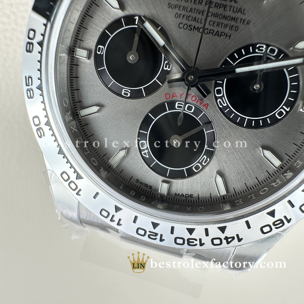 | BEZEL | – Grey Panda monobloc solid Ceramic with metal ring around the outer Ceramic. – Fixed (does not move) with engraved tachymetric scale£¬Conform to genuine craftsmanship. Not even some of the jewelers¡¯ experts could tell the difference! – Real Gold coated numerals and graduations,Conform to genuine craftsmanship. Not even some of the jewelers¡¯ experts could tell the difference! – Construction and design 100% same as Genuine, it can be interchanged with the genuine one £¬The steel bezel has a brushed finish, giving the watch a sleek and reflective look. It blends seamlessly with the Oystersteel case, maintaining a cohesive and robust aesthetic. The steel bezel is a hallmark of vintage and earlier Daytona models. |