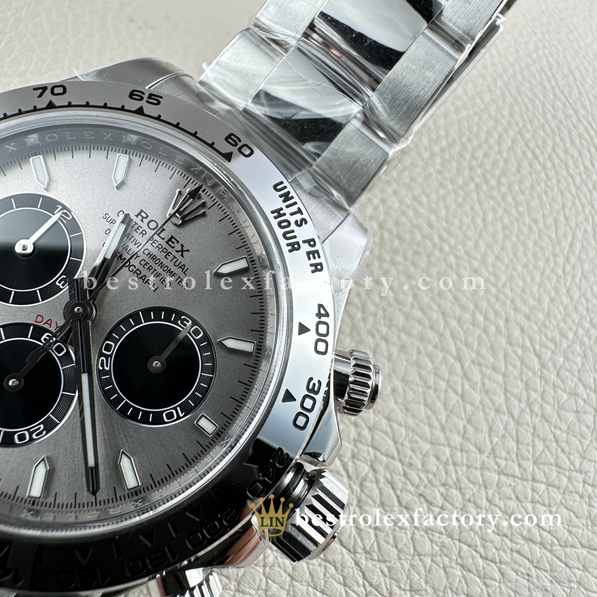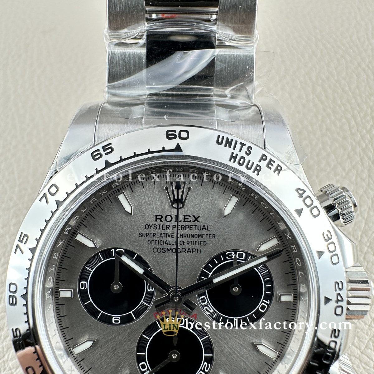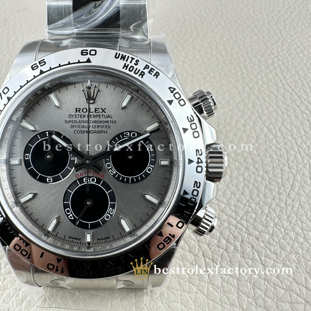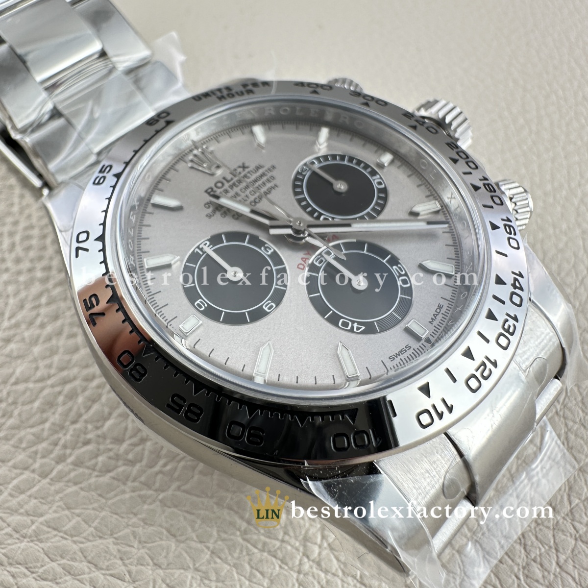 | BEZEL | – Grey Panda monobloc solid Ceramic with metal ring around the outer Ceramic. – Fixed (does not move) with engraved tachymetric scale£¬Conform to genuine craftsmanship. Not even some of the jewelers¡¯ experts could tell the difference! – Real Gold coated numerals and graduations,Conform to genuine craftsmanship. Not even some of the jewelers¡¯ experts could tell the difference! – Construction and design 100% same as Genuine, it can be interchanged with the genuine one £¬The steel bezel has a brushed finish, giving the watch a sleek and reflective look. It blends seamlessly with the Oystersteel case, maintaining a cohesive and robust aesthetic. The steel bezel is a hallmark of vintage and earlier Daytona models. |