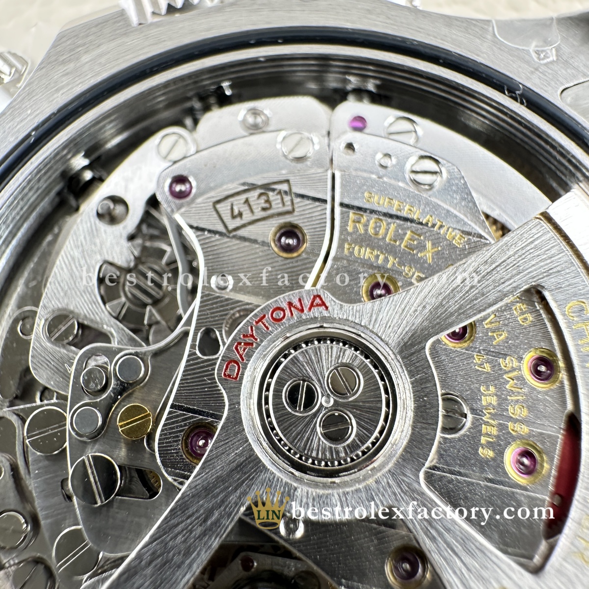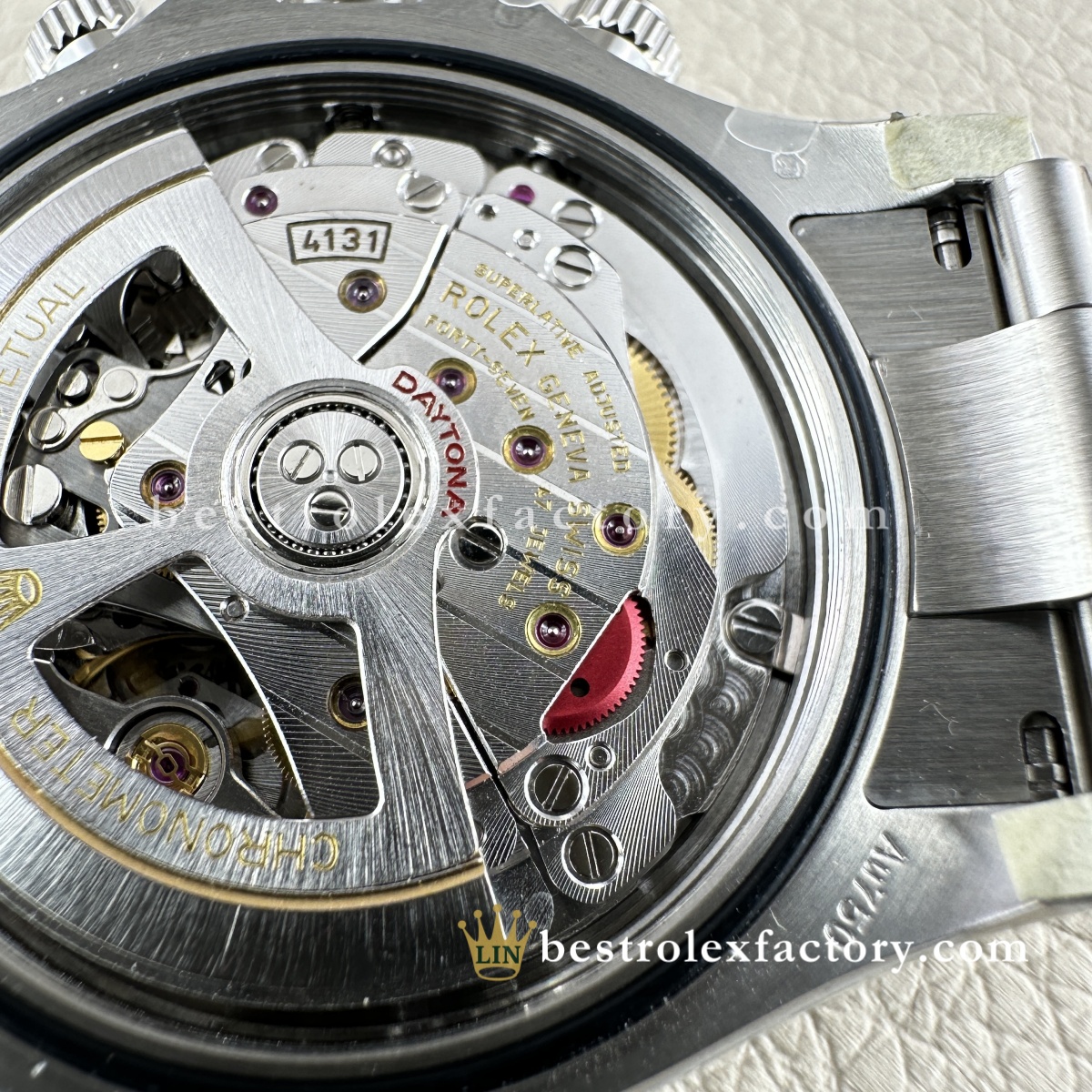 | MOVEMENT | – Recognized the best super clone exclusive clean factory 4131 Chronograph, components use Swiss ETA – Correct serial numbers and identical markings inside and out. Not even your jeweler could tell the difference! – Oscillator: Anti magnetic – Glucydur gilt ¨C anti-magnetic balance wheel – Two years warranty – Automatic, Perpetual mechanical chronograph bidirectional self-winding via perpetual rotor – Smooth Sweeping Seconds Hand Motion, 28.800 VPH (4Hz) – 44 Jewels (Red rubies) – Swiss Nano-Oil lubricated |