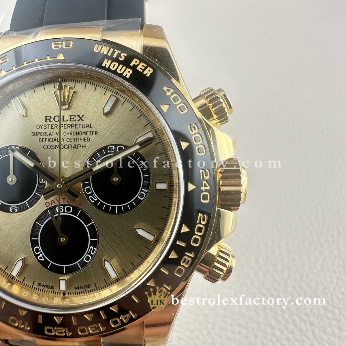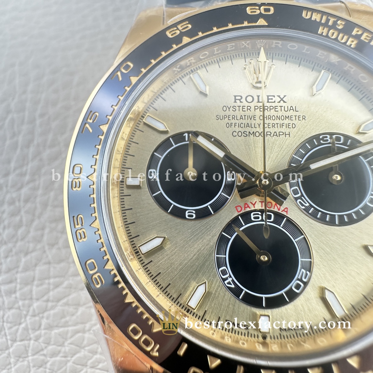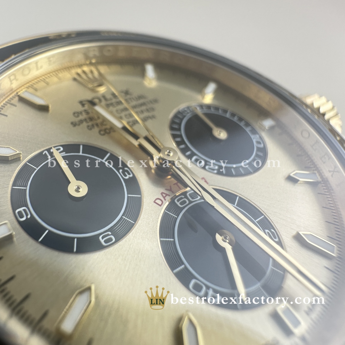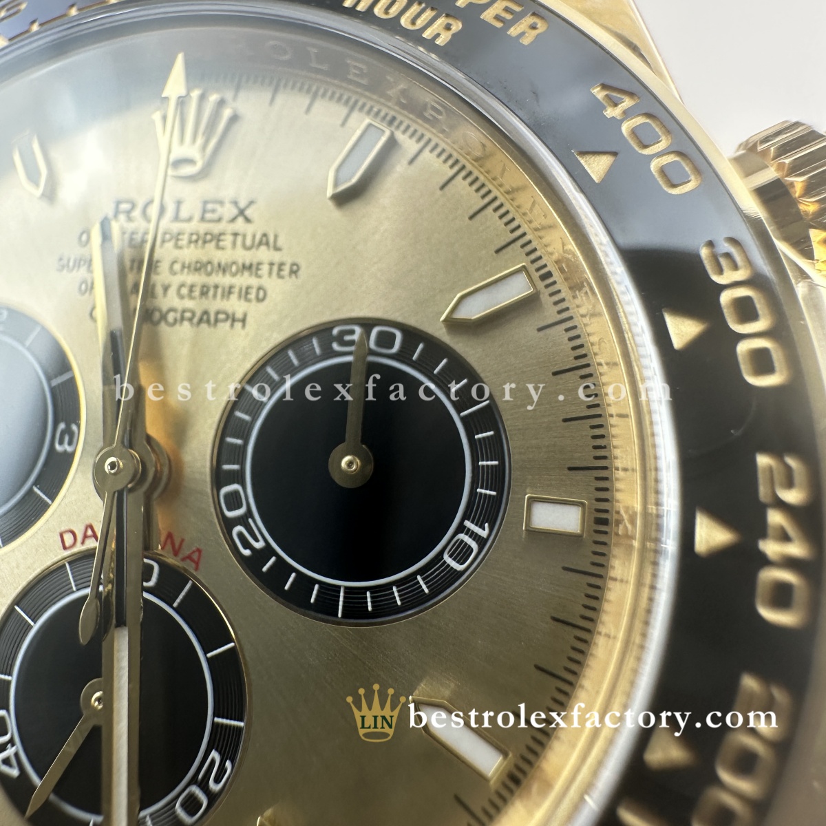 I was wary about buying a gold-tone watch, especially a replica, but I’m blown away. Having owned the real 116518 for years, I’m confident in saying this is 90–95% accurate. From case curves to pusher action, it’s just that well done. I wear this instead of the real one when I travel — no stress, and it still gets compliments from serious collectors.