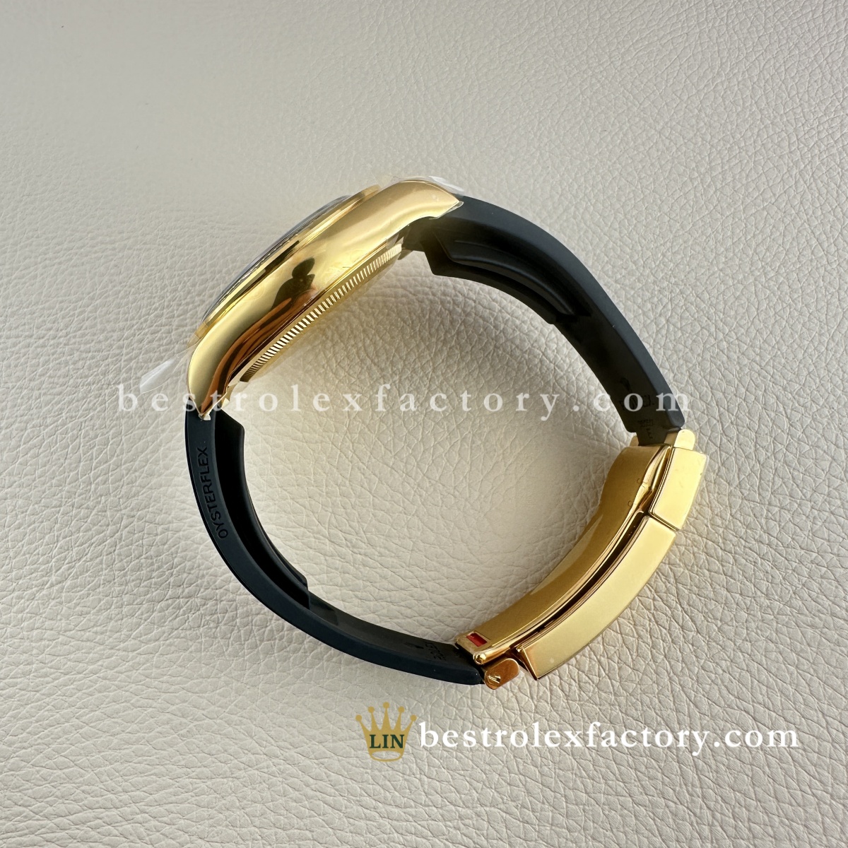 Weight is spot on for a gold piece with Oysterflex. Feels solid and premium, not light or tinny like cheaper reps.