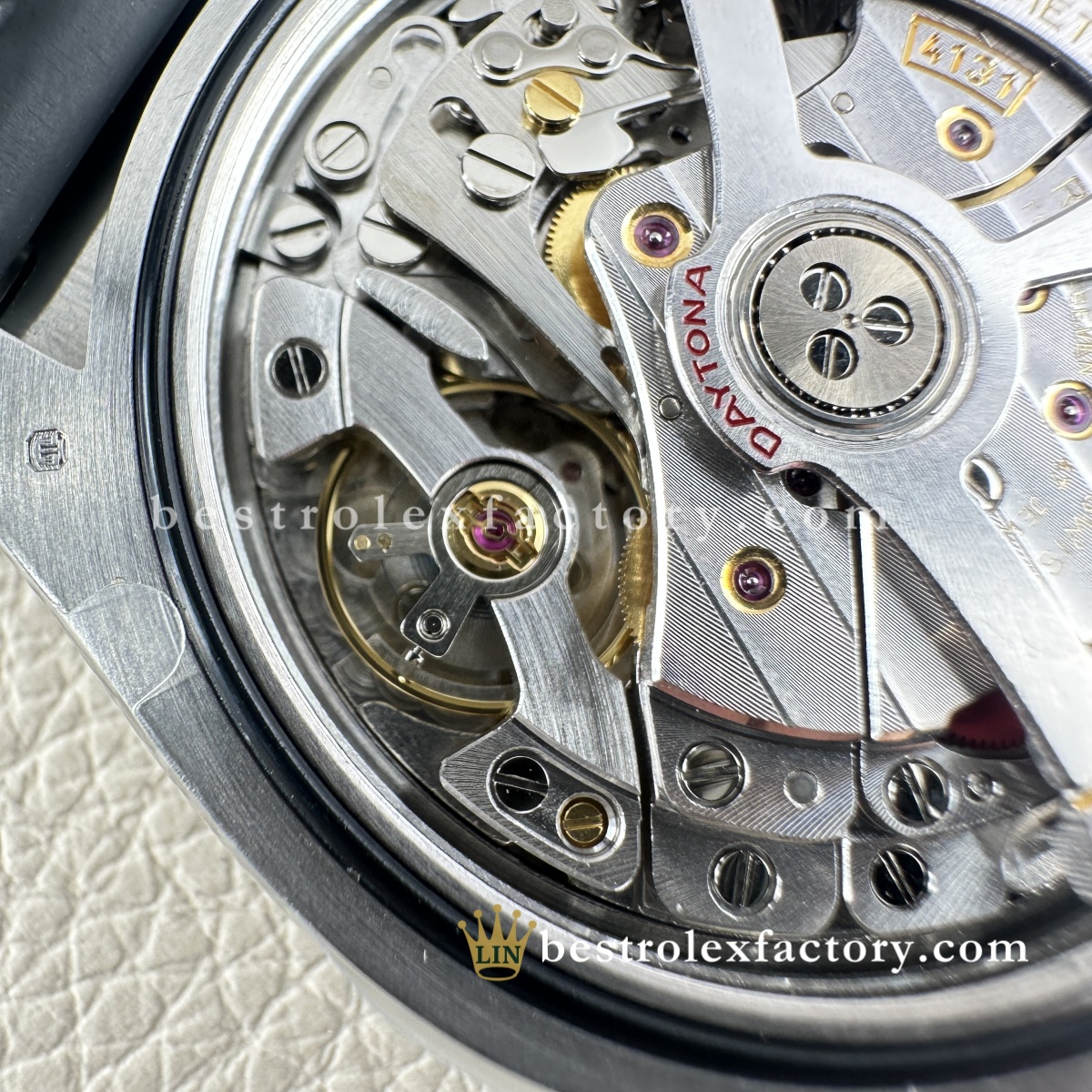Text printing on the dial is laser-sharp. The ‘Daytona’ script in red is vivid and sits just above the lower subdial with precision.
