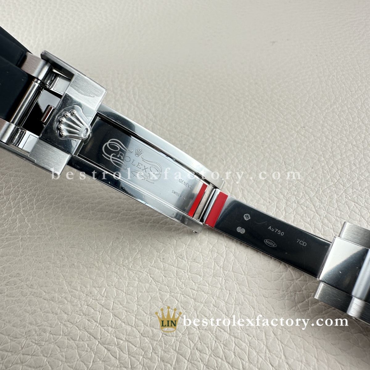 - Poi c'è il bracciale Oysterflex. Guarda, abbiamo tutti visto cinturini di gomma economici che cercavano di passare per Oysterflex. Questo non è quello. Clean Factory si procura genuino Oysterflex importato dalla Svizzera con la vera lama metallica inserita dentro, completo del sistema di combinazione taglie D, E, F per quella vestibilità perfetta ogni volta. Questa cosa si flette e si muove con il tuo polso come se fosse parte di te, ma con l'integrità strutturale di un bracciale metallico. La chiusura Oysterlock avvolta in oro bianco? Scatta in posizione con la stessa autorità del genuino. Quel sistema di micro-regolazione Glidelock? Funziona esattamente come Rolex intendeva.