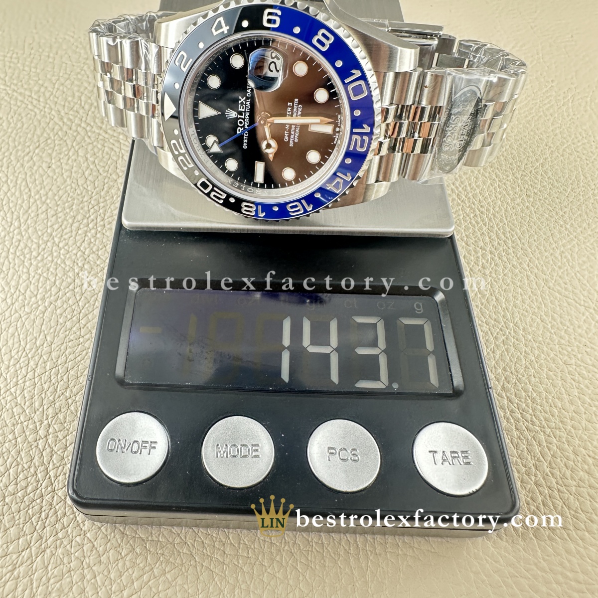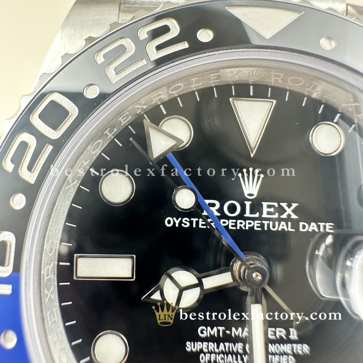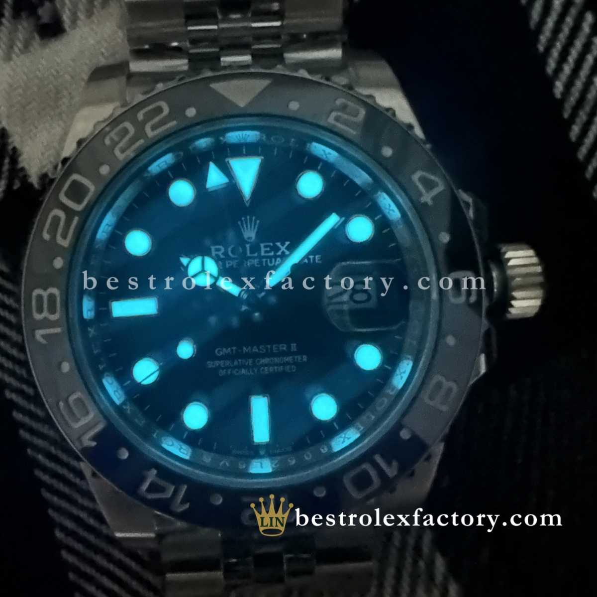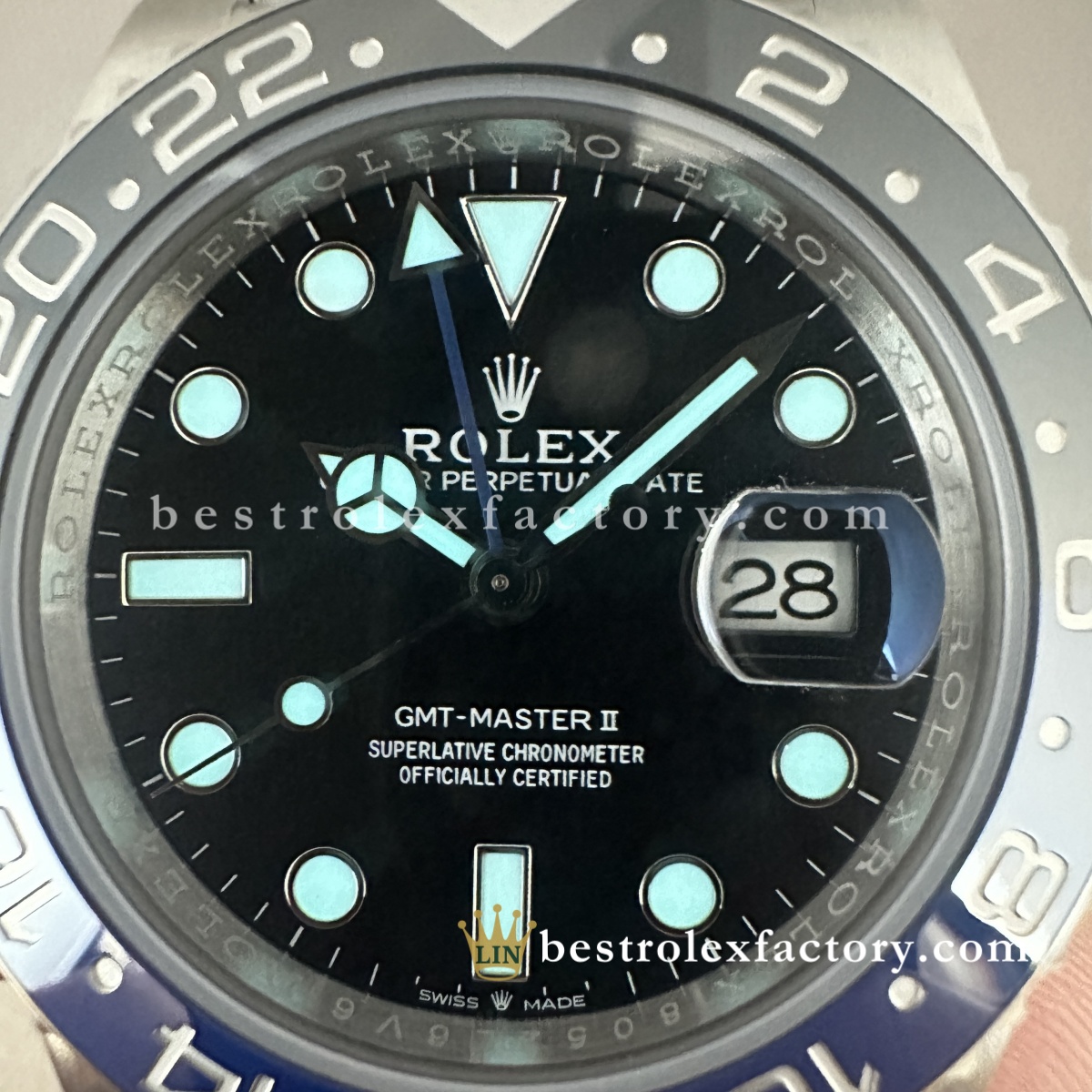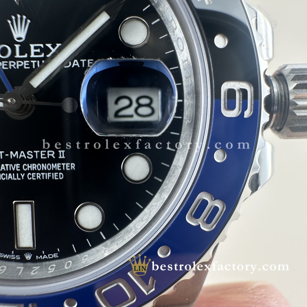 - Il nostro Batman 126710BLNR-0003 con bracciale Oyster è il classico che ha dato inizio a tutto. La prima lunetta ceramica bicolore di Rolex, quella splendida combinazione blu/nero è immediatamente riconoscibile ovunque. Li produciamo dal 2019, e ogni versione migliora. Quest'ultima iterazione? È quanto di più vicino all'originale si possa ottenere senza pagare prezzi da mercato grigio.