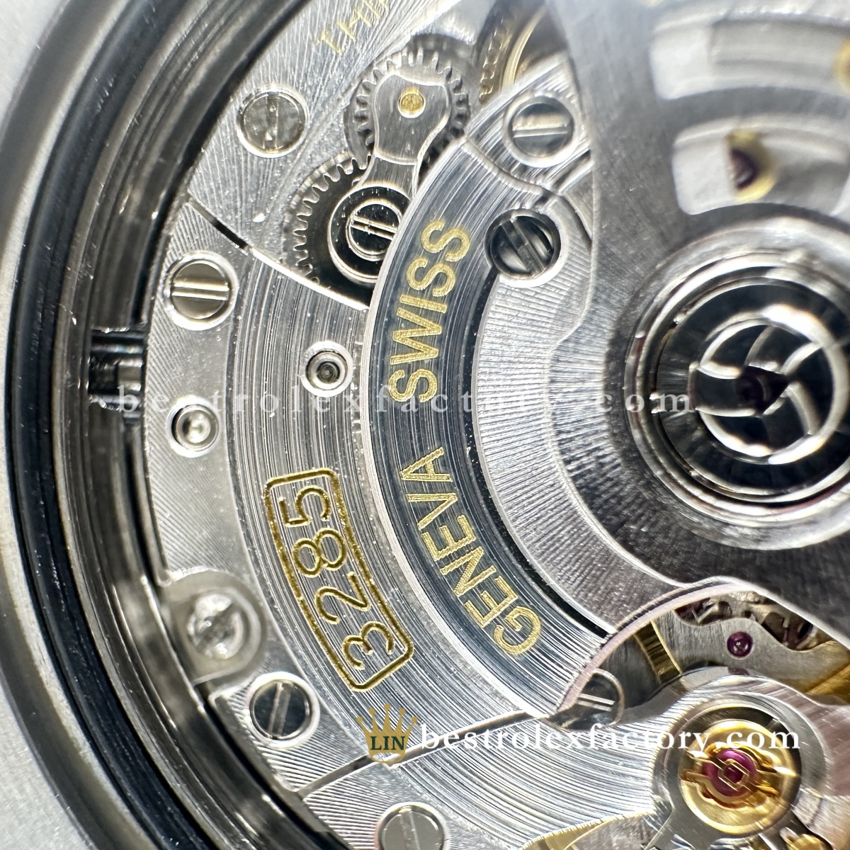 - All'interno c'è il nostro movimento 3285 migliorato con componenti svizzeri nei punti critici di usura. Altri venditori "Clean Factory" (che non siamo noi) riducono i costi utilizzando movimenti più economici che fanno risparmiare $150 ma sacrificano l'affidabilità. Il nostro movimento presenta una vera regolazione indipendente della lancetta delle ore per una corretta funzione GMT, riserva di carica di 72+ ore e cambio data preciso a mezzanotte - non quel giro lento che si ottiene con movimenti inferiori.