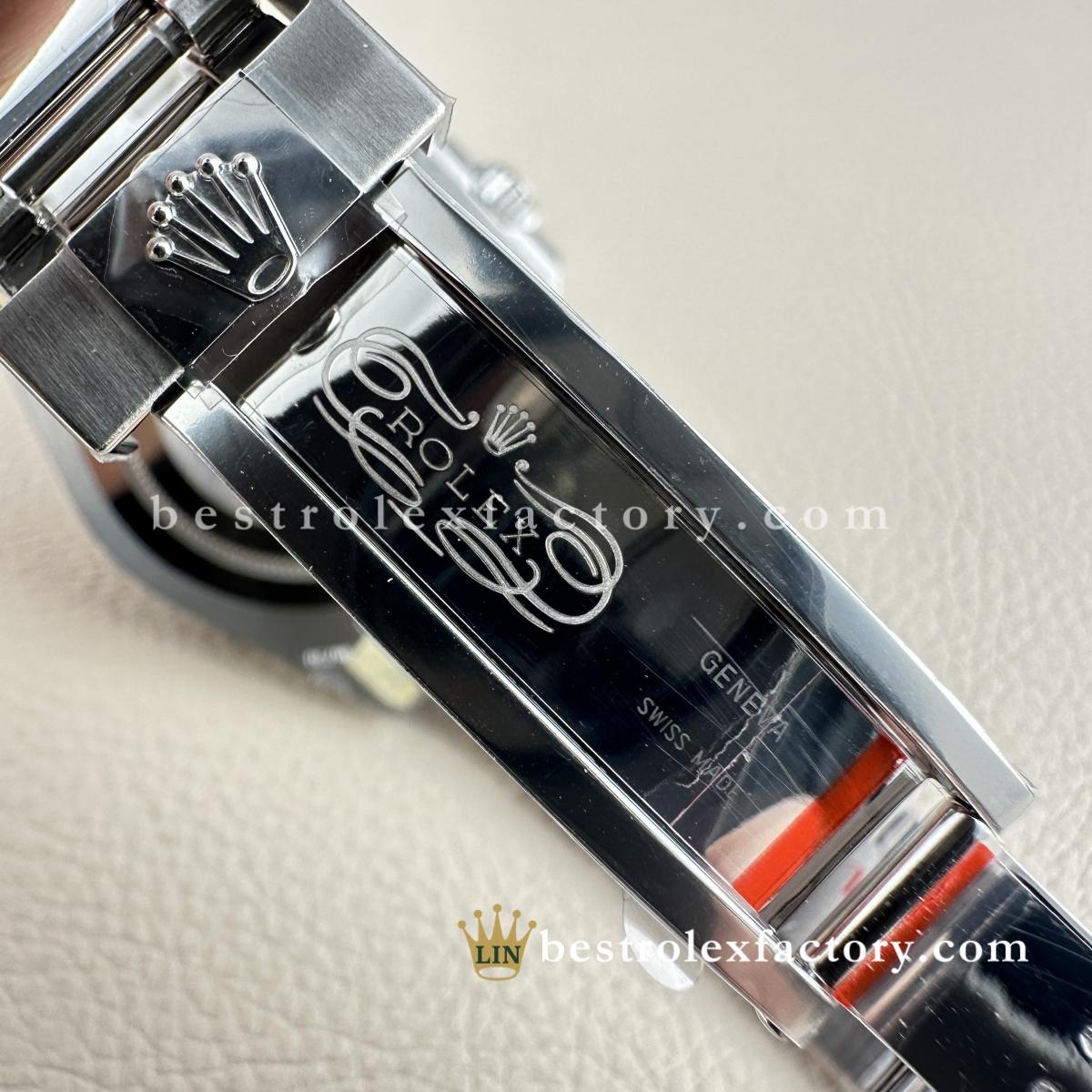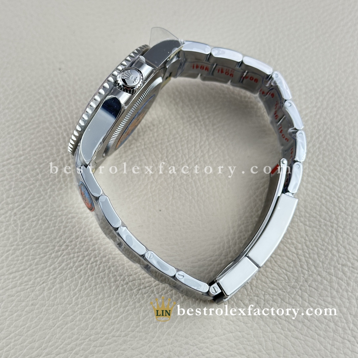 - La nostra lunetta in ceramica V3 è il vero punto di svolta qui - è l'unica sul mercato che diventa effettivamente rosso autentico sotto i test con luce UV, proprio come il Rolex genuino. Questo non è solo un dettaglio per nerd; è ciò che permette a questo pezzo di superare i controlli che smascherano immediatamente le versioni inferiori. Anche l'azione della lunetta è perfetta - 24 scatti con quella resistenza perfetta che ti fa venire voglia di continuare a girarla.