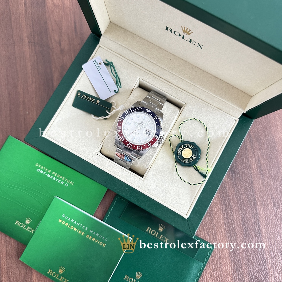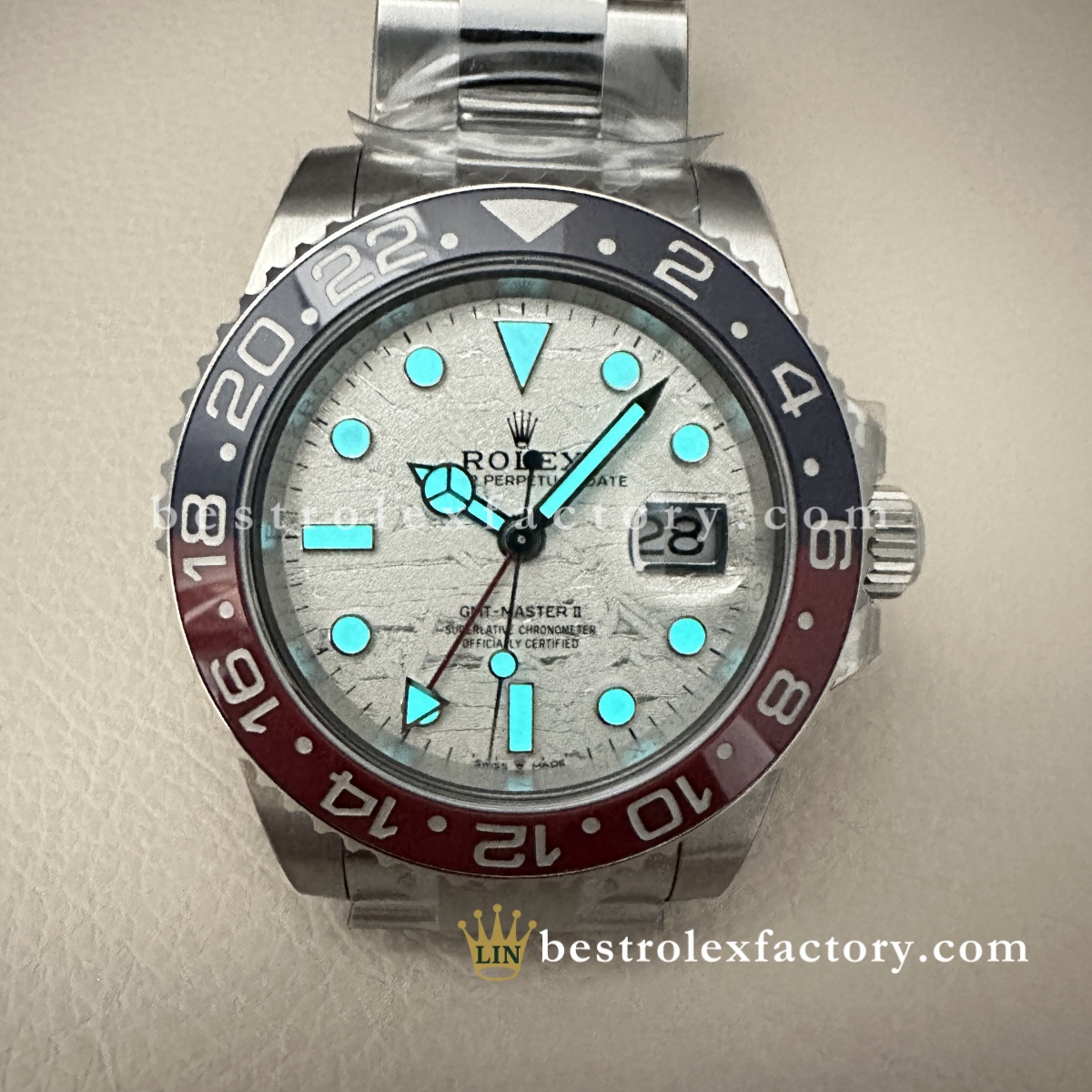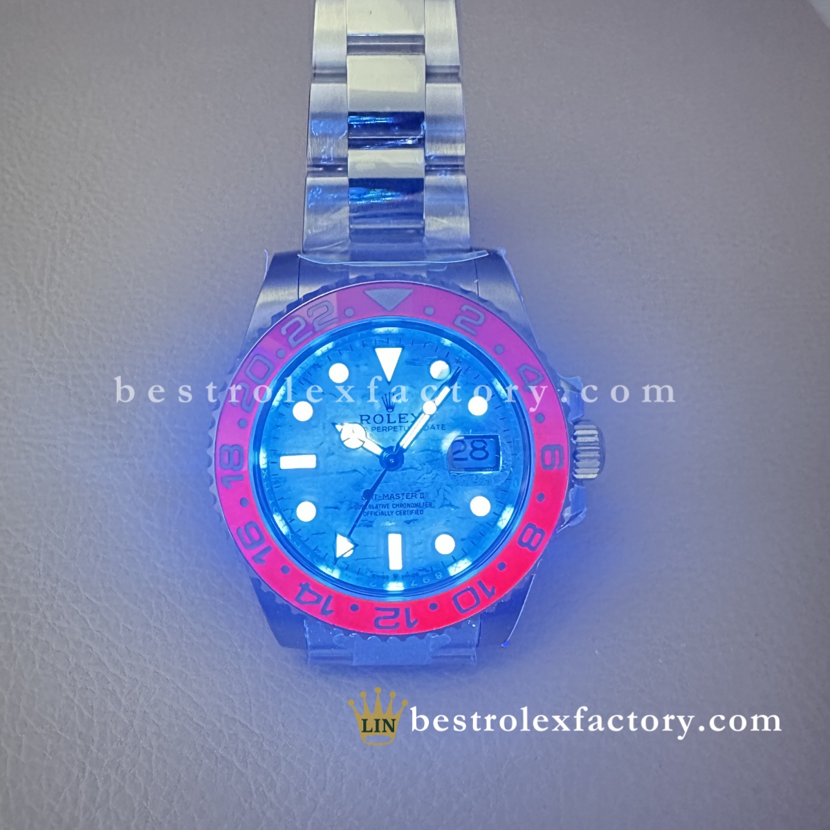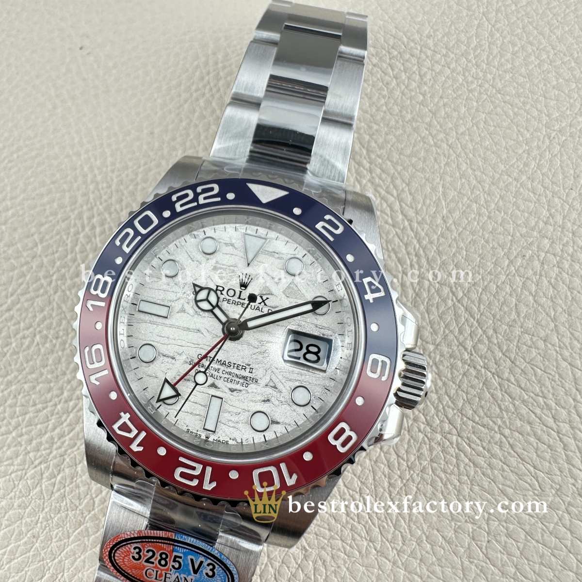 Siamo l’autentica Clean Factory – non accettare sostituti. Il prezzo premium ti garantisce un orologio con la lunetta “Pepsi” V3 perfettamente eseguita e l’autentico quadrante in meteorite che impressionerà anche i collezionisti più seri. Per coloro che apprezzano l’ultra-esclusivo Rolex GMT Master II in oro bianco con il suo distintivo quadrante in meteorite, questo pezzo offre un valore senza pari quando la versione originale è quasi impossibile da ottenere.