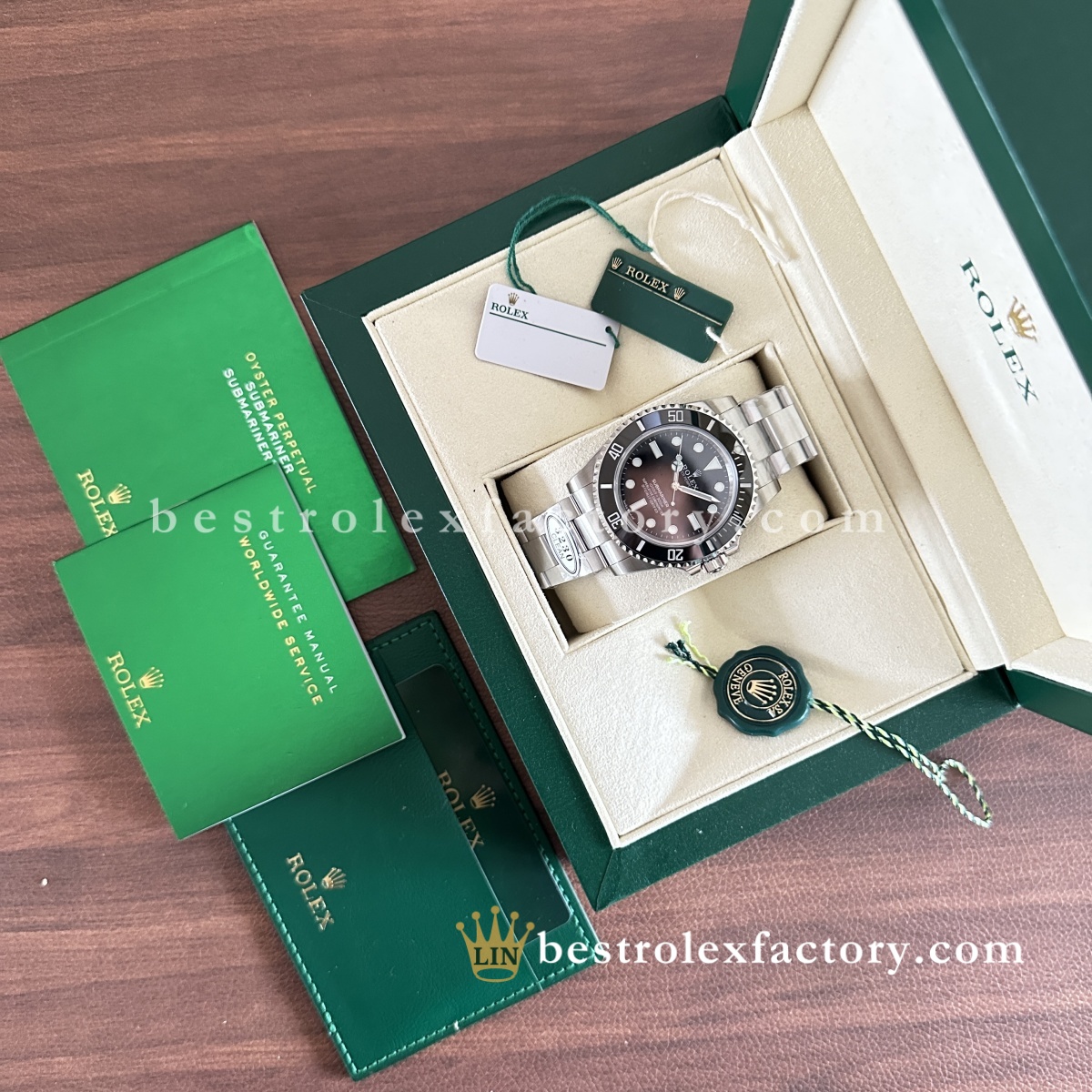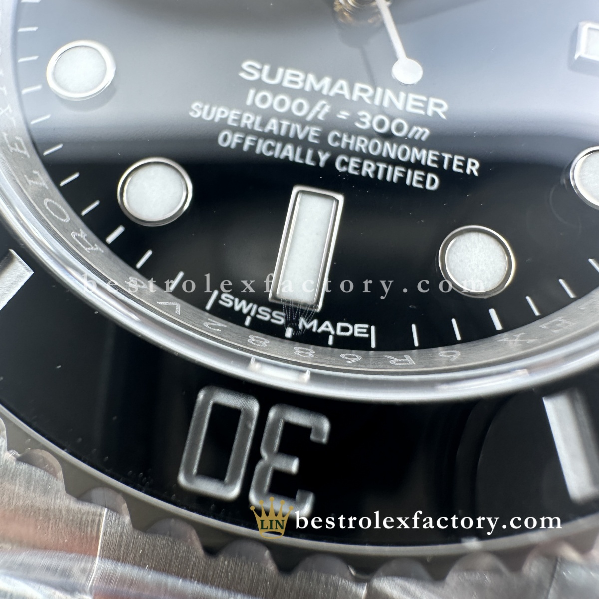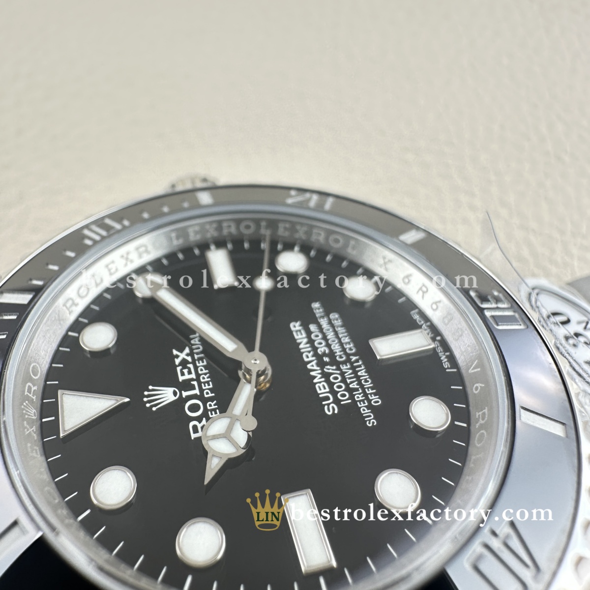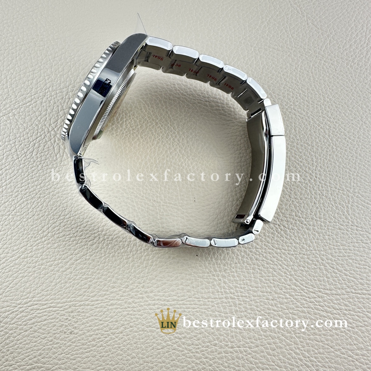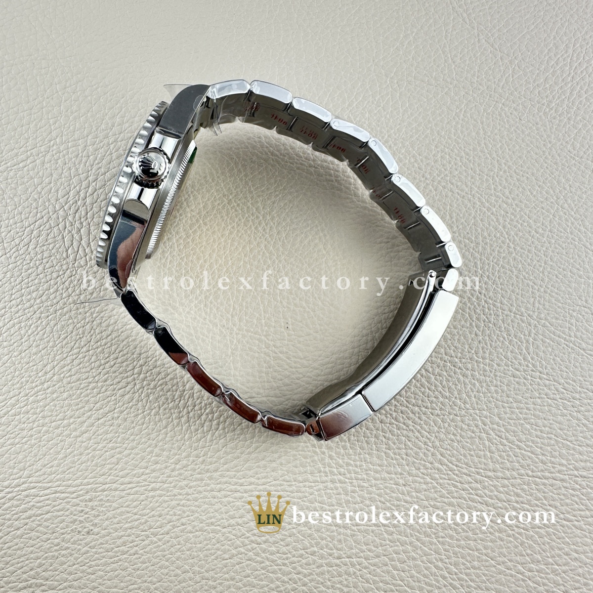 - Ruota la lunetta e sperimenta la vera qualità — 120 scatti precisi con la giusta quantità di resistenza e assolutamente zero gioco. Il quadrante è altrettanto impressionante — nero profondo con indici meticolosamente applicati e quel layout perfettamente simmetrico senza data che i puristi adorano. Le lancette in stile oro bianco spazzano il quadrante con le corrette proprietà riflettenti — né troppo appariscenti, né troppo opache, precisamente come dovrebbero essere. Mettilo accanto a un autentico 114060 e avresti bisogno di un ingrandimento significativo per individuare differenze rilevanti.
