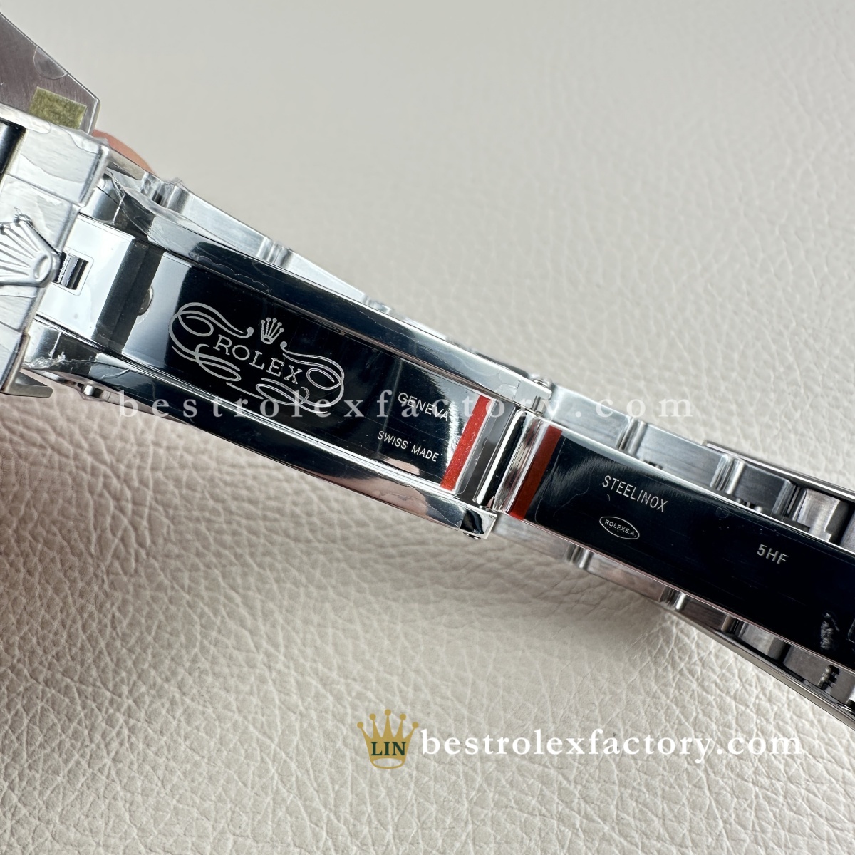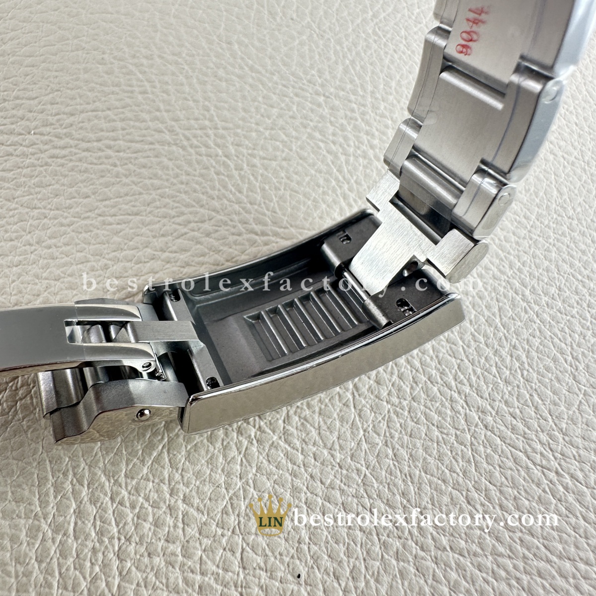 - Il bracciale continua l'esperienza premium — solido 904L con maglie articolate con precisione e sezioni centrali adeguatamente lucidate che si fondono perfettamente con una chiusura Glidelock perfettamente eseguita con 2cm di microregolazione. Ogni maglia si articola con quella sensazione distintiva del bracciale Oyster che le repliche inferiori semplicemente non possono riprodurre.
