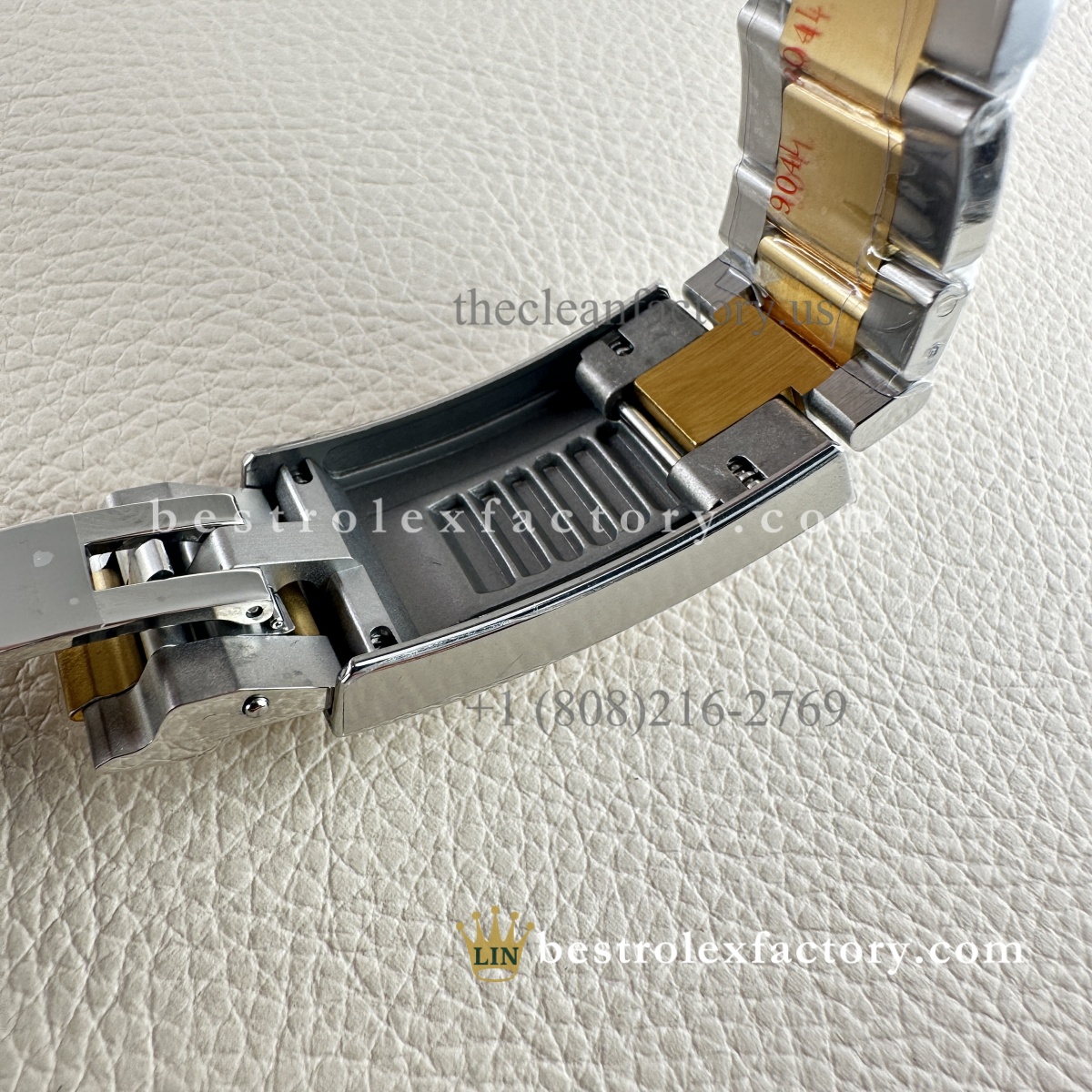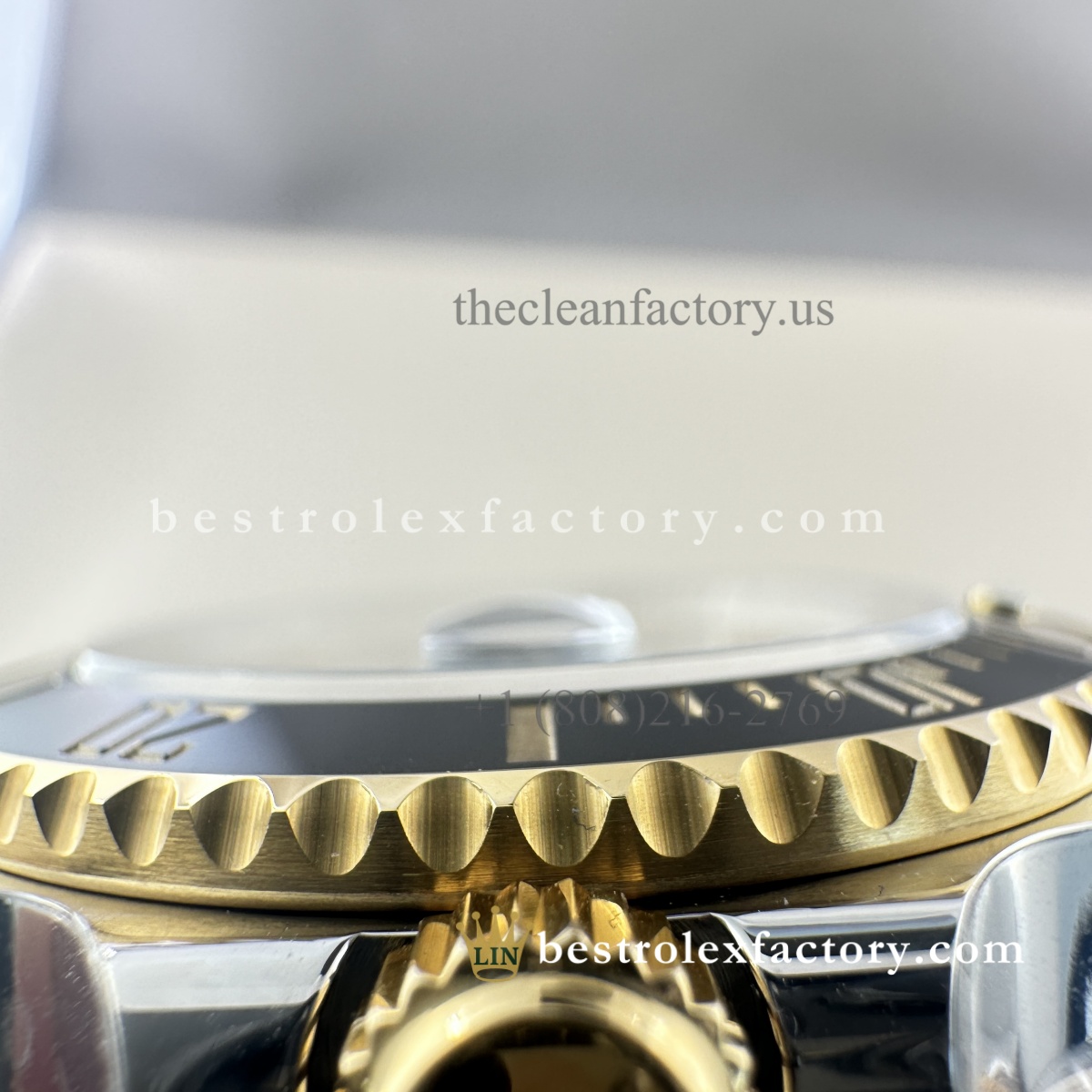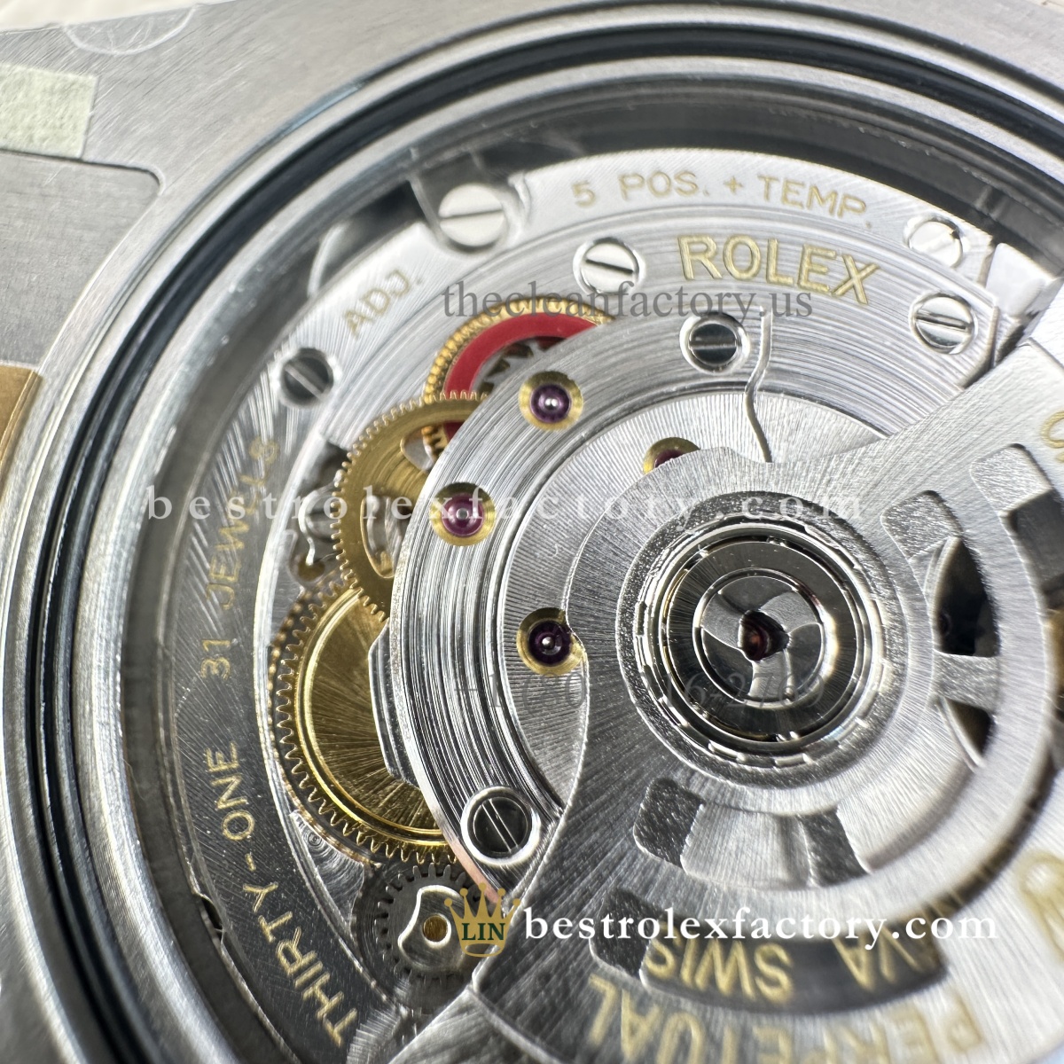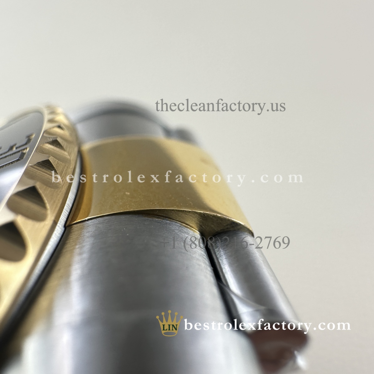 - Ciò che distingue il nostro modello bicolore è il nostro oro. Niente colore ottone giallastro economico qui - utilizziamo un processo speciale con rivestimento PVD prima, poi un vero rivestimento in oro 18K sopra. Il risultato? Oro che appare esattamente come quello di Rolex, ma che non sbiadisce né cambia colore con l'usura.