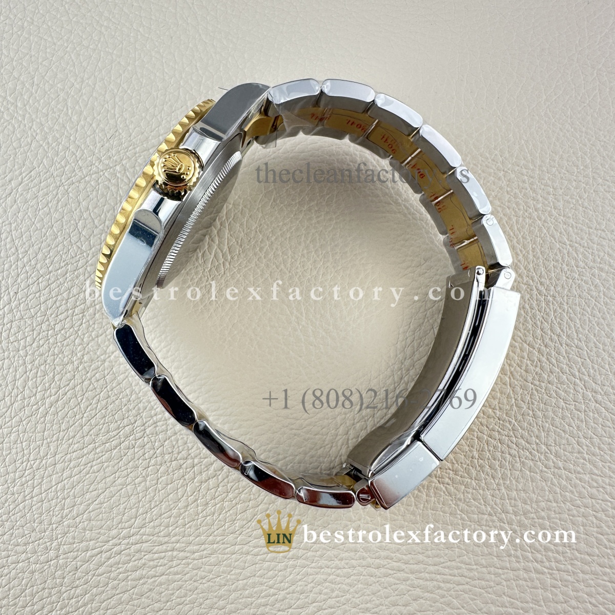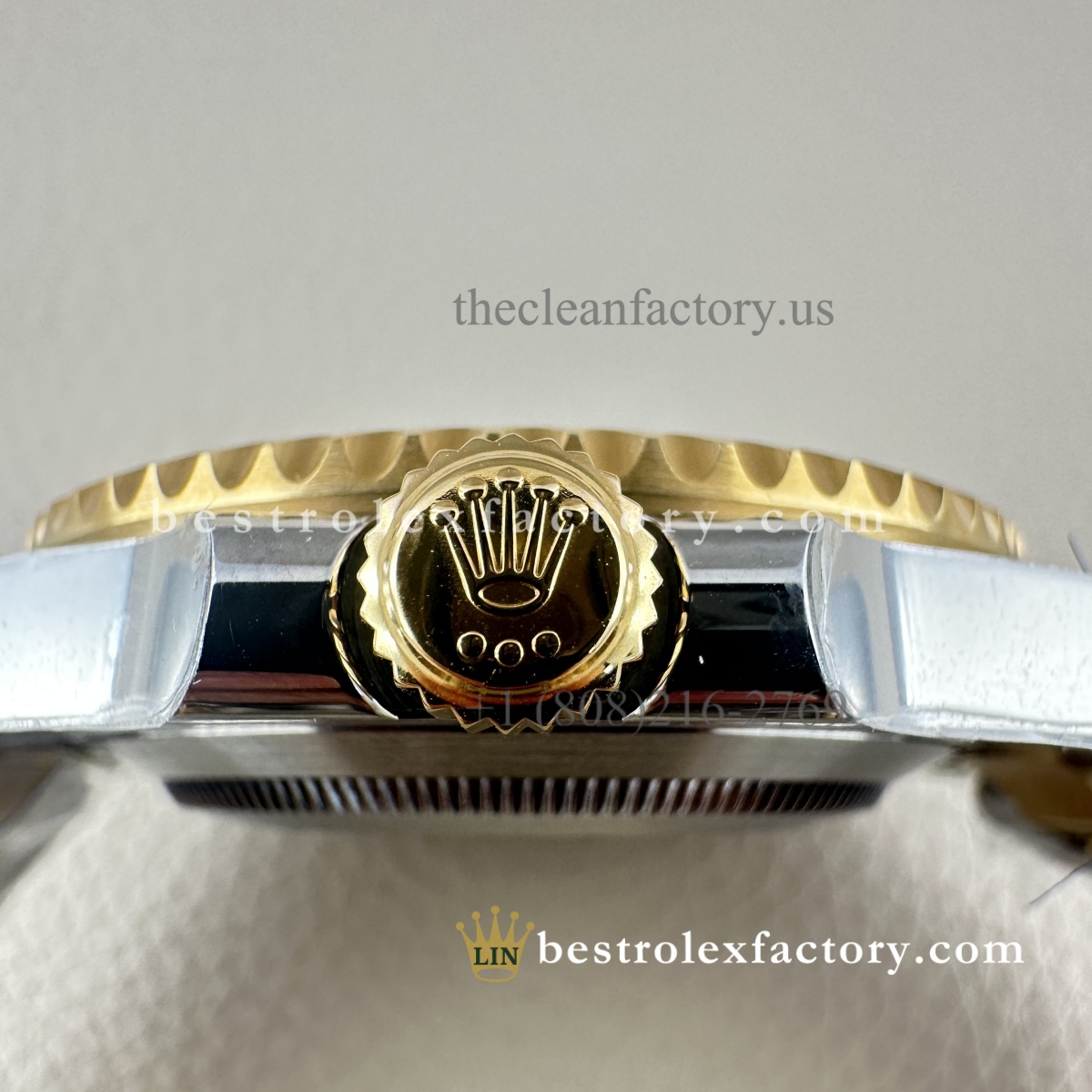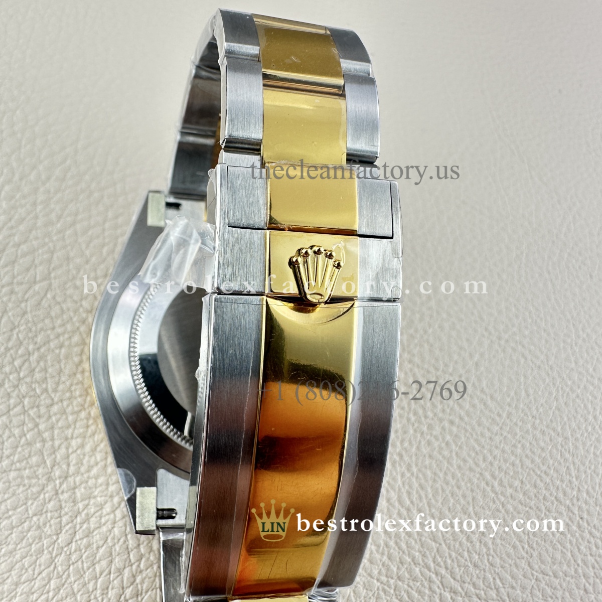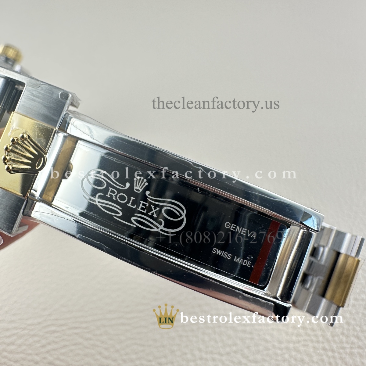 - Ciò che distingue il nostro modello bicolore è il nostro oro. Niente colore ottone giallastro economico qui - utilizziamo un processo speciale con rivestimento PVD prima, poi un vero rivestimento in oro 18K sopra. Il risultato? Oro che appare esattamente come quello di Rolex, ma che non sbiadisce né cambia colore con l'usura.