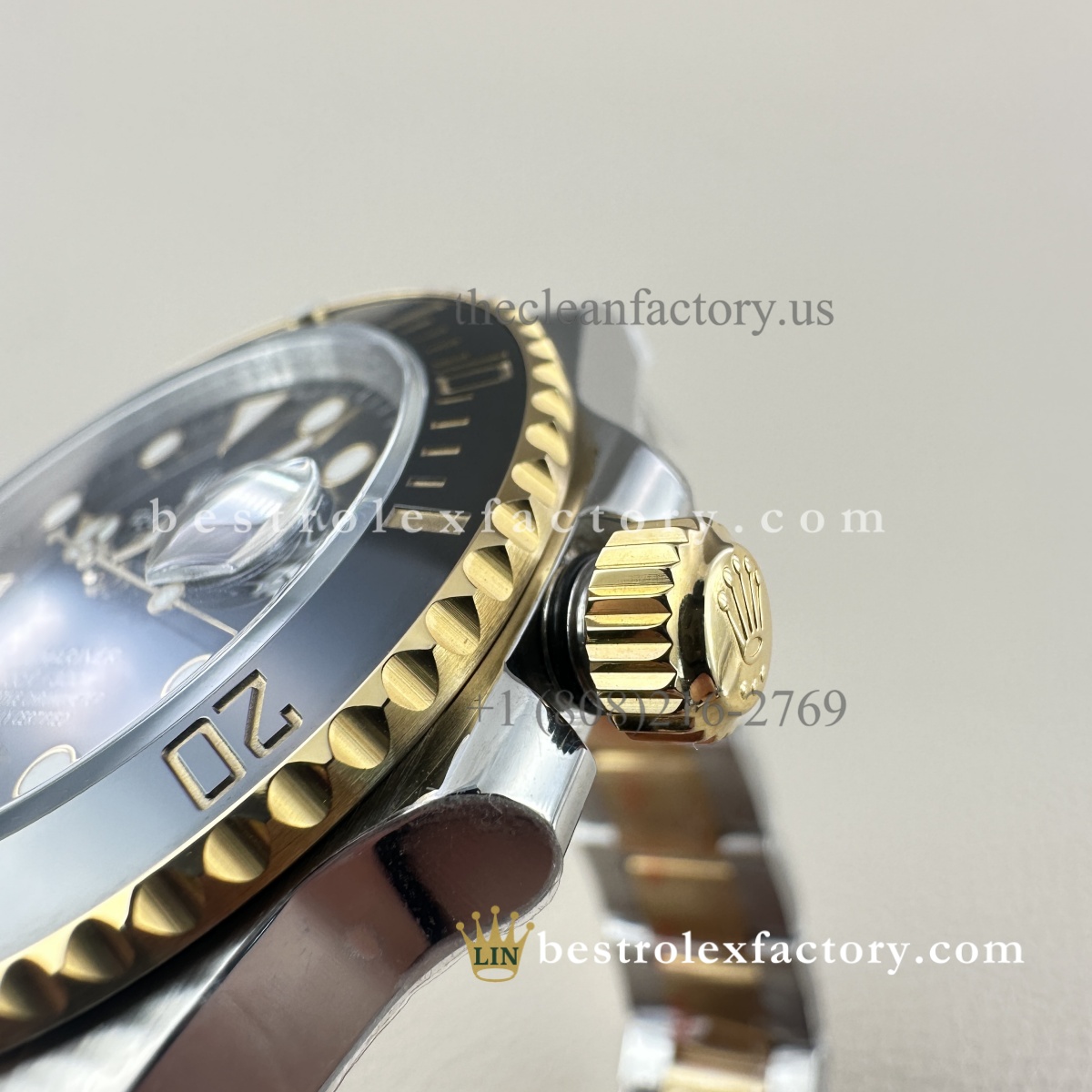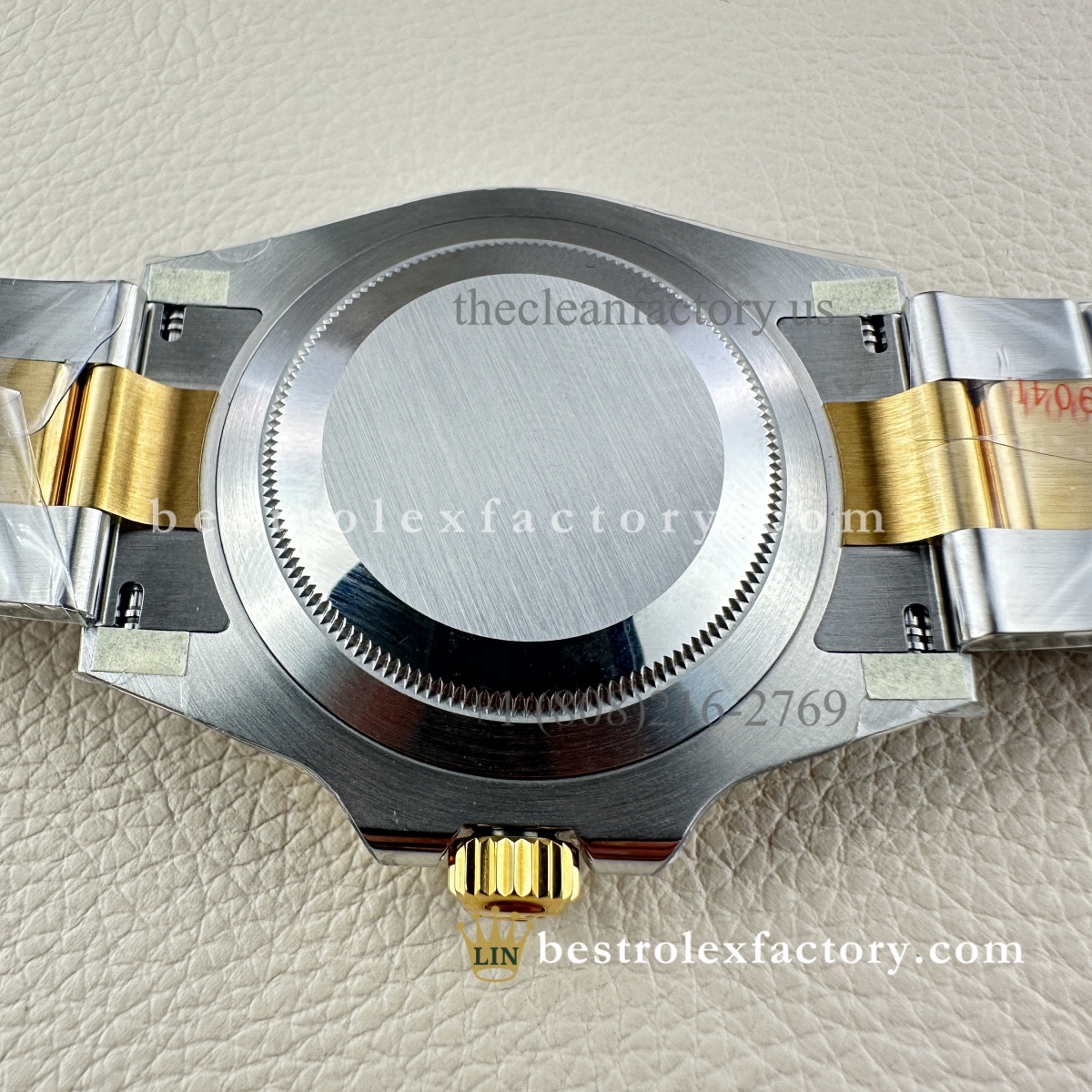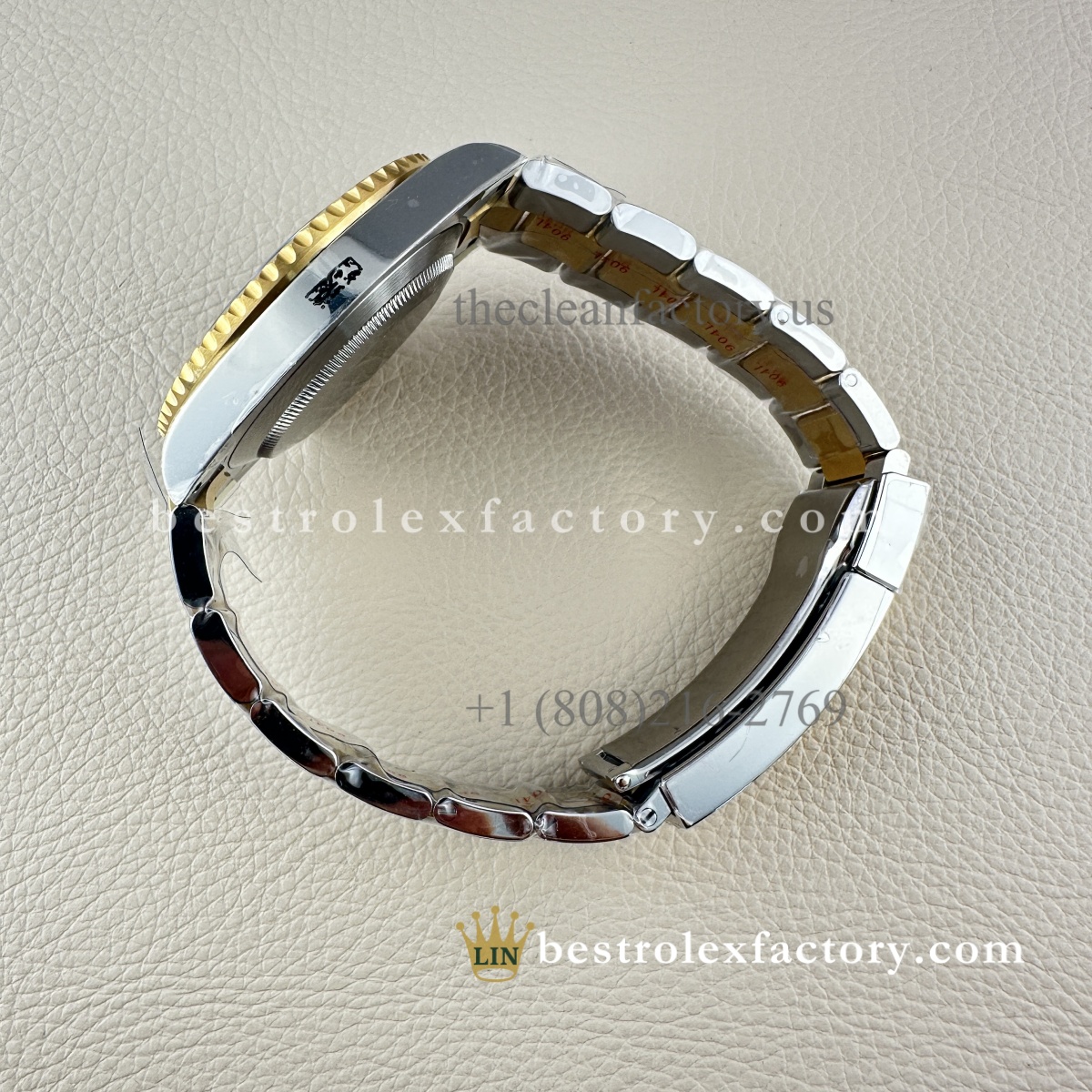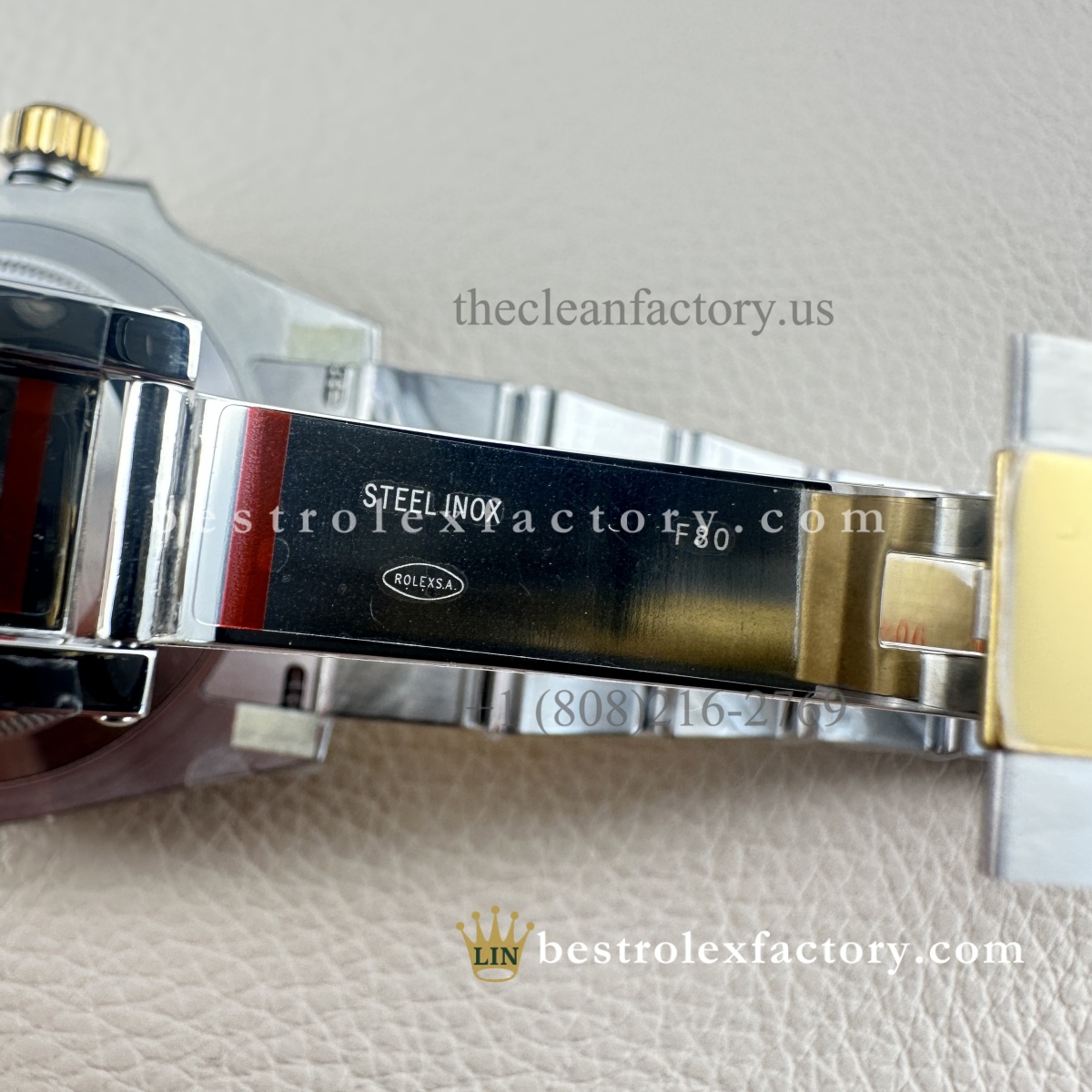 - Ciò che distingue il nostro modello bicolore è il nostro oro. Niente colore ottone giallastro economico qui - utilizziamo un processo speciale con rivestimento PVD prima, poi un vero rivestimento in oro 18K sopra. Il risultato? Oro che appare esattamente come quello di Rolex, ma che non sbiadisce né cambia colore con l'usura.