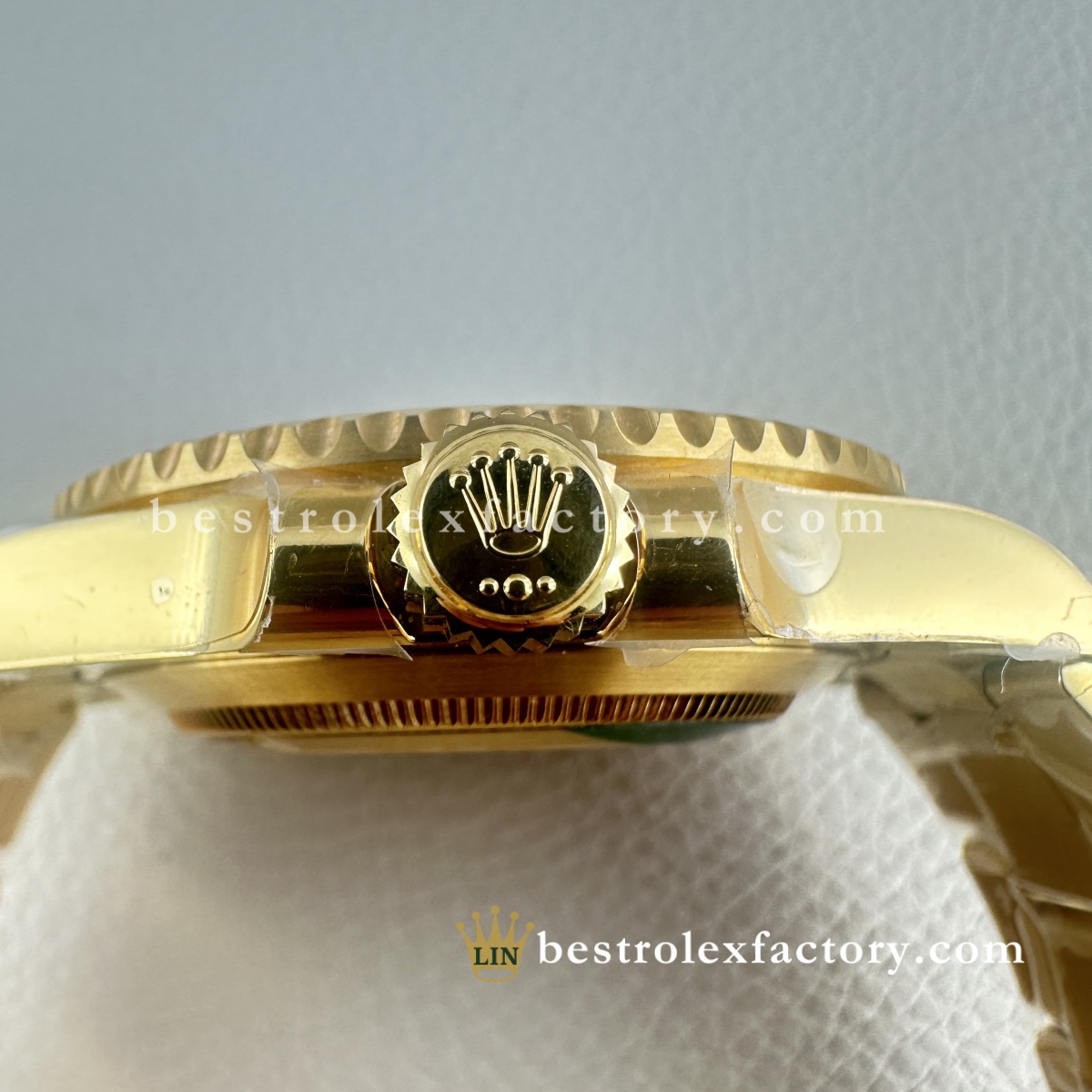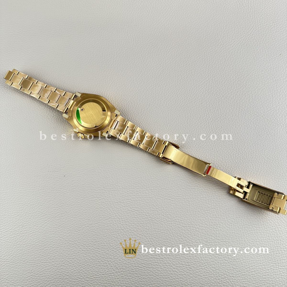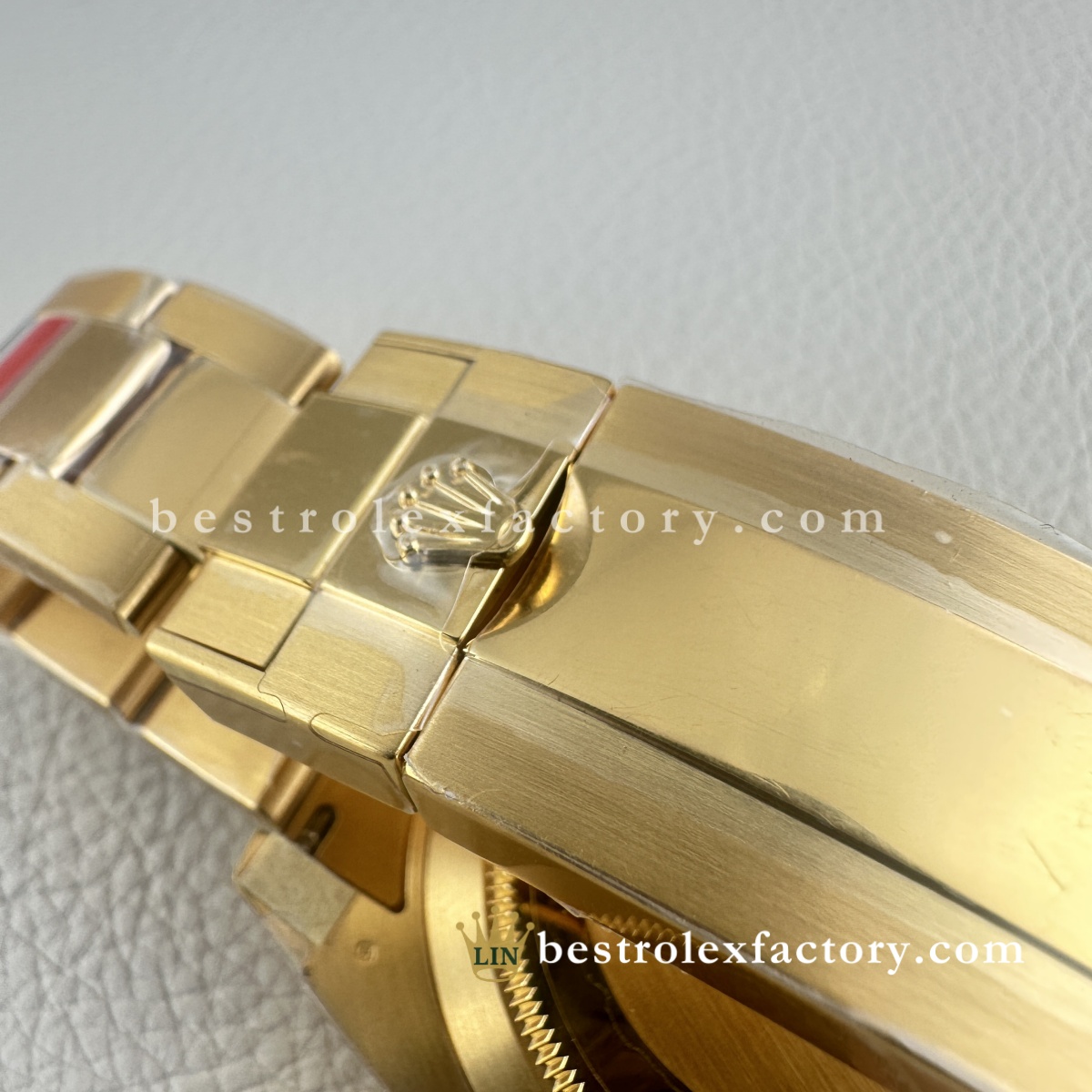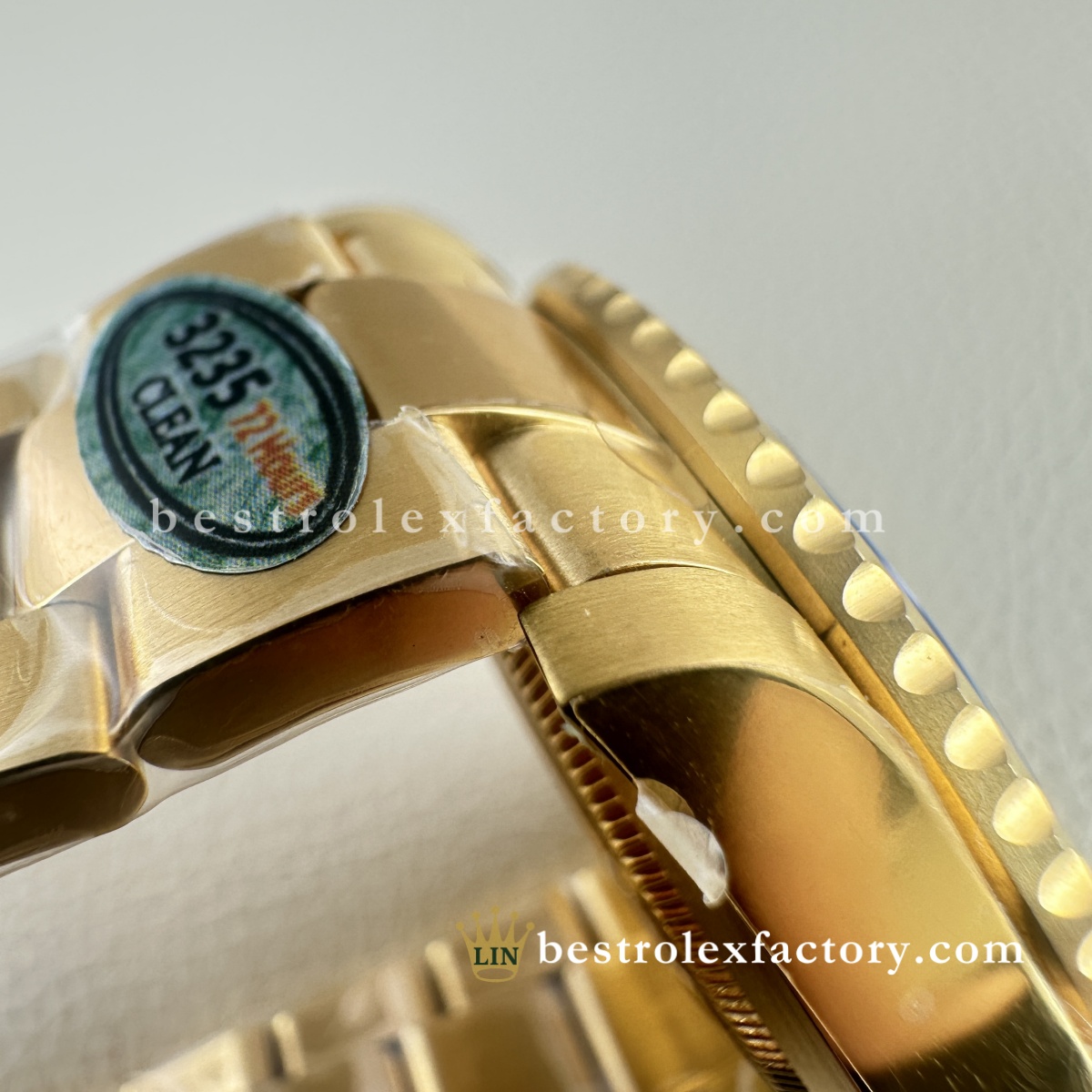 - Il Clean Factory 126618LB ottiene ciò che gli altri sbagliano: l'oro. Non è quel giallo ottone ovviamente falso che urla "replica". Il processo esclusivo di Clean Factory utilizza prima un rivestimento PVD avanzato, poi applica un vero rivestimento in oro 18K sopra. Il risultato è perfettamente abbinato al colore dell'oro Rolex autentico, con il vantaggio cruciale che non sbiadirà, non si macchierà o non si consumerà con il tempo.