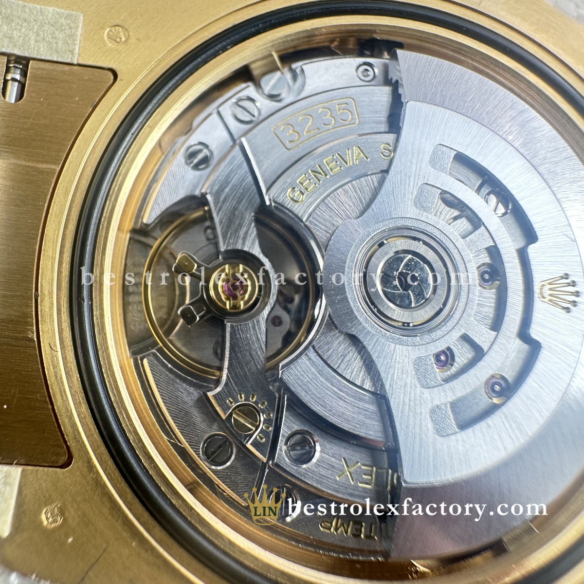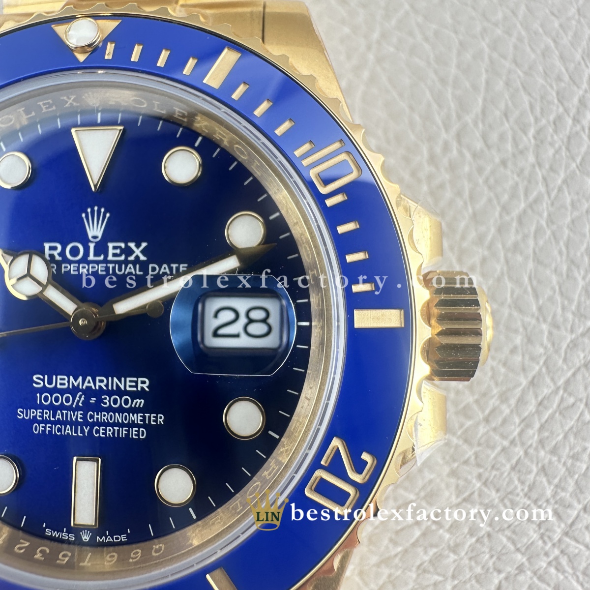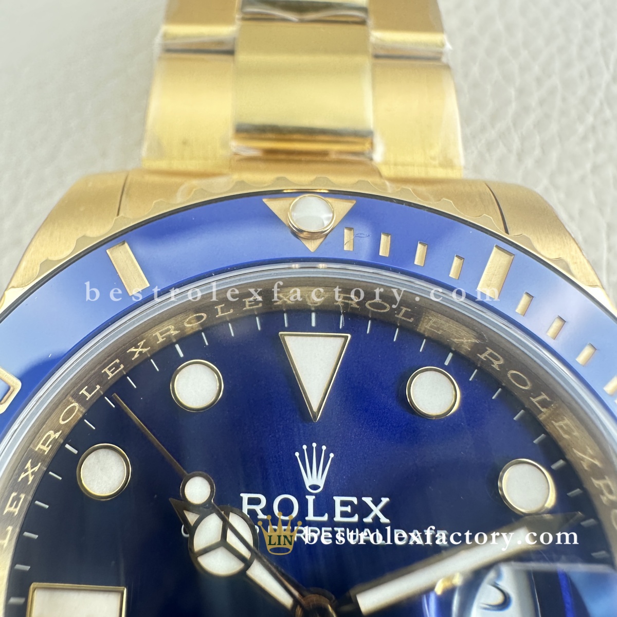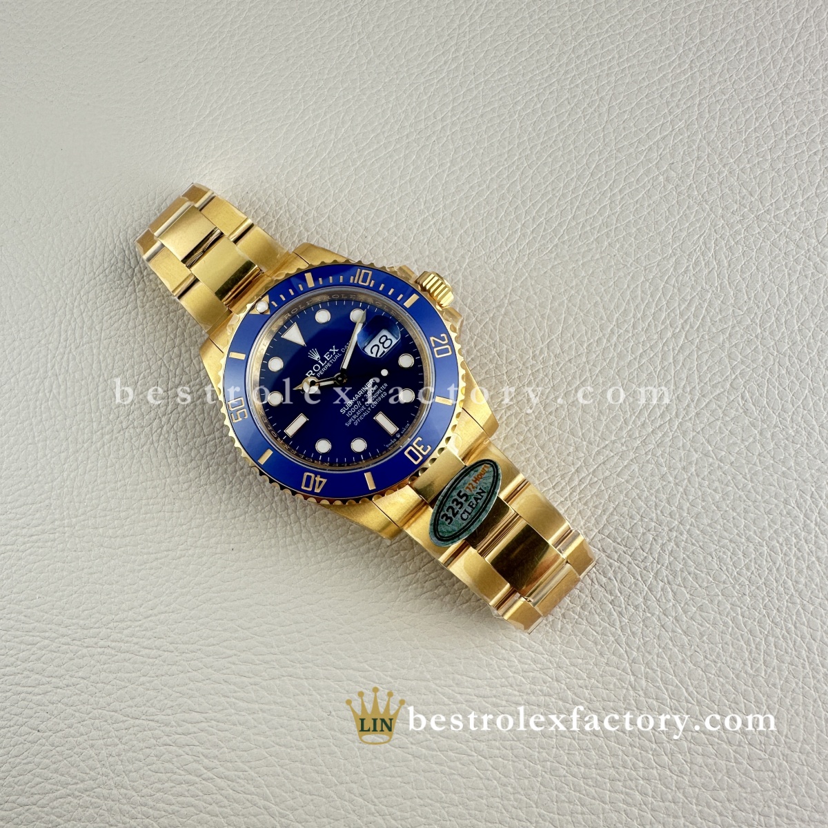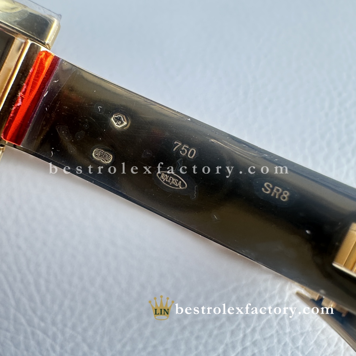 - Il Clean Factory 126618LB ottiene ciò che gli altri sbagliano: l'oro. Non è quel giallo ottone ovviamente falso che urla "replica". Il processo esclusivo di Clean Factory utilizza prima un rivestimento PVD avanzato, poi applica un vero rivestimento in oro 18K sopra. Il risultato è perfettamente abbinato al colore dell'oro Rolex autentico, con il vantaggio cruciale che non sbiadirà, non si macchierà o non si consumerà con il tempo.
