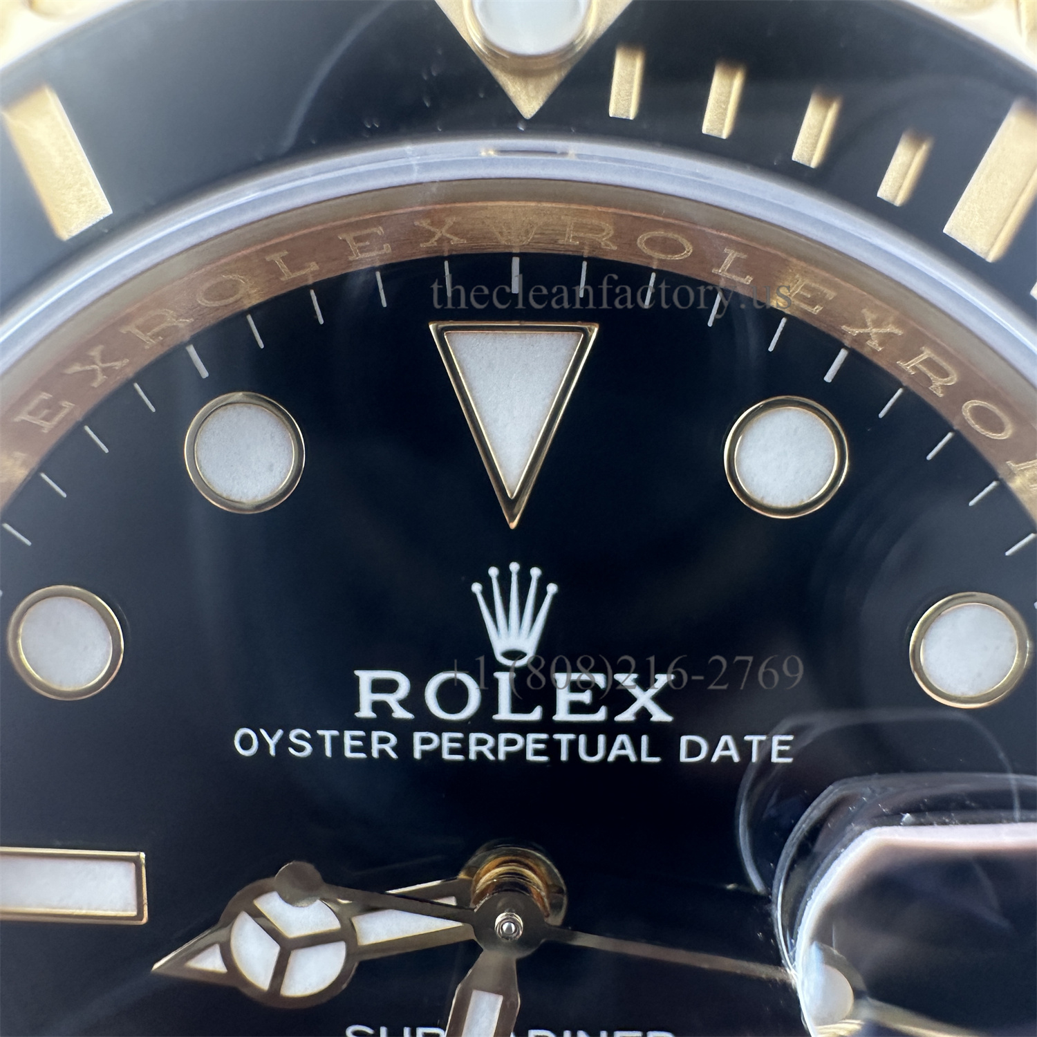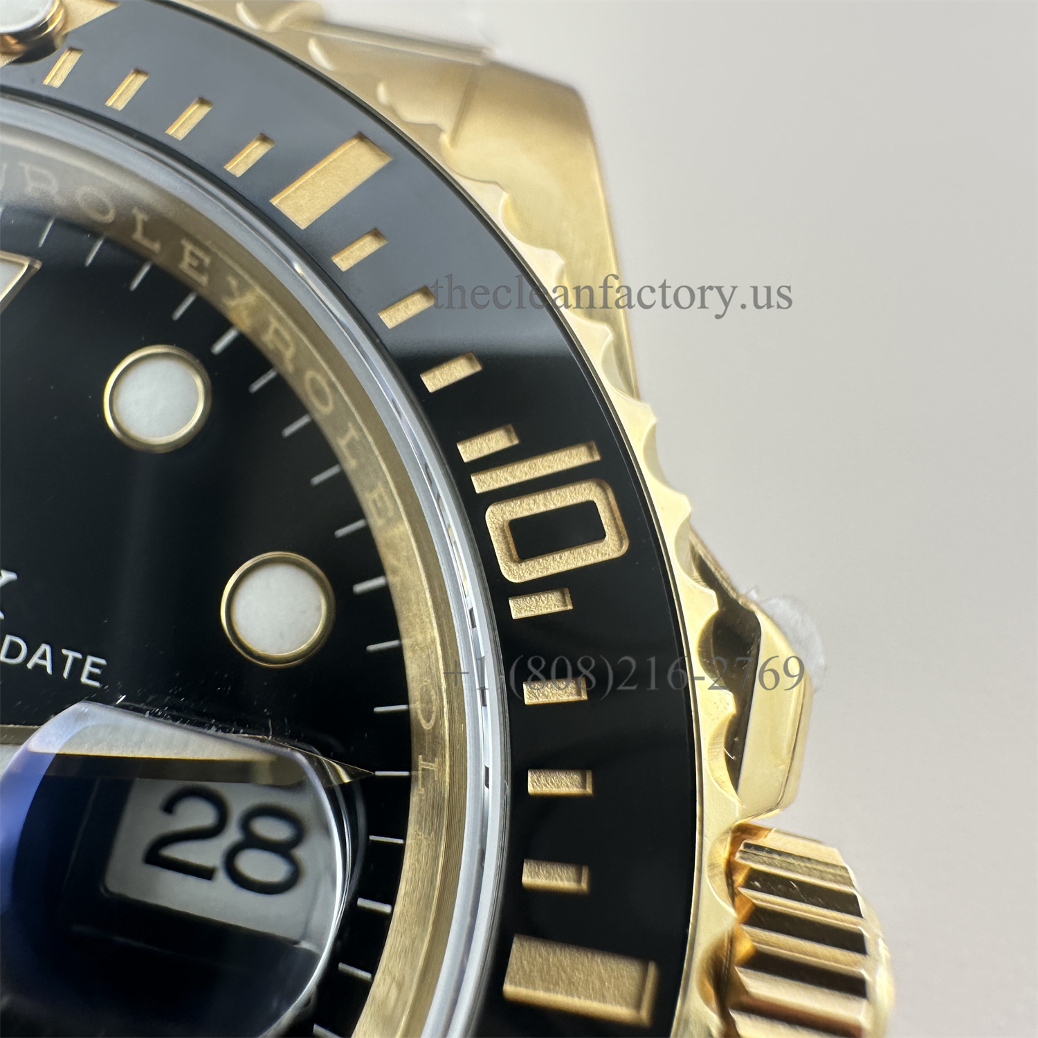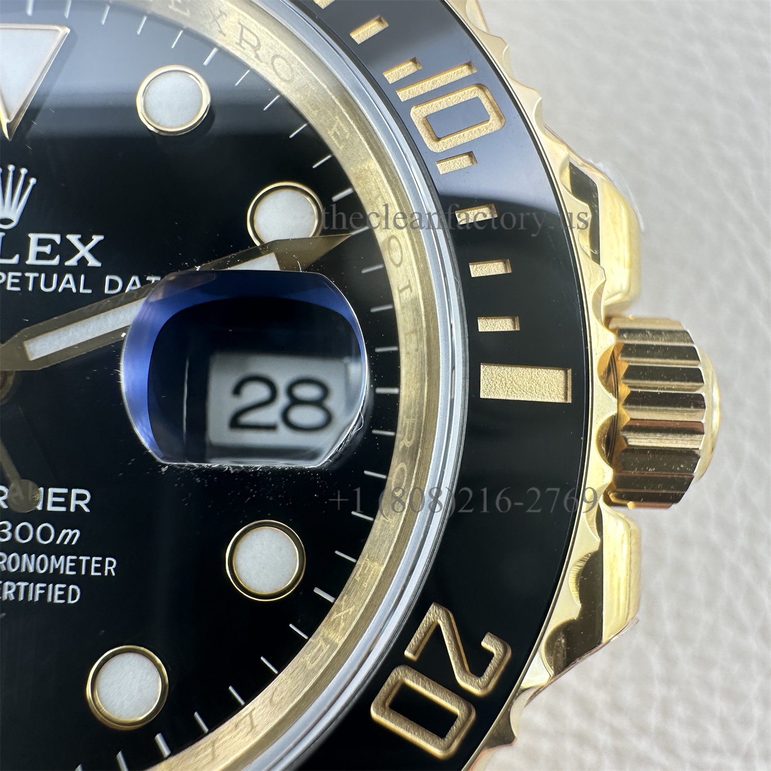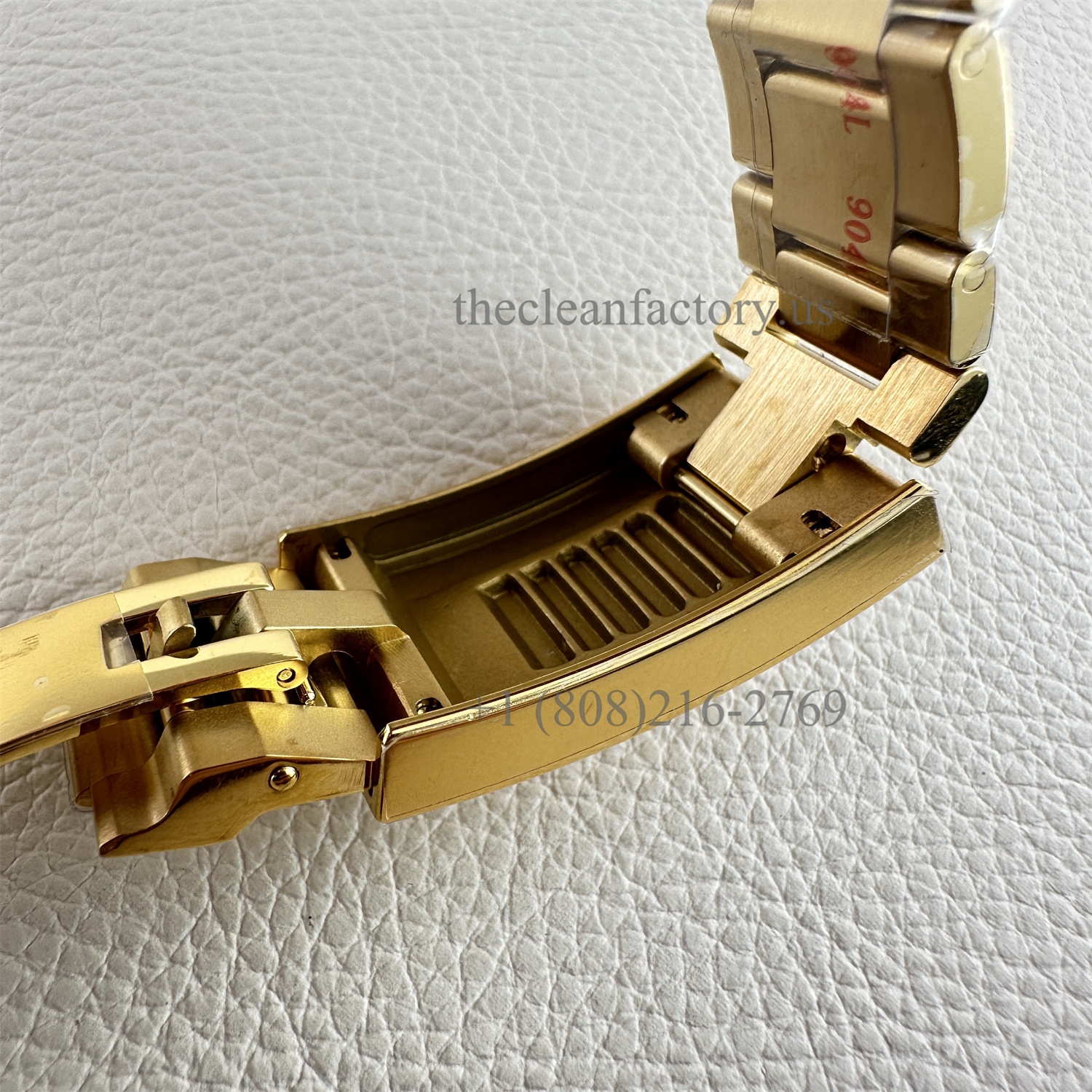 - Il Clean Factory 126618LN ottiene ciò che gli altri sbagliano: l'oro. Non è quel giallo ottone ovviamente falso che urla "replica". Il processo esclusivo di Clean Factory utilizza prima un rivestimento PVD avanzato, poi applica un vero rivestimento in oro 18K sopra. Il risultato è perfettamente abbinato al colore dell'oro Rolex autentico, con il vantaggio cruciale che non sbiadirà, non si macchierà o non si consumerà con il tempo.