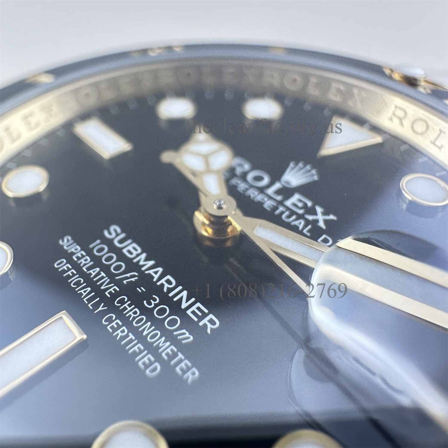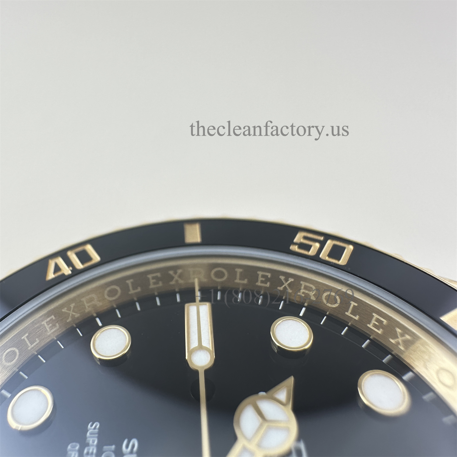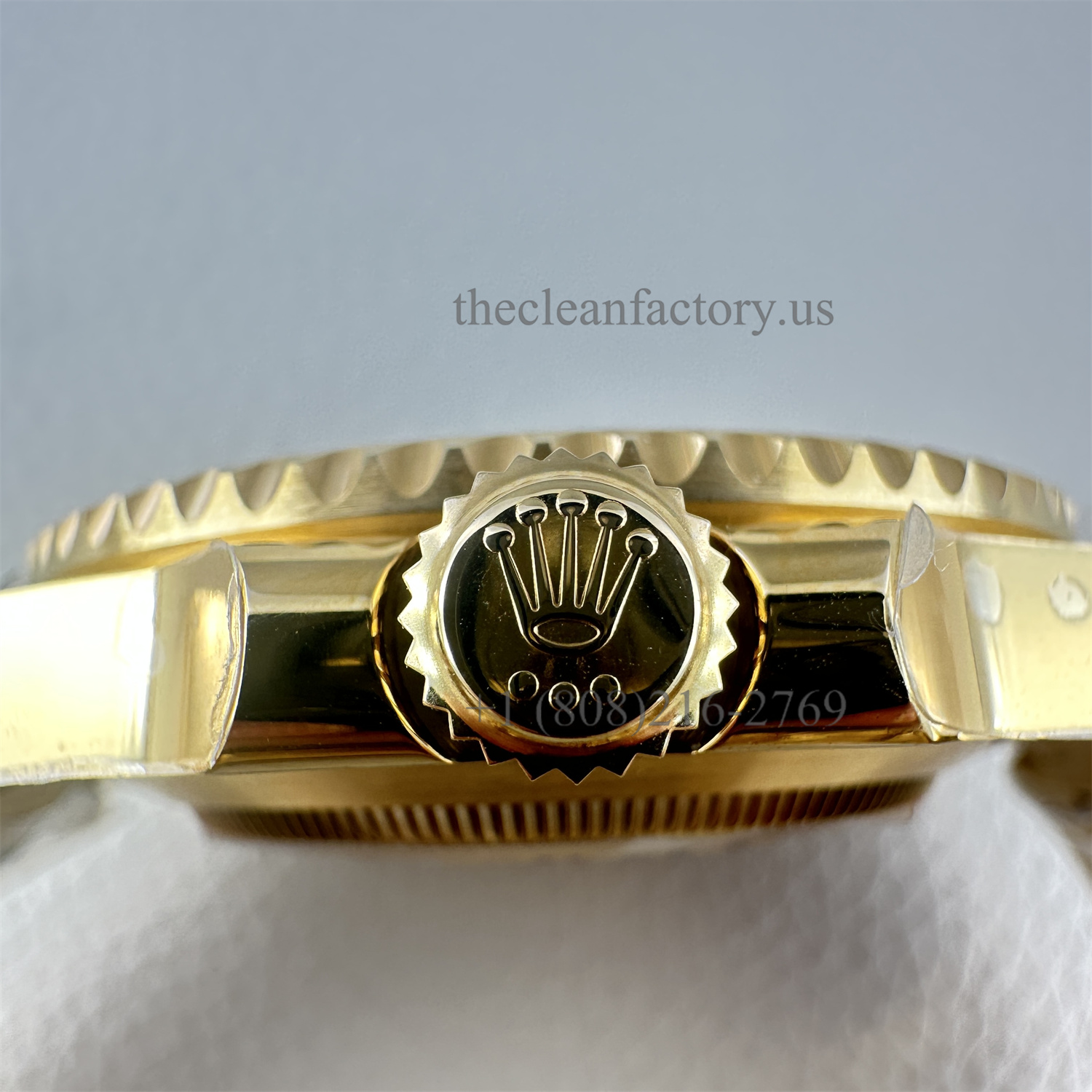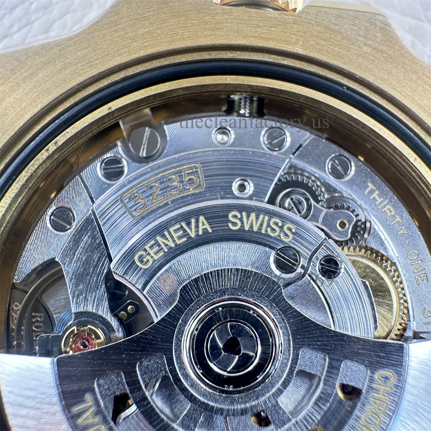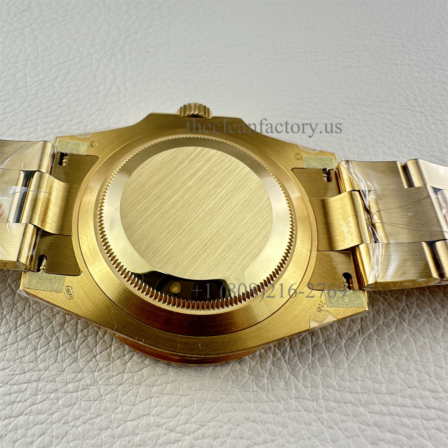 - Il Clean Factory 126618LN ottiene ciò che gli altri sbagliano: l'oro. Non è quel giallo ottone ovviamente falso che urla "replica". Il processo esclusivo di Clean Factory utilizza prima un rivestimento PVD avanzato, poi applica un vero rivestimento in oro 18K sopra. Il risultato è perfettamente abbinato al colore dell'oro Rolex autentico, con il vantaggio cruciale che non sbiadirà, non si macchierà o non si consumerà con il tempo.