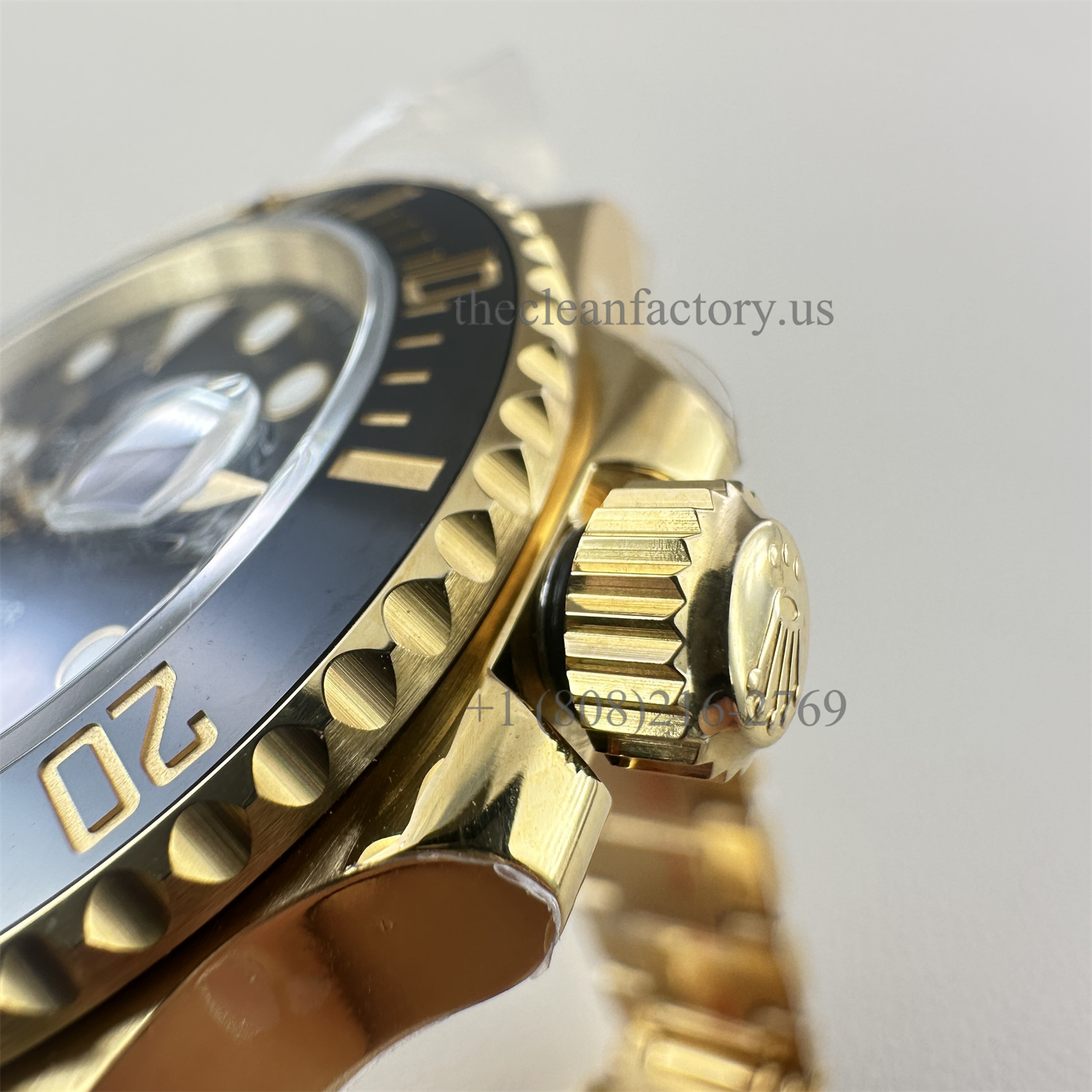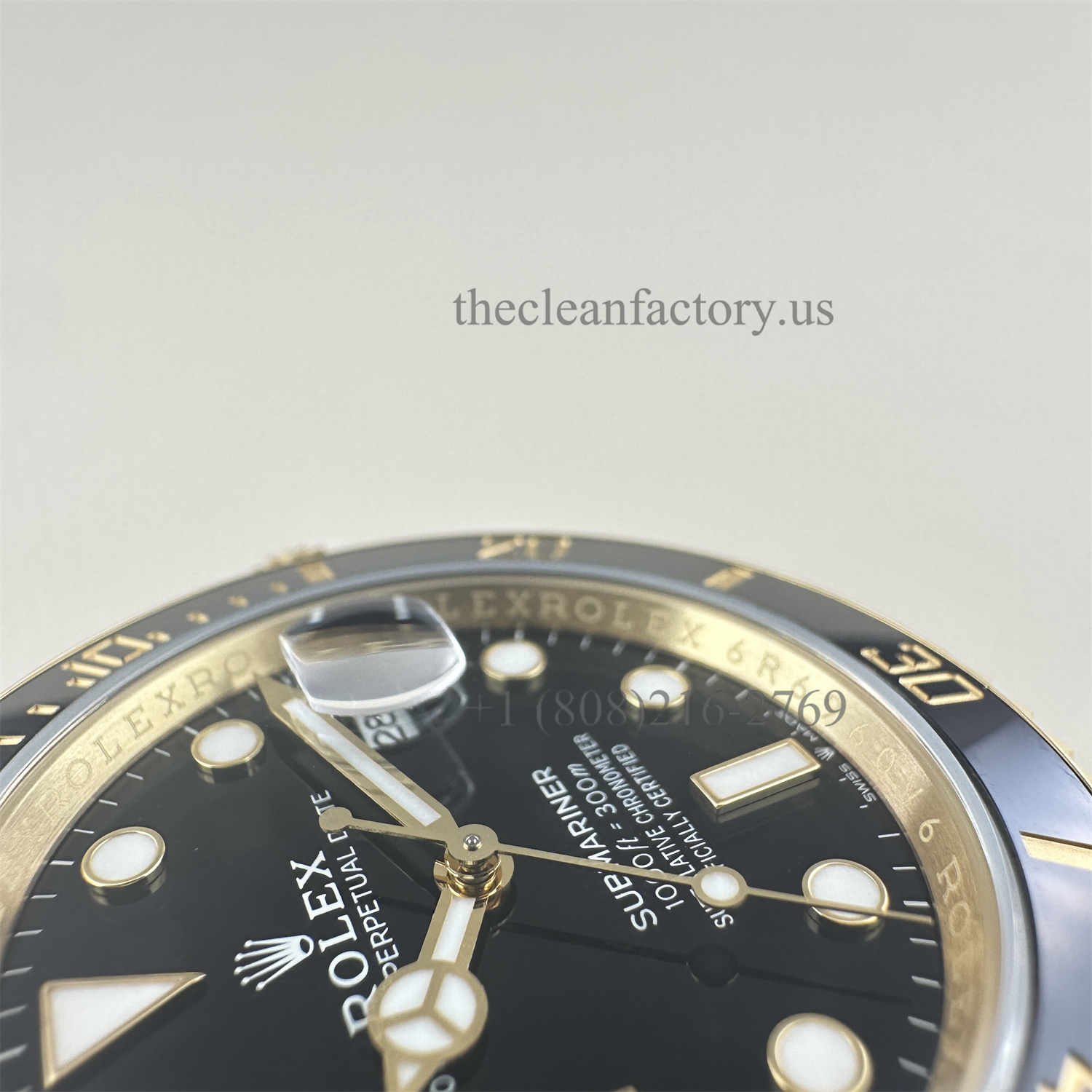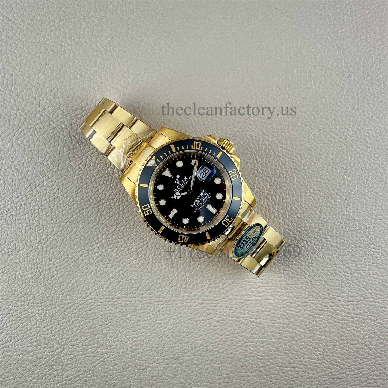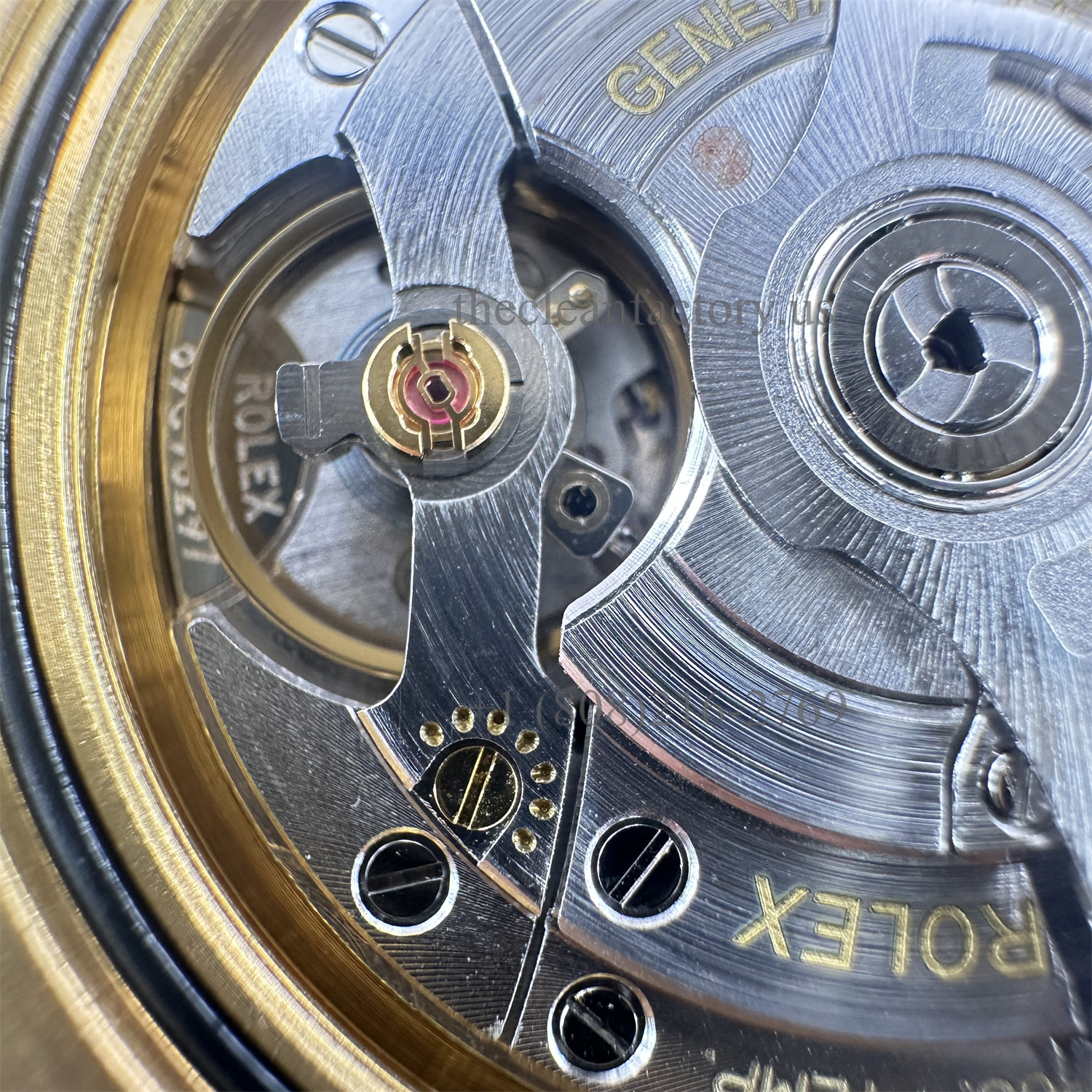 - Il Clean Factory 126618LN ottiene ciò che gli altri sbagliano: l'oro. Non è quel giallo ottone ovviamente falso che urla "replica". Il processo esclusivo di Clean Factory utilizza prima un rivestimento PVD avanzato, poi applica un vero rivestimento in oro 18K sopra. Il risultato è perfettamente abbinato al colore dell'oro Rolex autentico, con il vantaggio cruciale che non sbiadirà, non si macchierà o non si consumerà con il tempo.