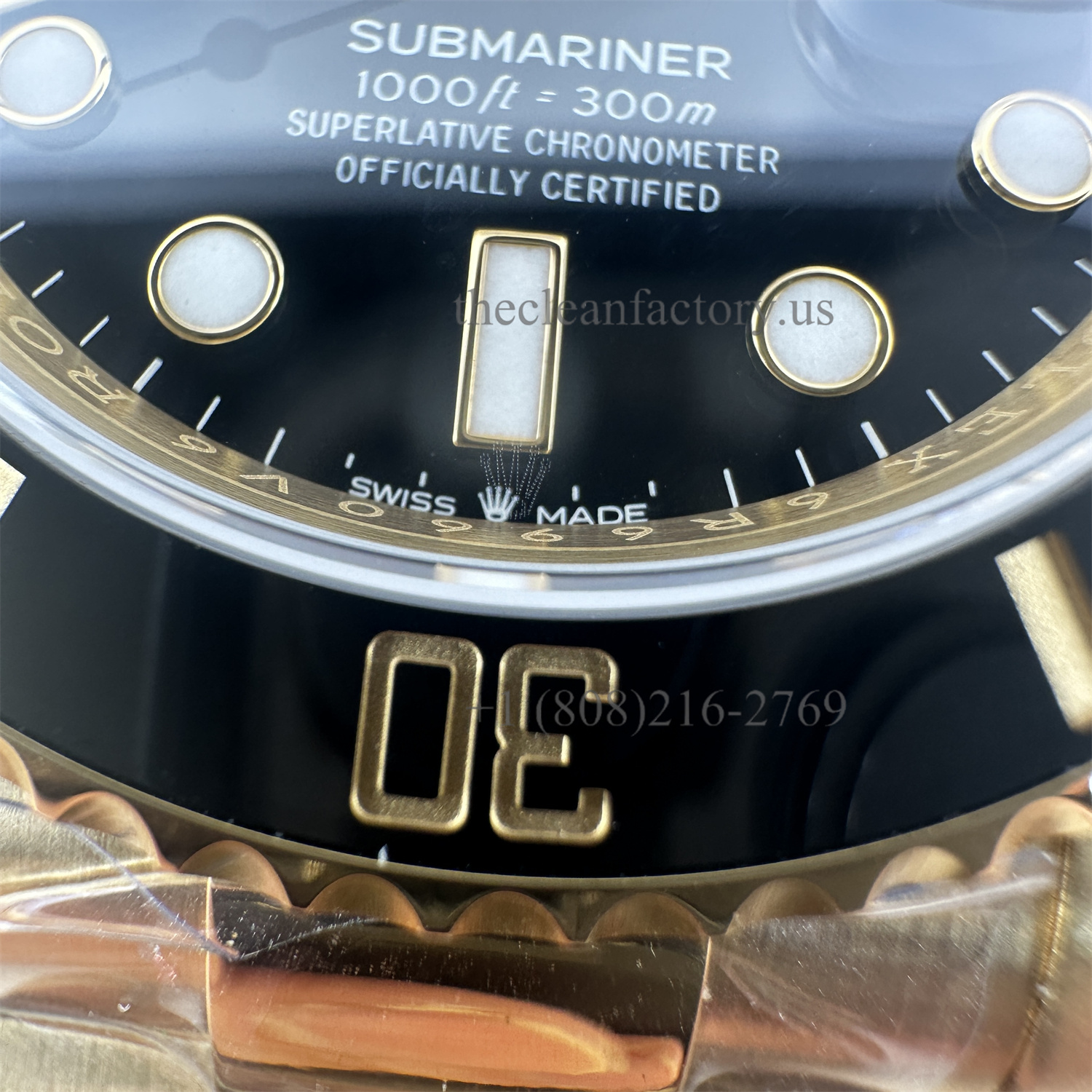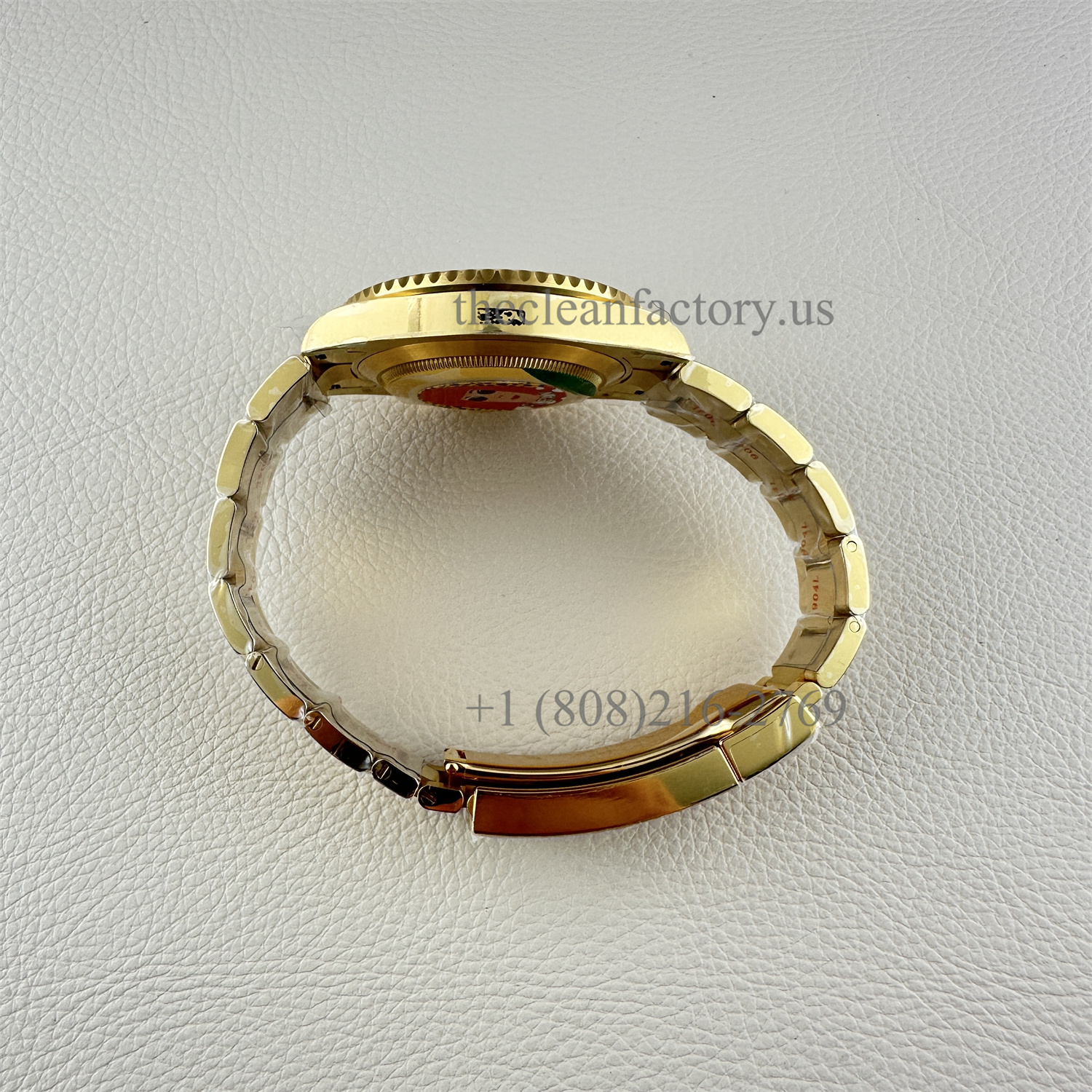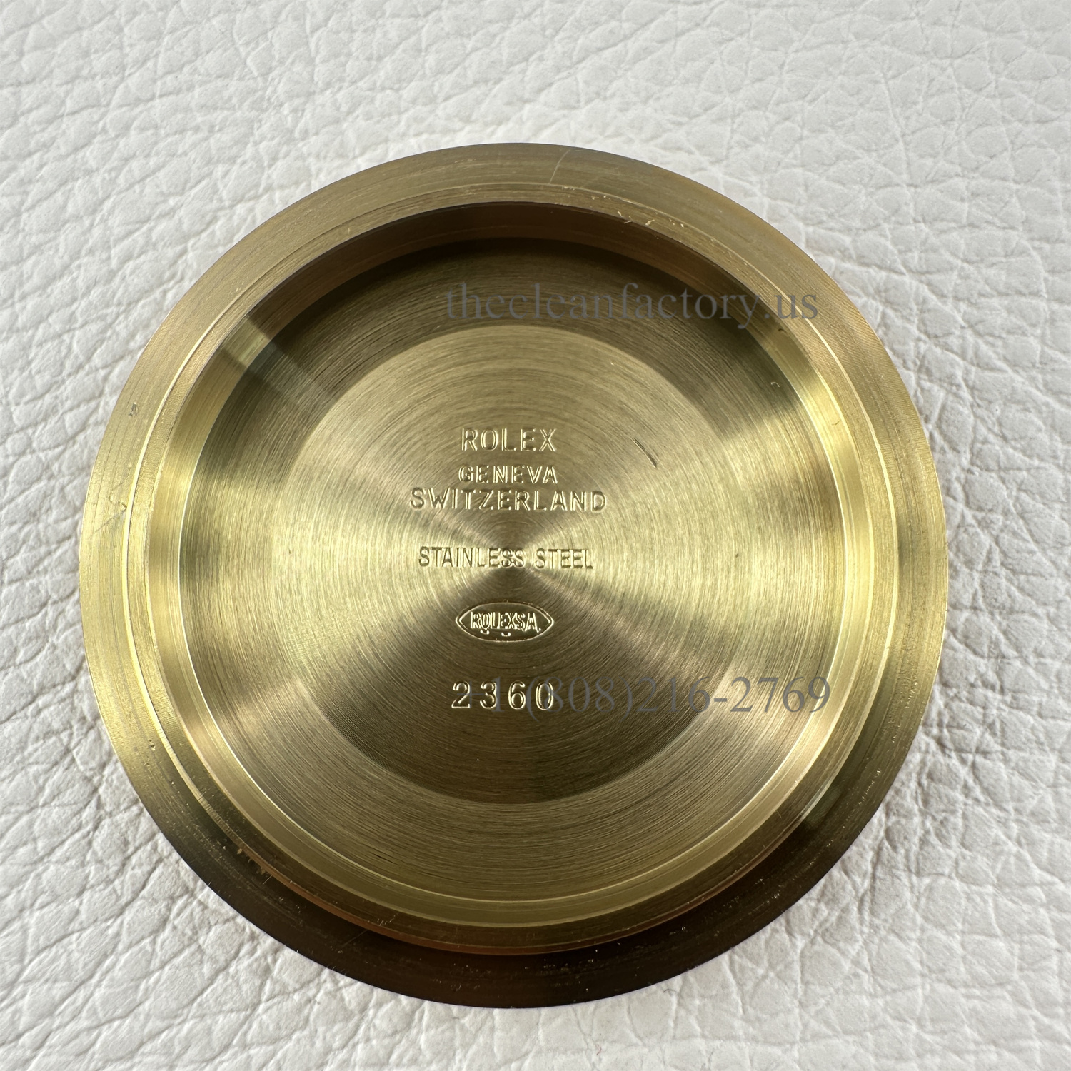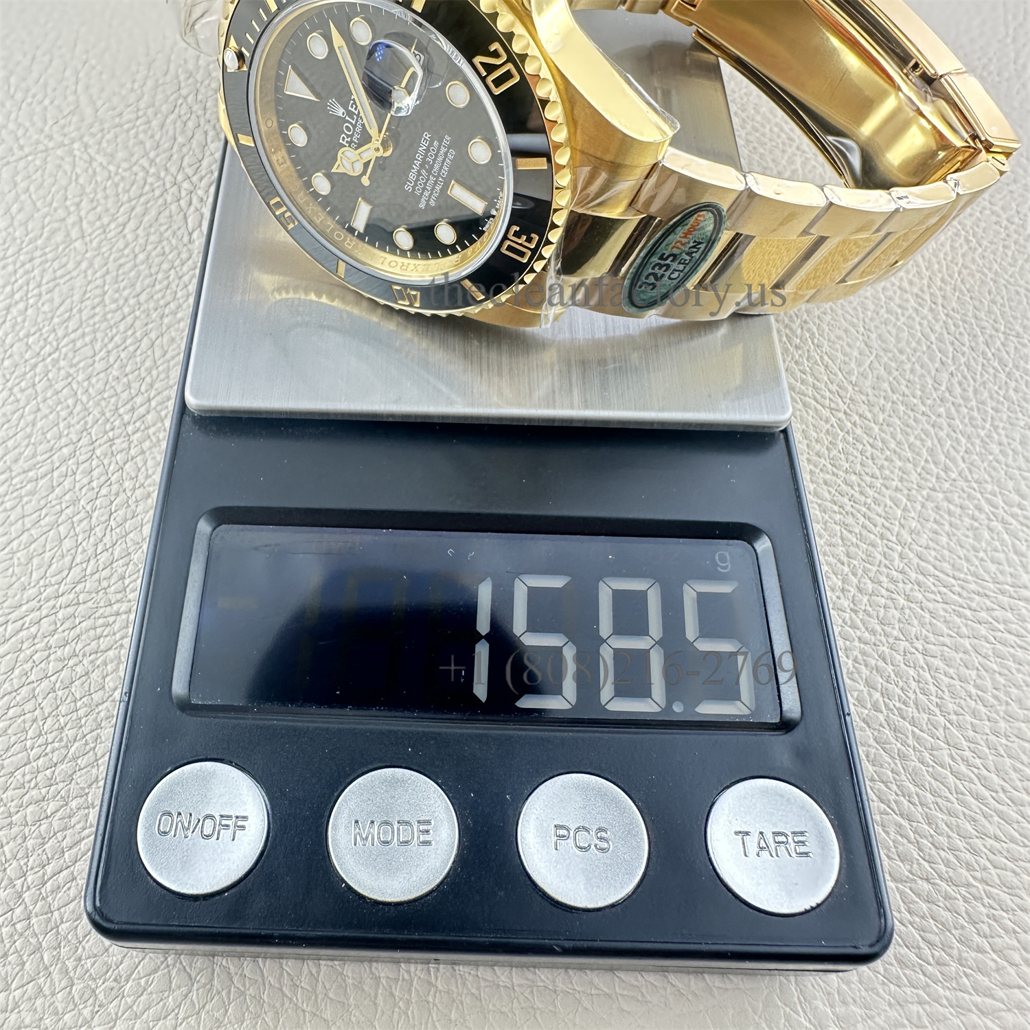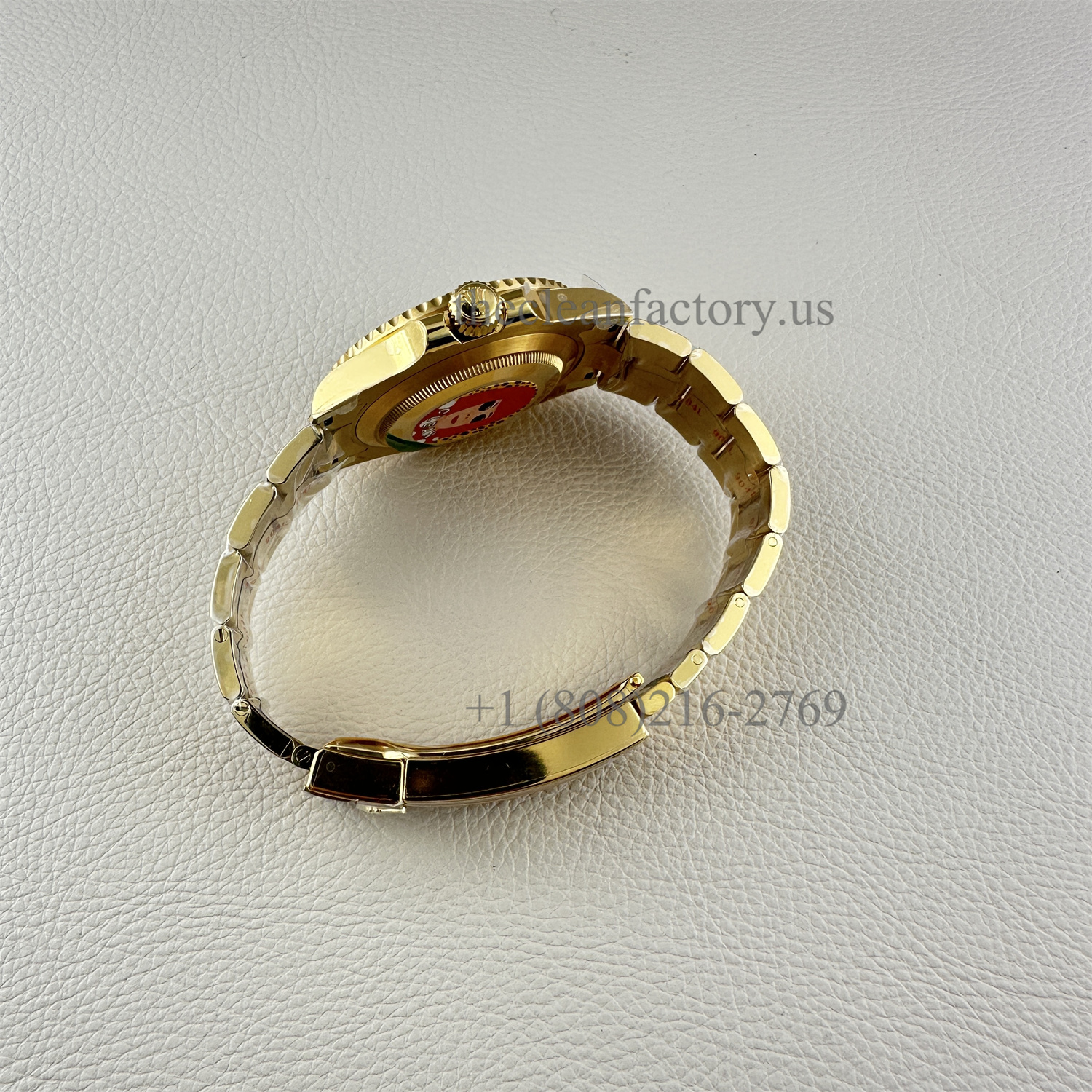- Il Clean Factory 126618LN ottiene ciò che gli altri sbagliano: l'oro. Non è quel giallo ottone ovviamente falso che urla "replica". Il processo esclusivo di Clean Factory utilizza prima un rivestimento PVD avanzato, poi applica un vero rivestimento in oro 18K sopra. Il risultato è perfettamente abbinato al colore dell'oro Rolex autentico, con il vantaggio cruciale che non sbiadirà, non si macchierà o non si consumerà con il tempo.
