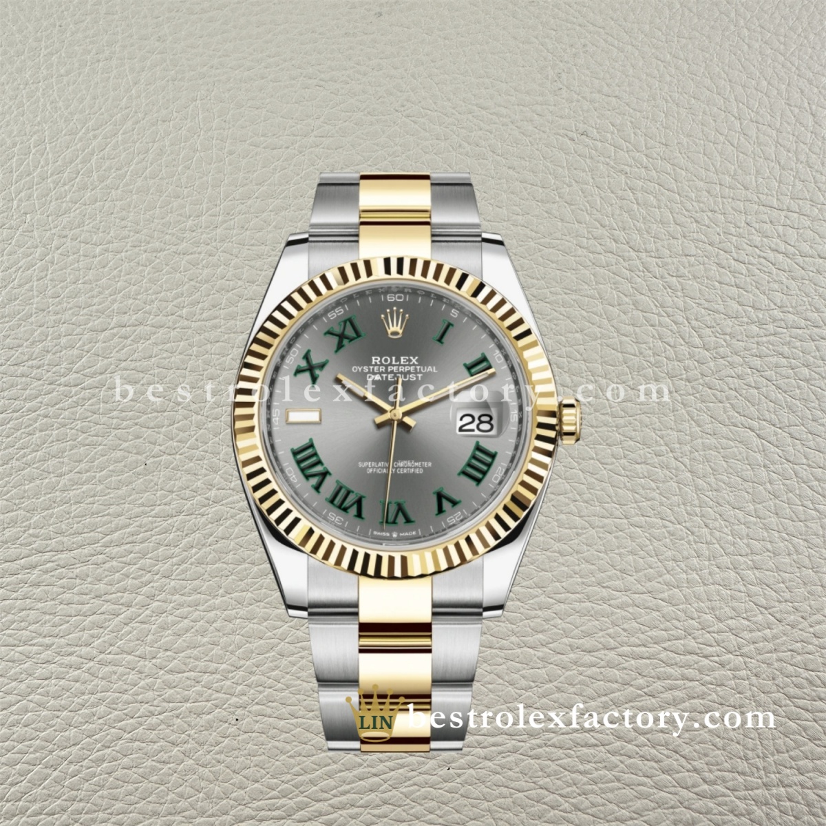 - La Rolex Super Clone Datejust 126333-0019 di Clean Factory combina l’esclusivo quadrante Wimbledon con l’oro giallo, creando un connubio che eleva l’estetica a un livello superiore. L’oro giallo ha caratteristiche di lavorazione particolari: in certi aspetti più indulgente, in altri molto più esigente. La sua tonalità più fredda interagisce con il grigio ardesia e i numeri romani verdi del quadrante Wimbledon, generando una percezione di lusso tradizionale. Con il bracciale Oyster bicolore, questa configurazione valorizza la classica estetica Rolex, realizzata qui con una competenza produttiva di altissimo livello.