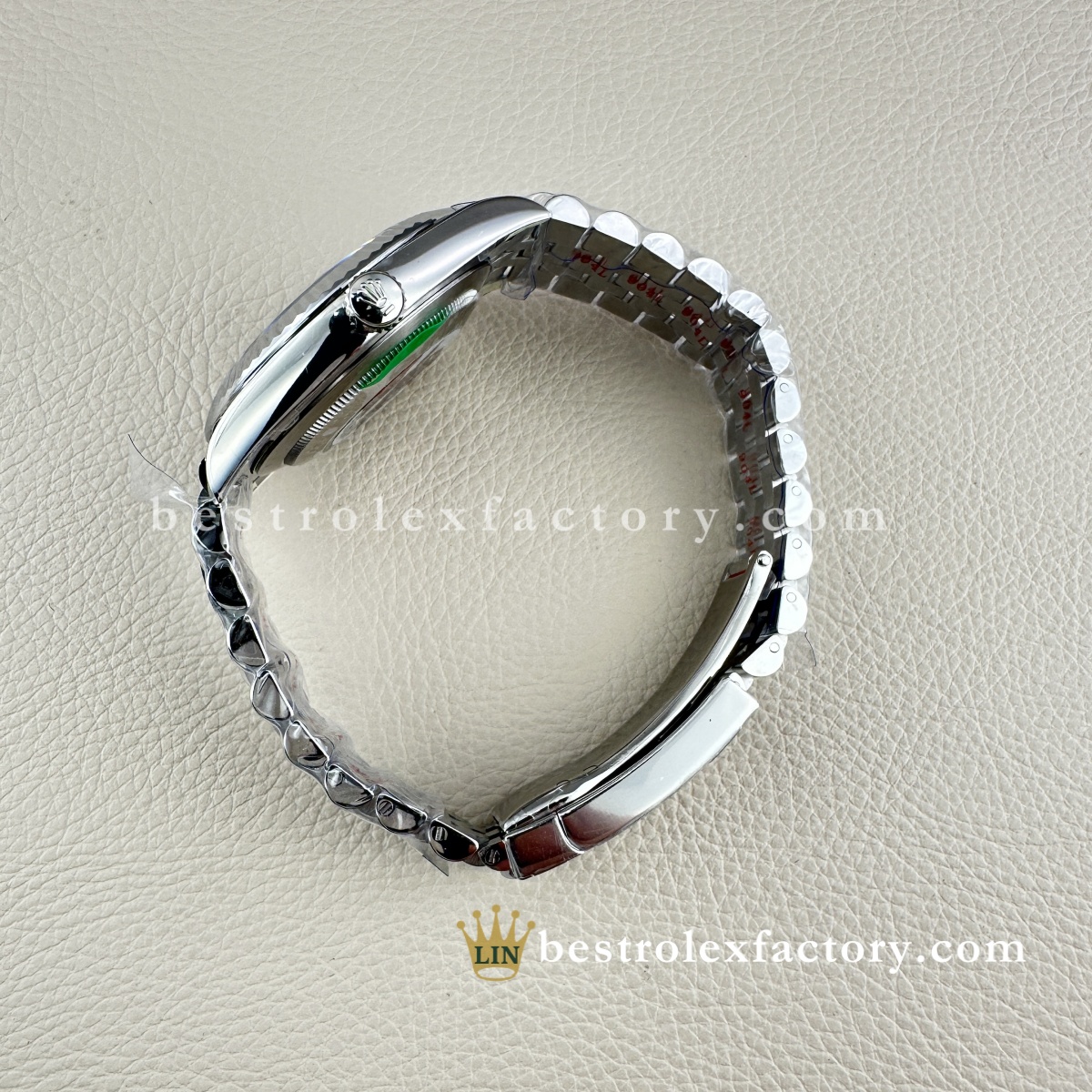 - La replica 1:1 Rolex Datejust 126334-0018 di Clean Factory dimostra che a volte gli indici applicati classici funzionano meglio dei diamanti. Questa combinazione permette al quadrante nero e alla lunetta zigrinata in oro bianco di risaltare senza entrare in competizione. Il risultato è più versatile e professionale: elegante per contesti aziendali formali e perfetto per l’uso quotidiano. Raggiungere questo equilibrio richiede una comprensione profonda di come oro bianco, finitura del quadrante nero e costruzione Jubilee si uniscano per creare un lusso sobrio.