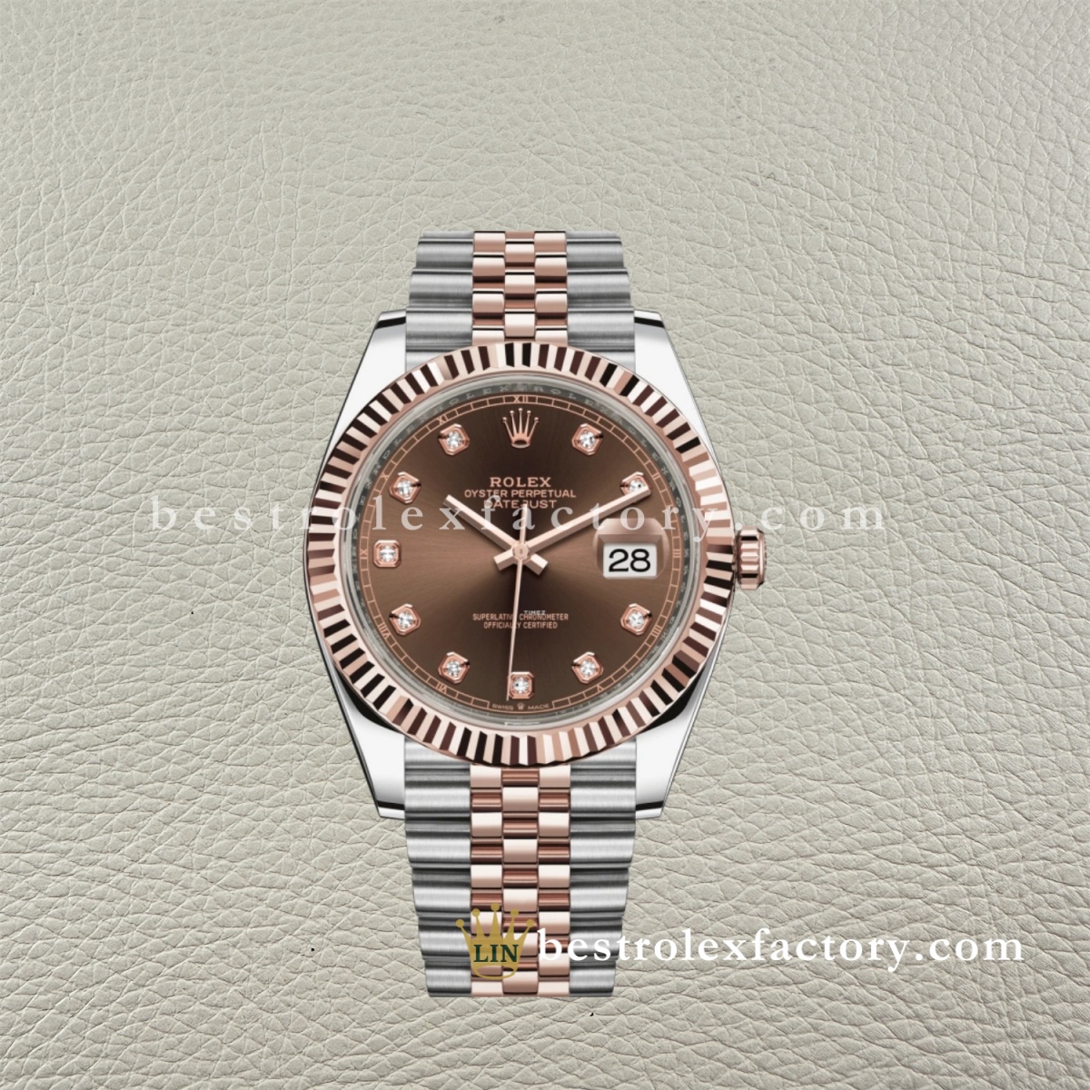 - Replica Super Clone Rolex Datejust 126331-0004 di Clean Factory con bracciale Jubilee porta la complessità al massimo livello, grazie all’unione di marcatori con diamanti moissanite, lunetta scanalata rivestita in oro rosa, quadrante color cioccolato e costruzione Jubilee a cinque maglie. Ognuno di questi elementi rappresenta una sfida produttiva che la maggior parte delle fabbriche non è in grado di affrontare singolarmente, figuriamoci insieme. L’integrazione perfetta di tutti questi dettagli rende questo modello unico nel mercato delle repliche di alta gamma.