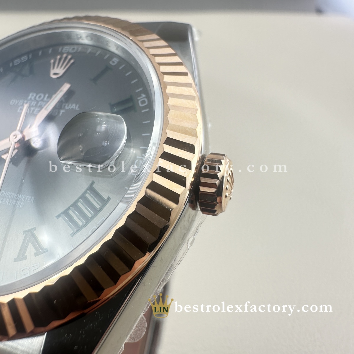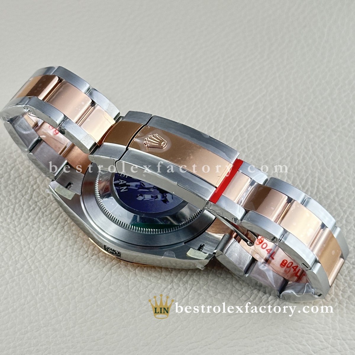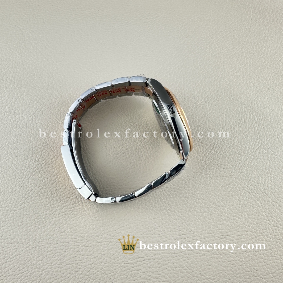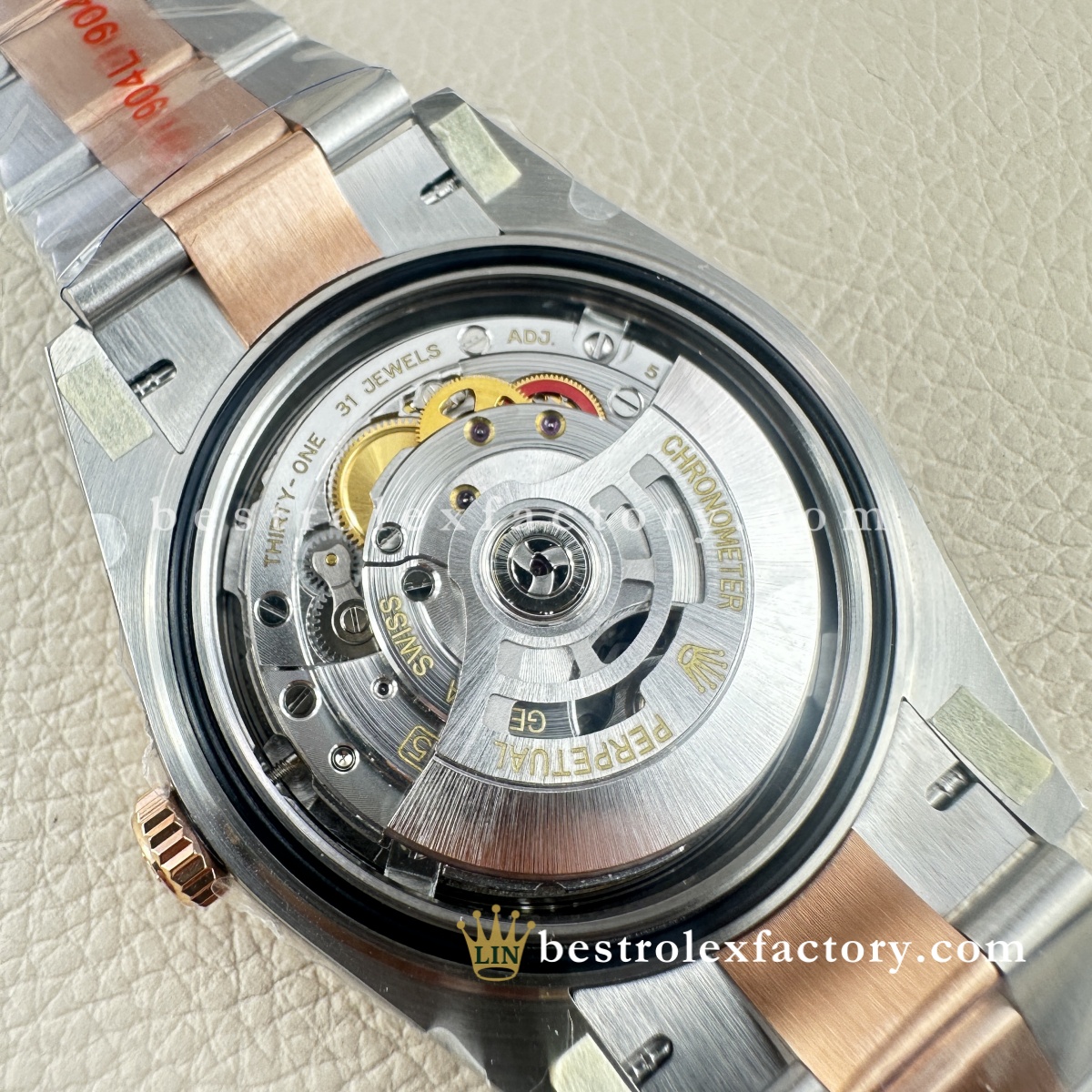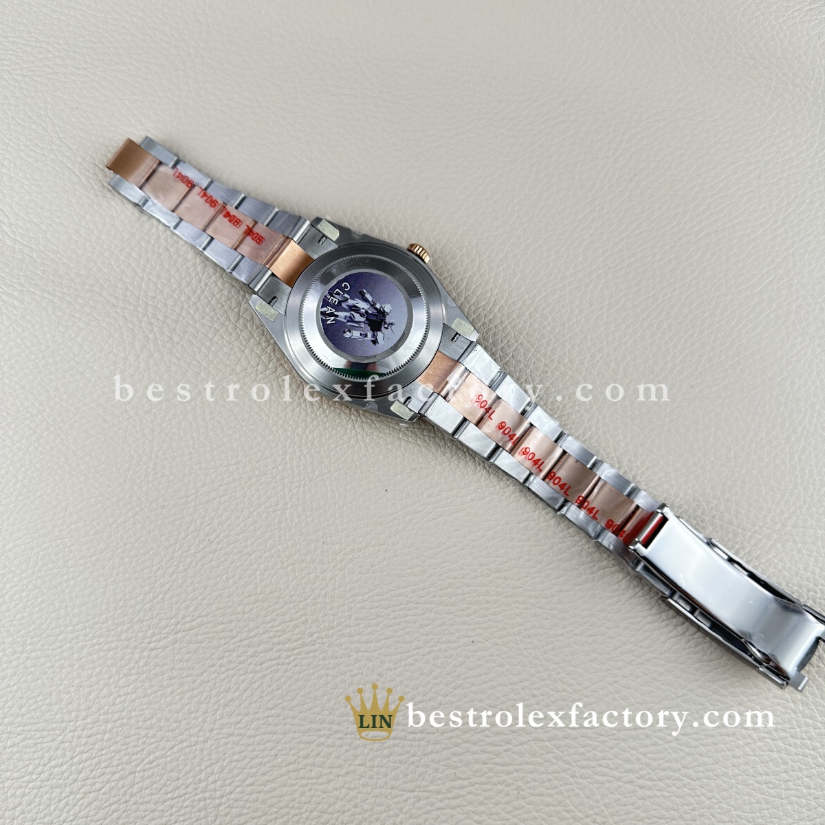 - Clean Factory Rolex Super Clone Datejust 126331-0015 unisce l’esclusivo quadrante Wimbledon al calore dell’oro rosa e alla costruzione Oyster bicolore, creando un carattere più ricco e raffinato rispetto alle versioni in oro giallo. La percentuale di rame dell’oro rosa dona profondità cromatica perfettamente armonizzata con i numeri romani verdi del quadrante Wimbledon, mentre il bracciale Oyster aggiunge una presenza importante che si integra con l’eleganza del quadrante. Poiché i quadranti Wimbledon richiedono una tecnologia PVD avanzata che molti produttori non riescono a gestire, questo modello è una testimonianza della precisione assoluta di Clean Factory.