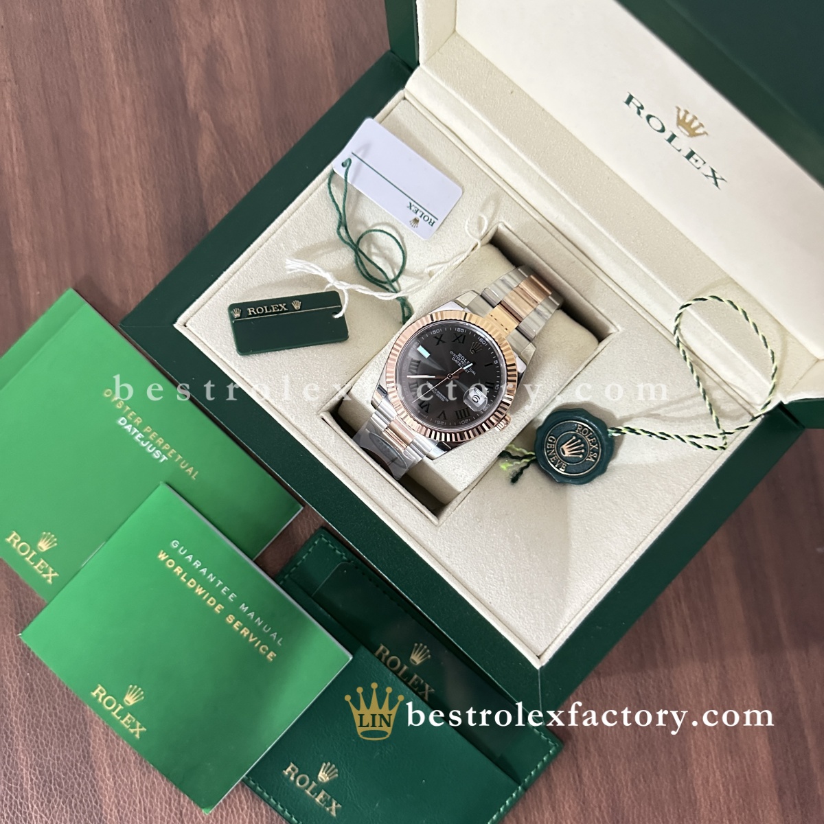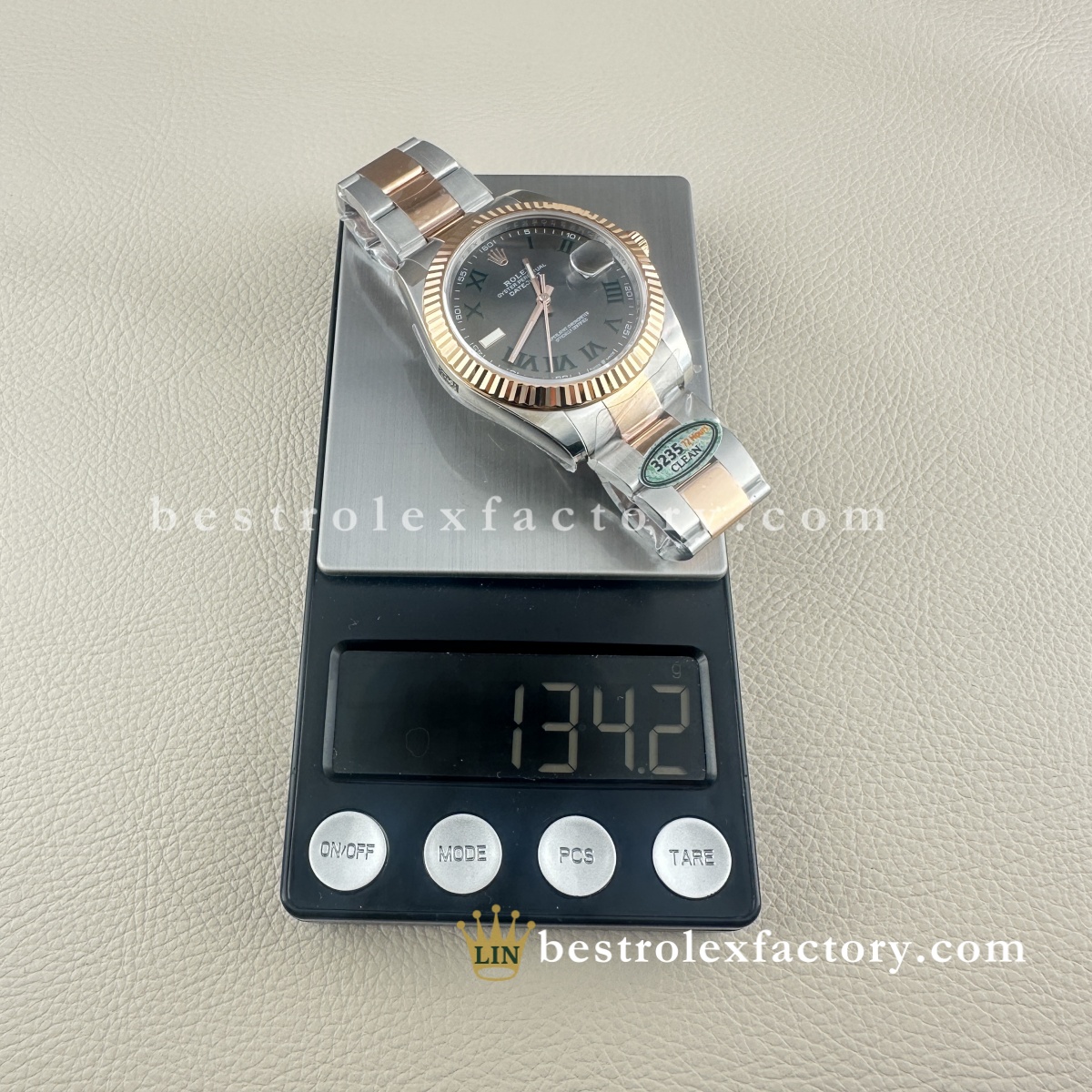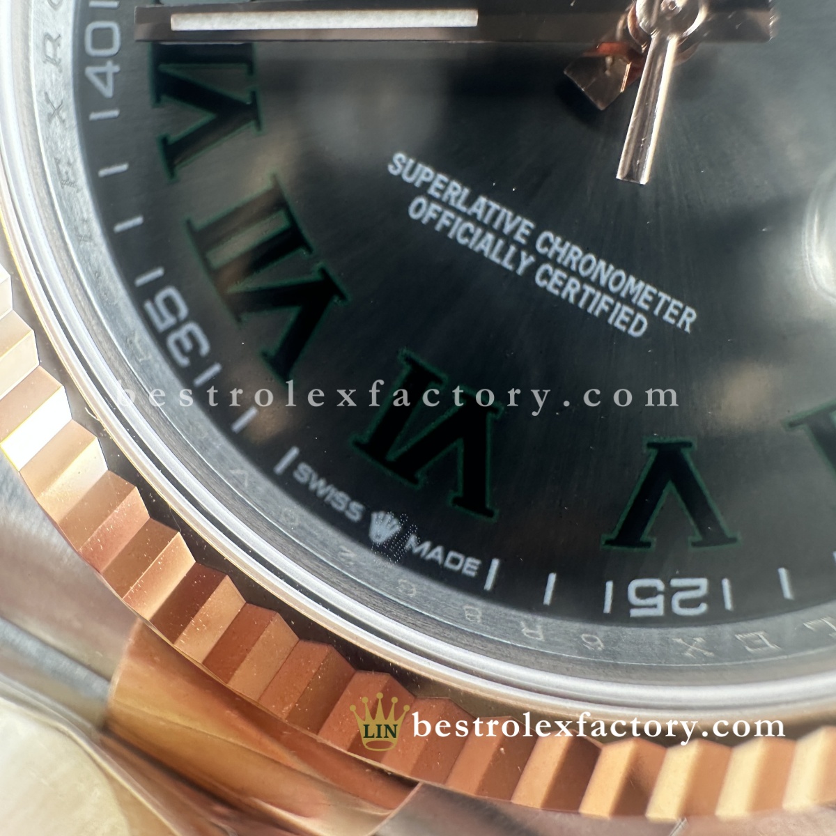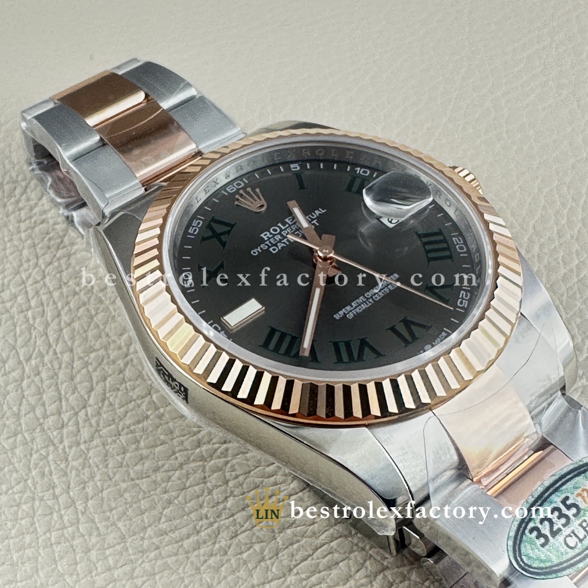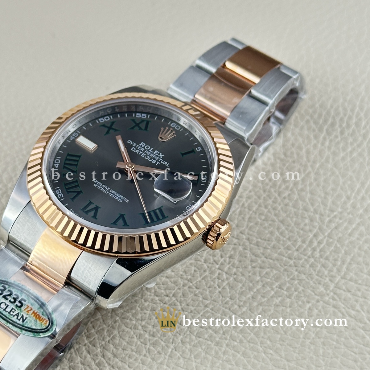 - Clean Factory Rolex Super Clone Datejust 126331-0015 unisce l’esclusivo quadrante Wimbledon al calore dell’oro rosa e alla costruzione Oyster bicolore, creando un carattere più ricco e raffinato rispetto alle versioni in oro giallo. La percentuale di rame dell’oro rosa dona profondità cromatica perfettamente armonizzata con i numeri romani verdi del quadrante Wimbledon, mentre il bracciale Oyster aggiunge una presenza importante che si integra con l’eleganza del quadrante. Poiché i quadranti Wimbledon richiedono una tecnologia PVD avanzata che molti produttori non riescono a gestire, questo modello è una testimonianza della precisione assoluta di Clean Factory.