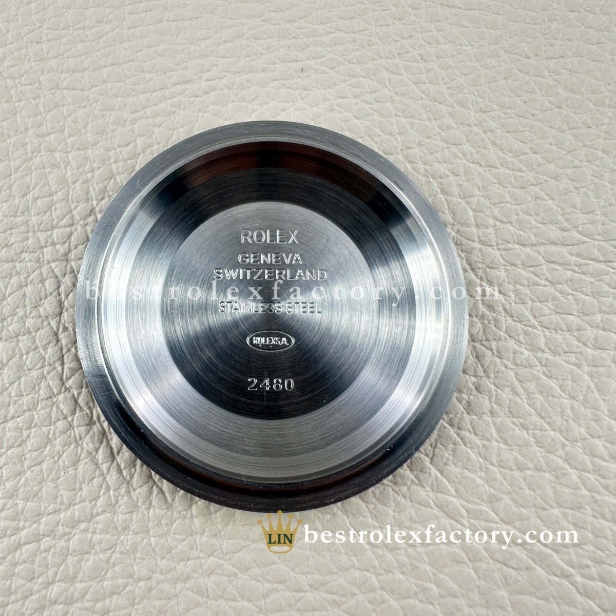 - La lente Cyclops offre un ingrandimento reale di 2,5x con allineamento perfetto sulla finestra della data. Le cifre rispettano in forma e spessore le specifiche originali, un dettaglio che fa la differenza su un quadrante così caratteristico. Il vetro zaffiro integra la corona incisa al laser a ore 6, posizionata secondo standard di fabbrica.