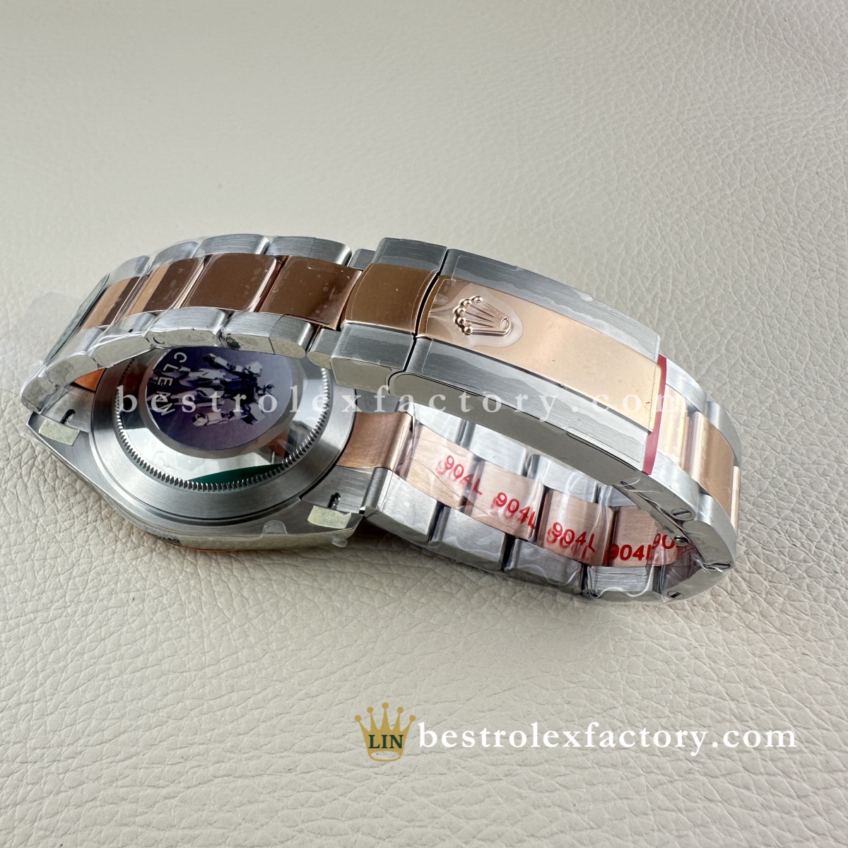 - Molti produttori evitano i quadranti Wimbledon o ne compromettono la qualità, poiché la realizzazione richiede competenze specializzate e tecnologie avanzate. Combinare lunetta in oro rosa e bracciale Oyster bicolore aumenta ulteriormente la complessità. L’investimento Clean Factory in processi d’avanguardia garantisce un risultato che mantiene nel tempo il fascino autentico e la raffinatezza che definiscono questo modello.