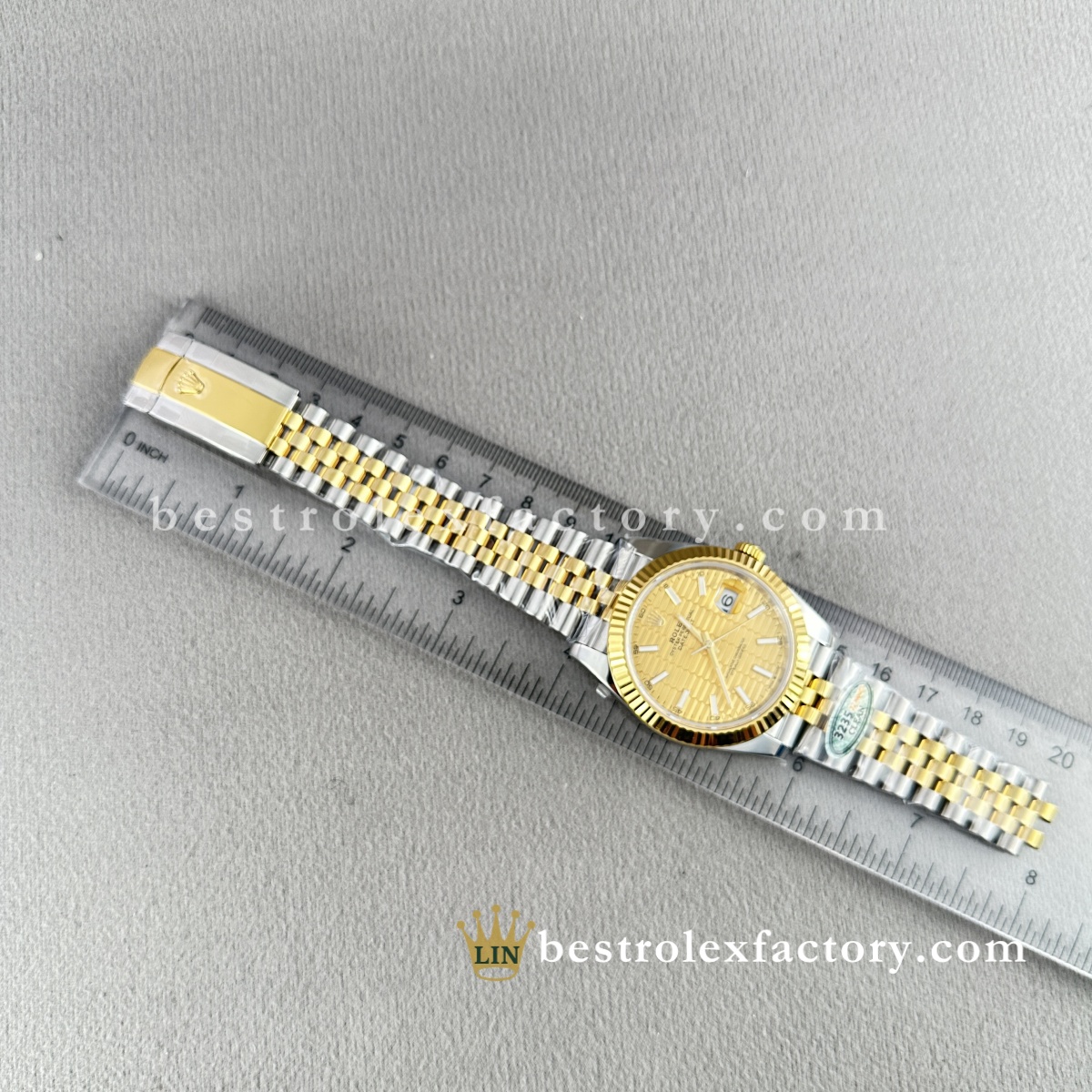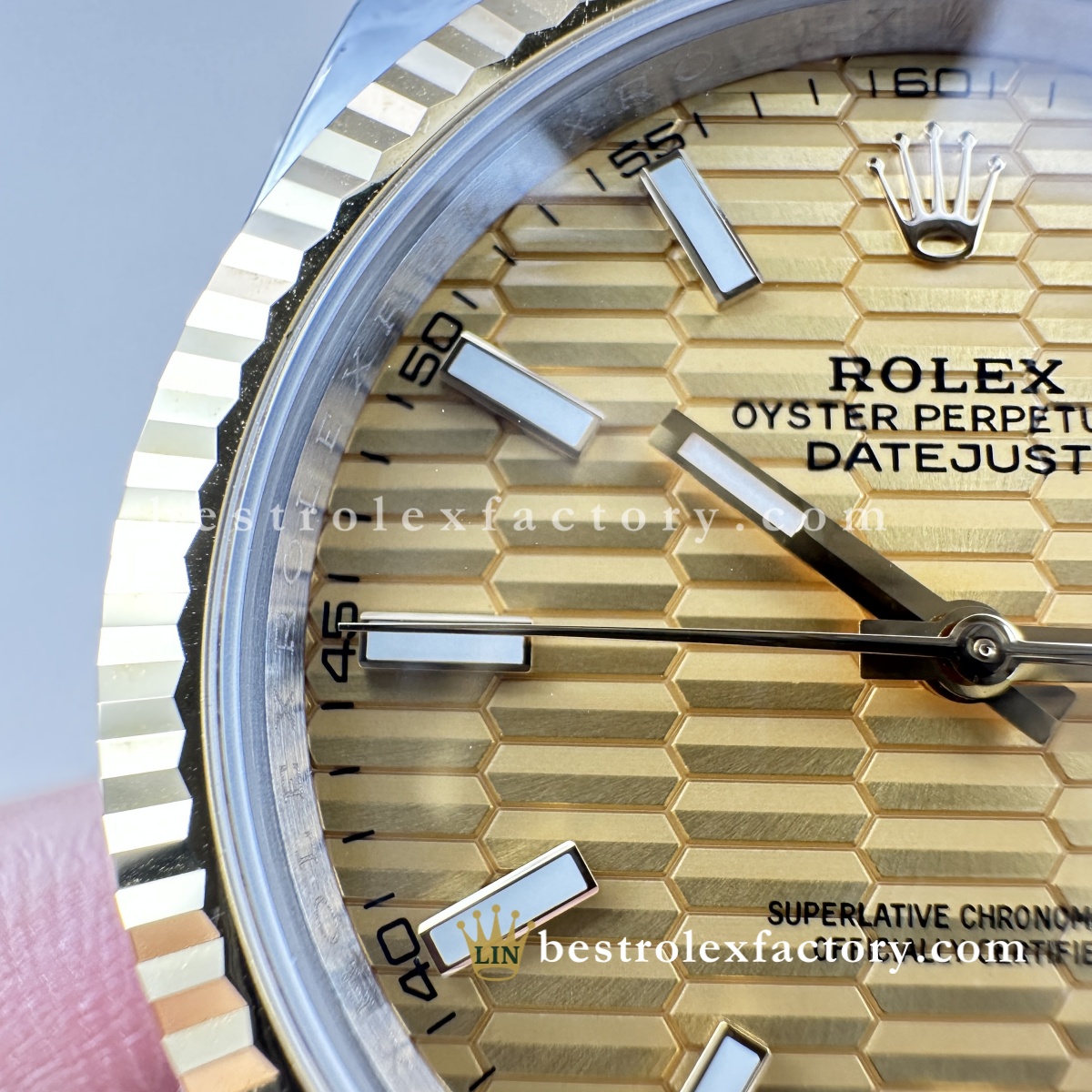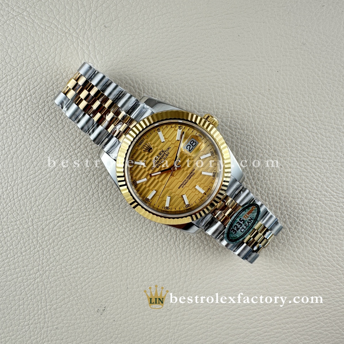 - La maggior parte dei produttori evita i quadranti scanalati perché richiedono lavorazioni di precisione avanzate. Abbinarli a una lunetta in oro giallo e alla complessità di un Jubilee supera le capacità delle manifatture tradizionali. Gli investimenti di Clean Factory in strumenti moderni e controlli rigorosi hanno reso possibile un orologio che combina unità estetica, affidabilità a lungo termine e la migliore manifattura replica disponibile.