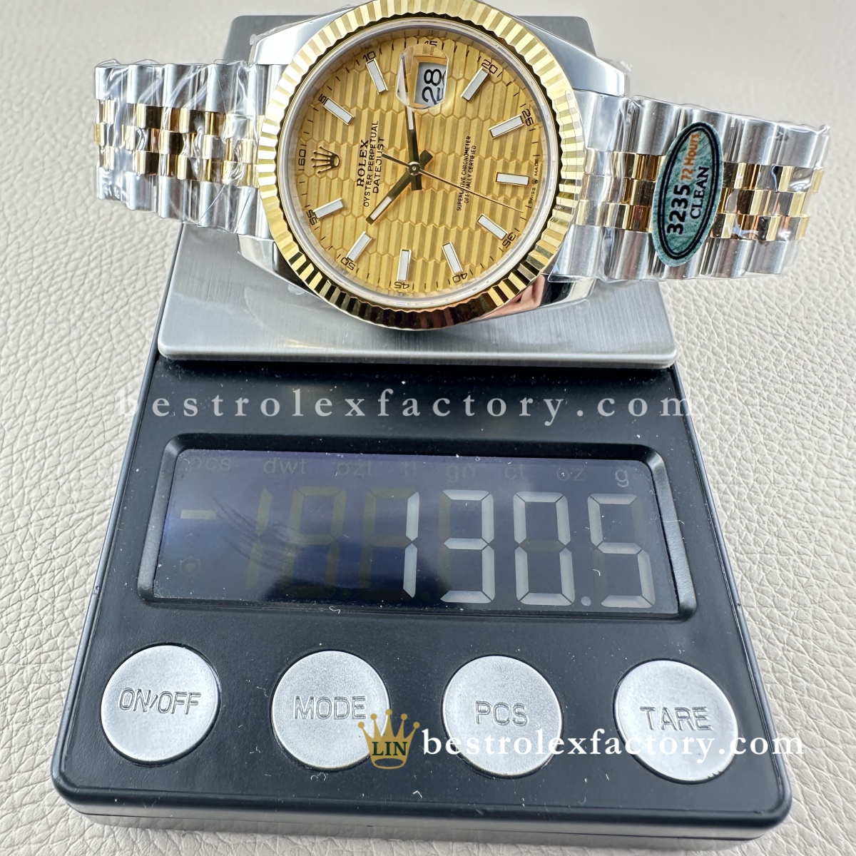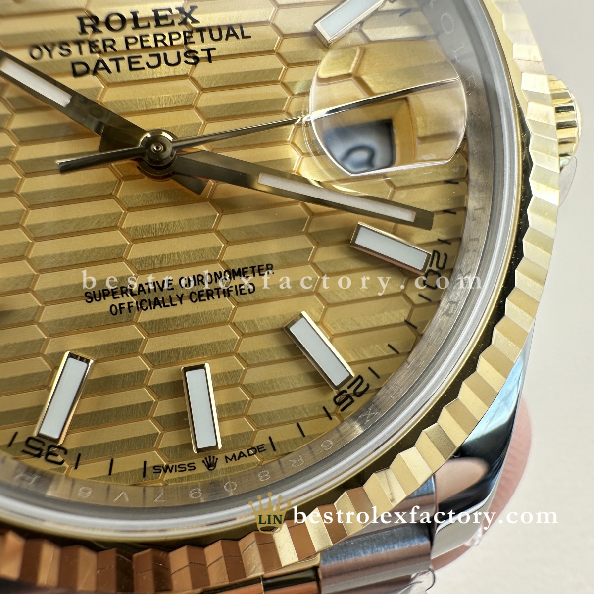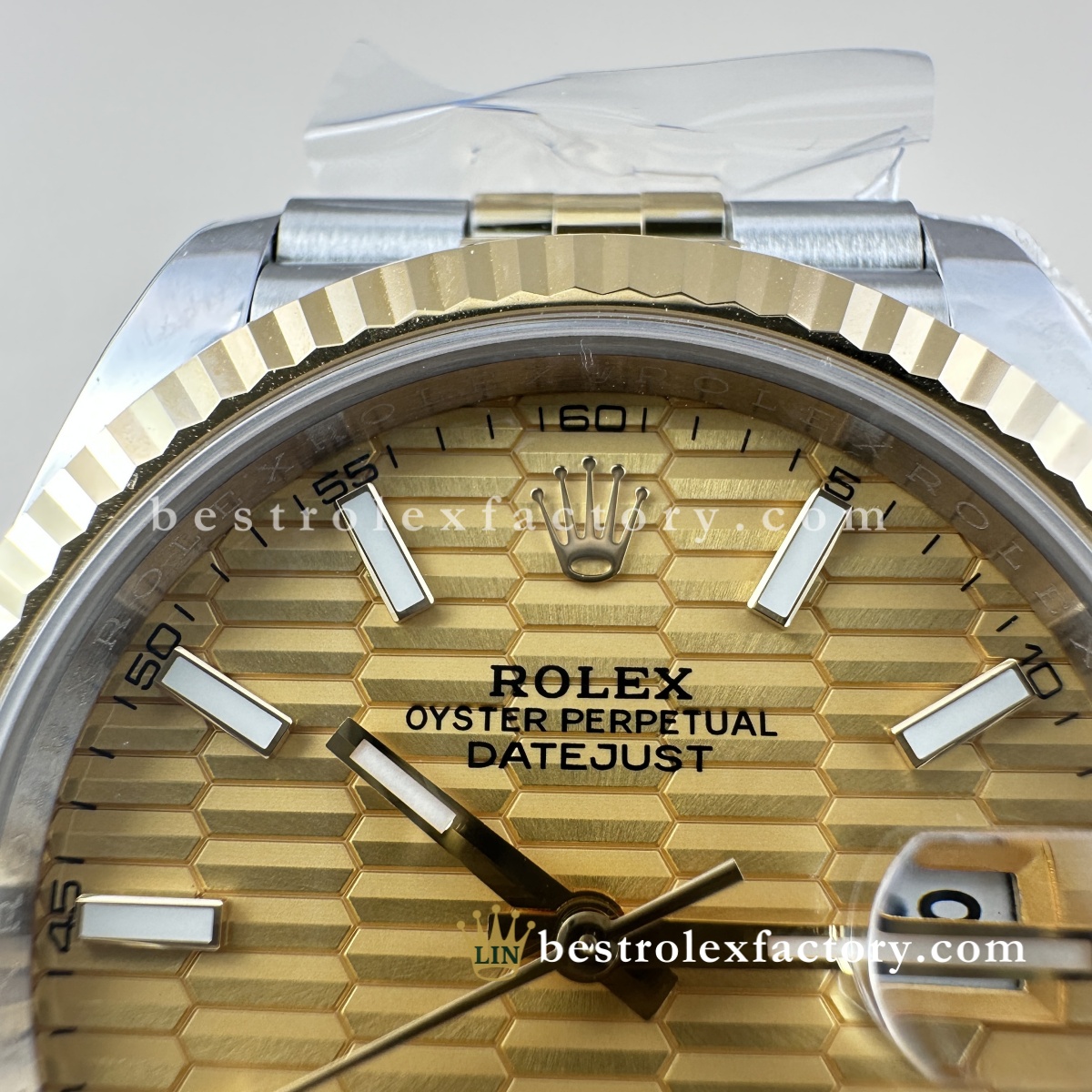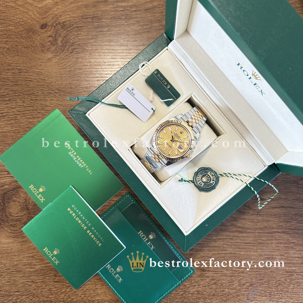 - La maggior parte dei produttori evita i quadranti scanalati perché richiedono lavorazioni di precisione avanzate. Abbinarli a una lunetta in oro giallo e alla complessità di un Jubilee supera le capacità delle manifatture tradizionali. Gli investimenti di Clean Factory in strumenti moderni e controlli rigorosi hanno reso possibile un orologio che combina unità estetica, affidabilità a lungo termine e la migliore manifattura replica disponibile.
