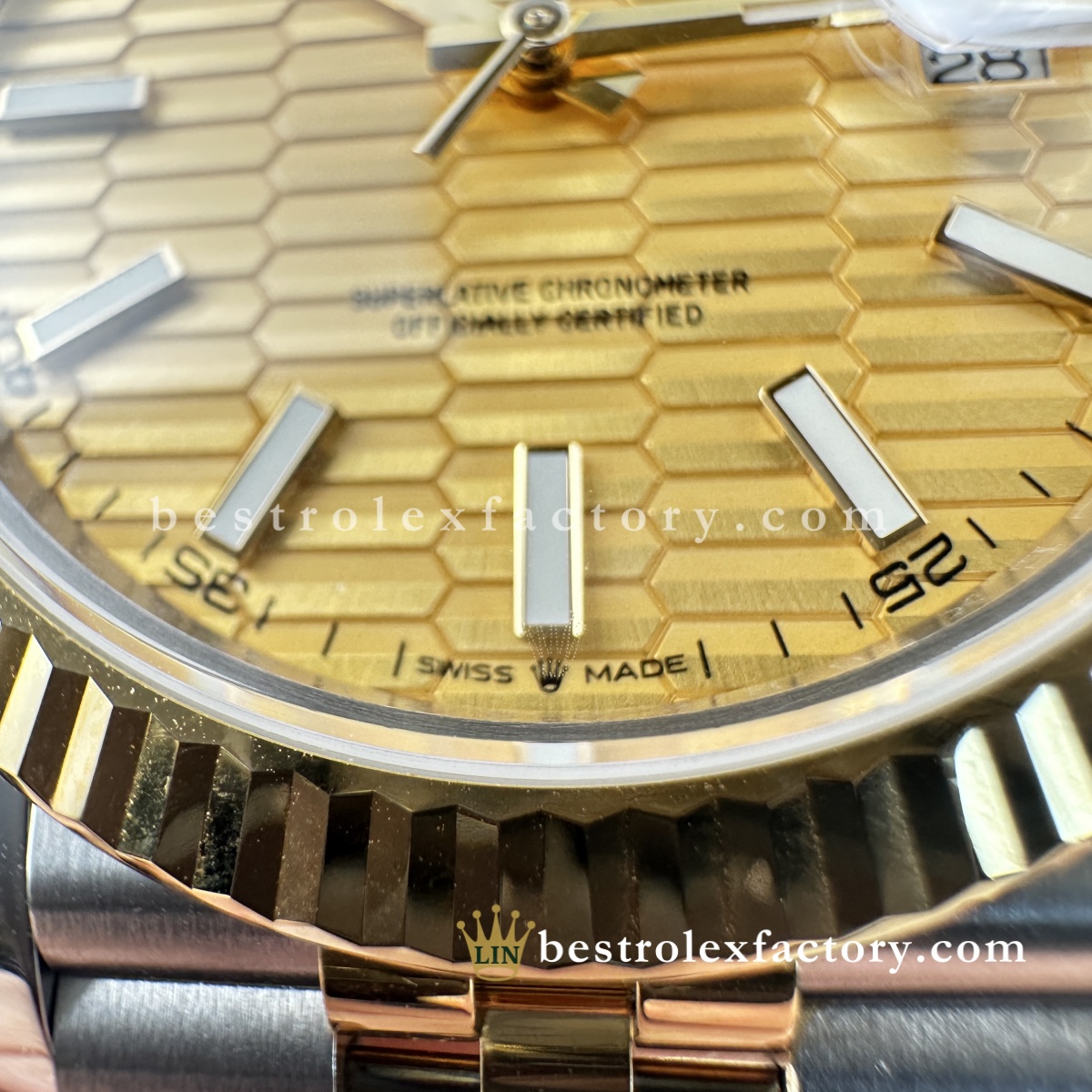- Clean Factory Super Clone Rolex Datejust 126333-0022 crea un’armonia visiva perfetta tra la lunetta scanalata e il quadrante con motivo scanalato – un effetto che può sembrare semplice, ma che richiede una complessità produttiva notevole. La realizzazione di un quadrante con motivo scanalato richiede lavorazioni di precisione che superano le capacità della maggior parte dei produttori. Abbinarlo a una costruzione bicolore in oro giallo e al bracciale Jubilee mette alla prova ogni aspetto dell’orologeria moderna. Questo modello dimostra come Clean Factory riesca a unire dettagli minuziosi in un insieme coerente, senza che i singoli elementi si sovrappongano visivamente.