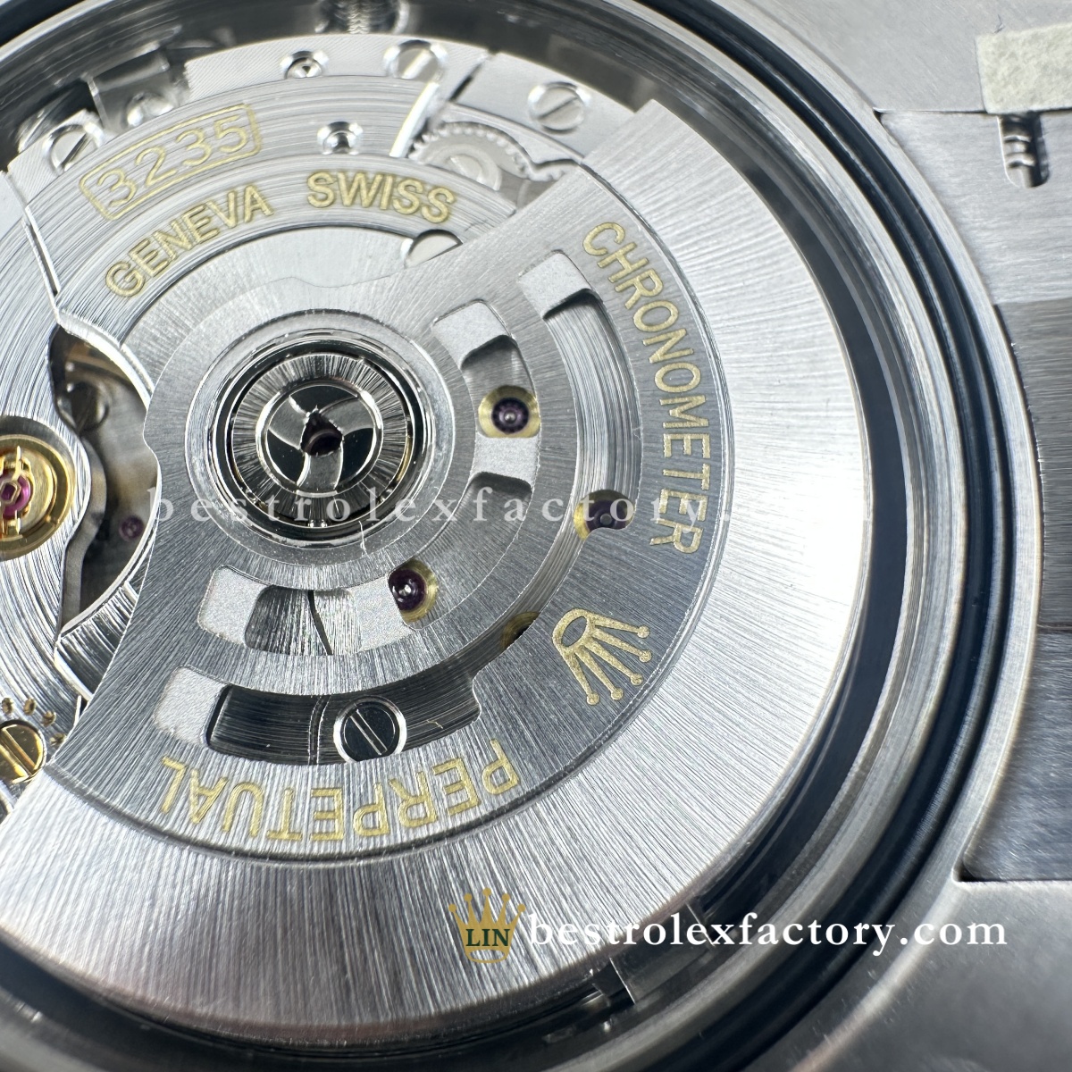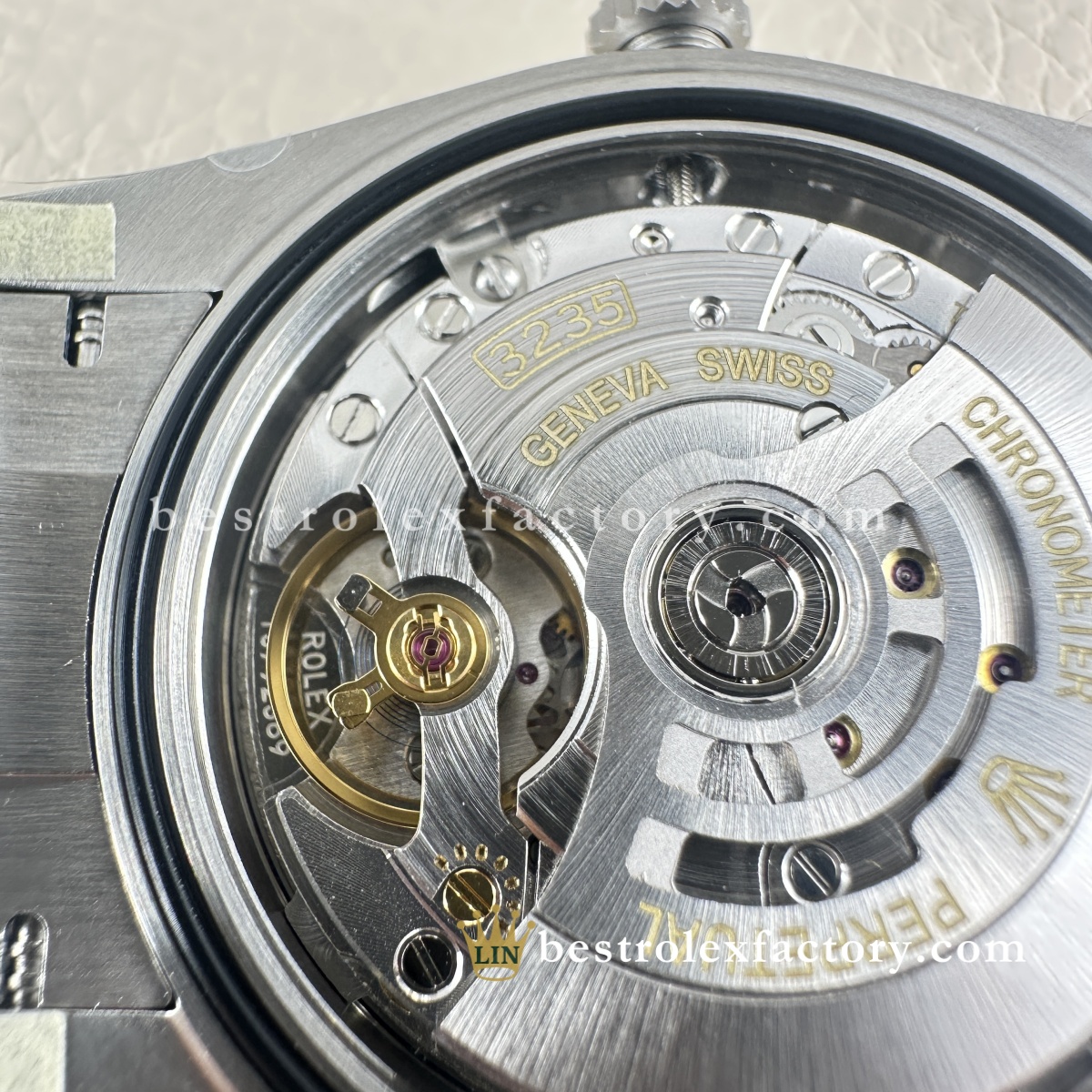 - All’interno, il movimento super clone 3235 garantisce precisione affidabile, con una riserva di carica di 70 ore e cambio data istantaneo a mezzanotte. La carica è fluida e la corona offre quella resistenza rassicurante che contraddistingue i movimenti ben realizzati.