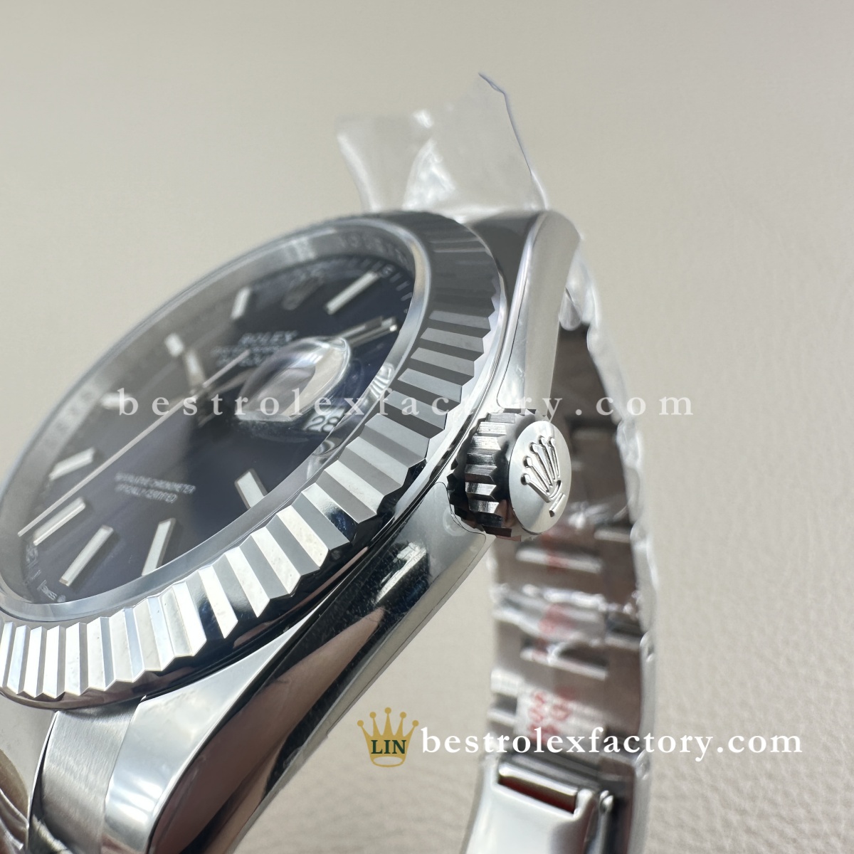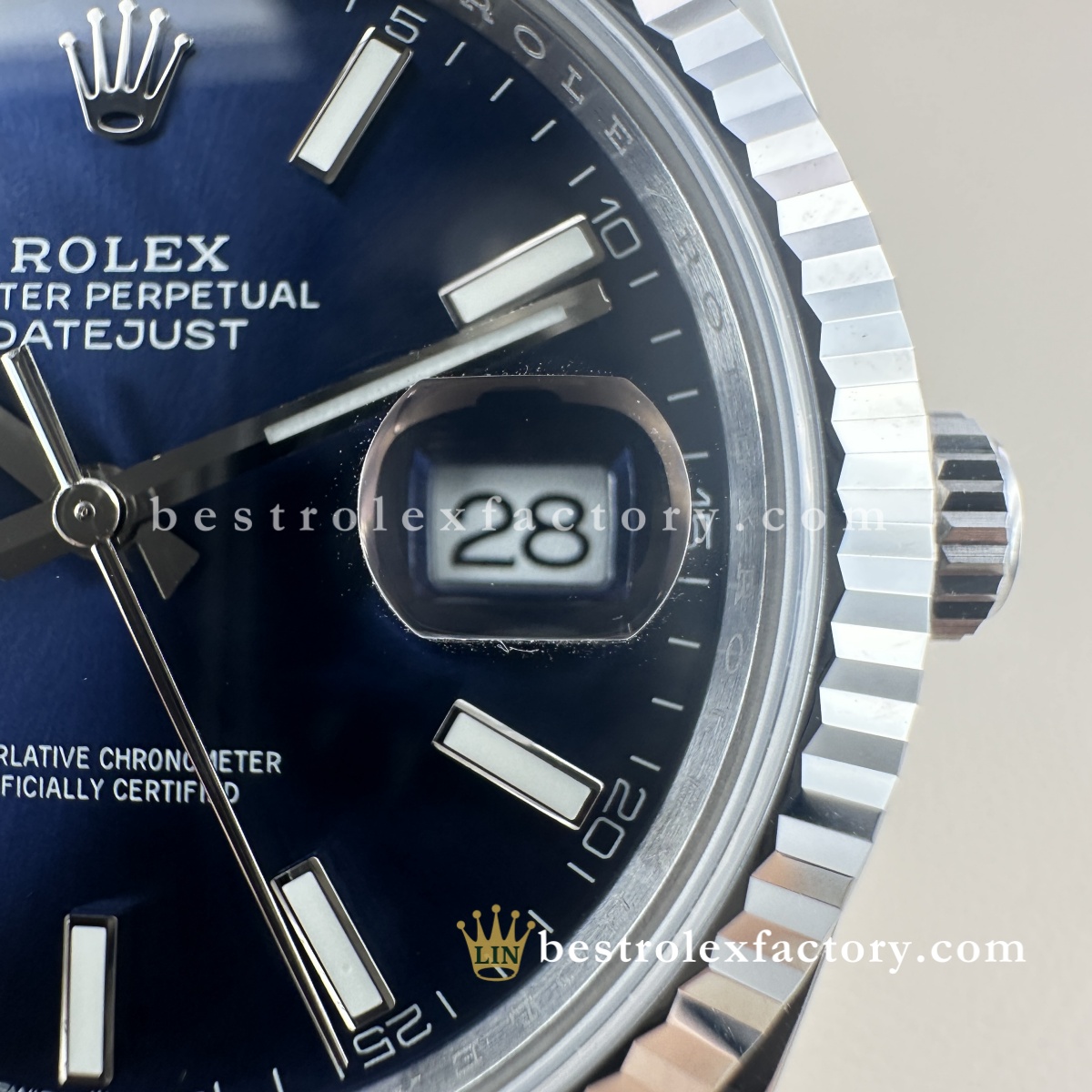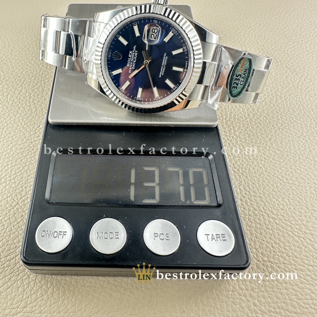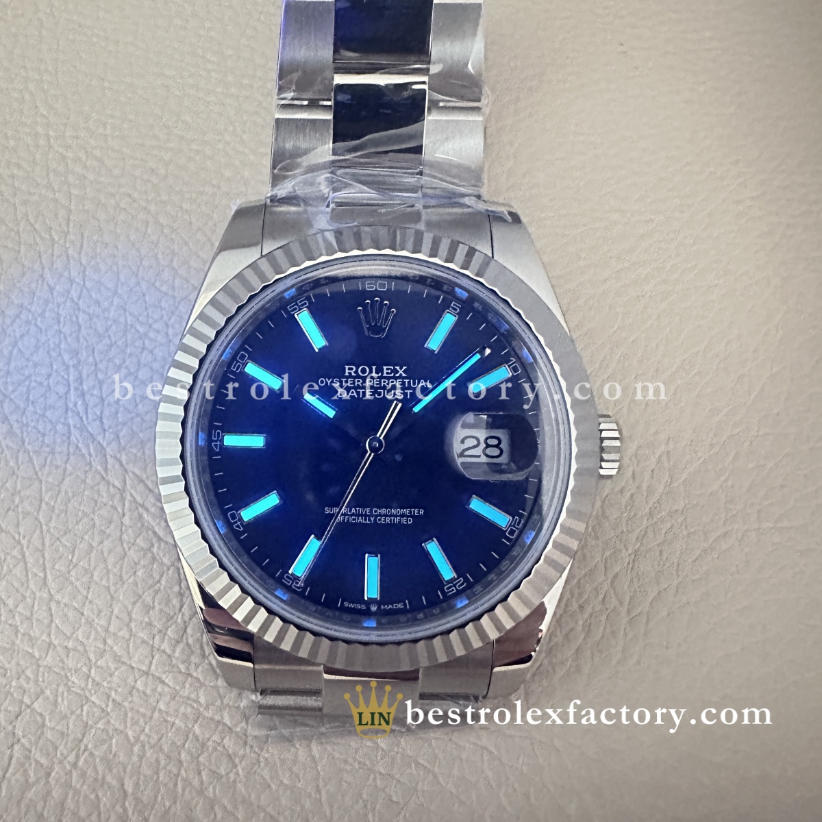 - Il Super Clone Rolex Datejust 126334-0001 di Clean Factory abbina la lunetta scanalata in oro bianco a un quadrante blu sunburst, creando un look moderno, raffinato e discreto. Sebbene possa sembrare semplice, questa combinazione richiede una produzione di altissimo livello: l’oro bianco è più difficile da lavorare rispetto ad altri metalli preziosi, e qualsiasi imperfezione si nota subito sullo sfondo blu pulito.