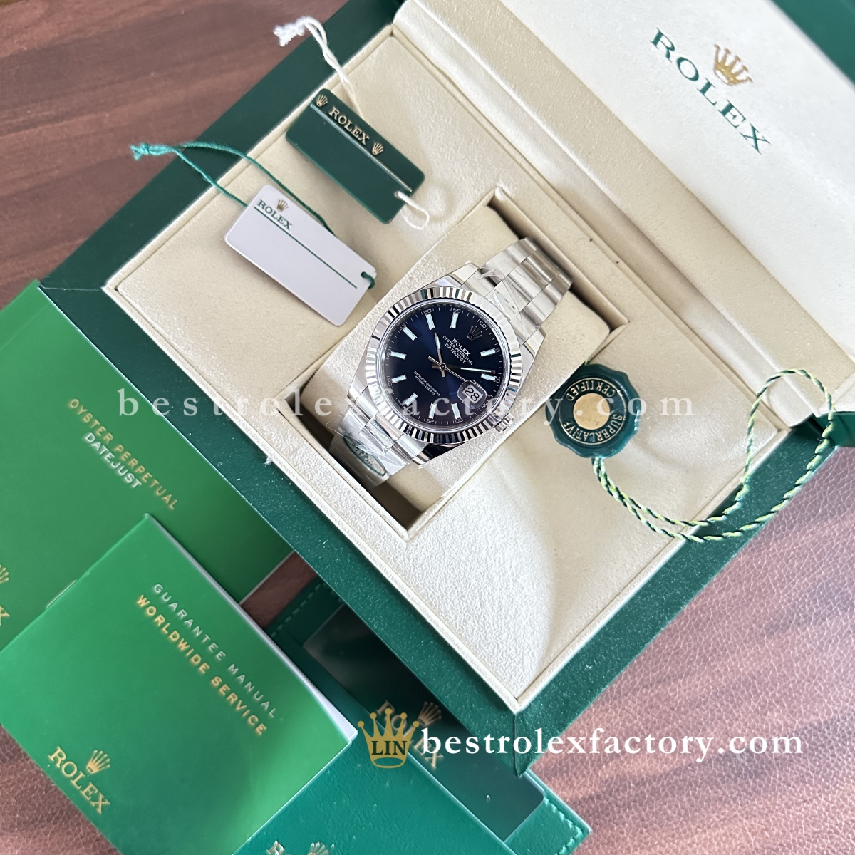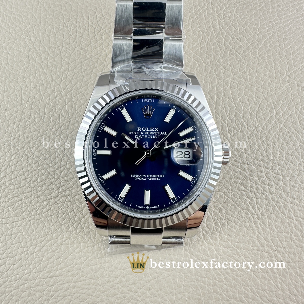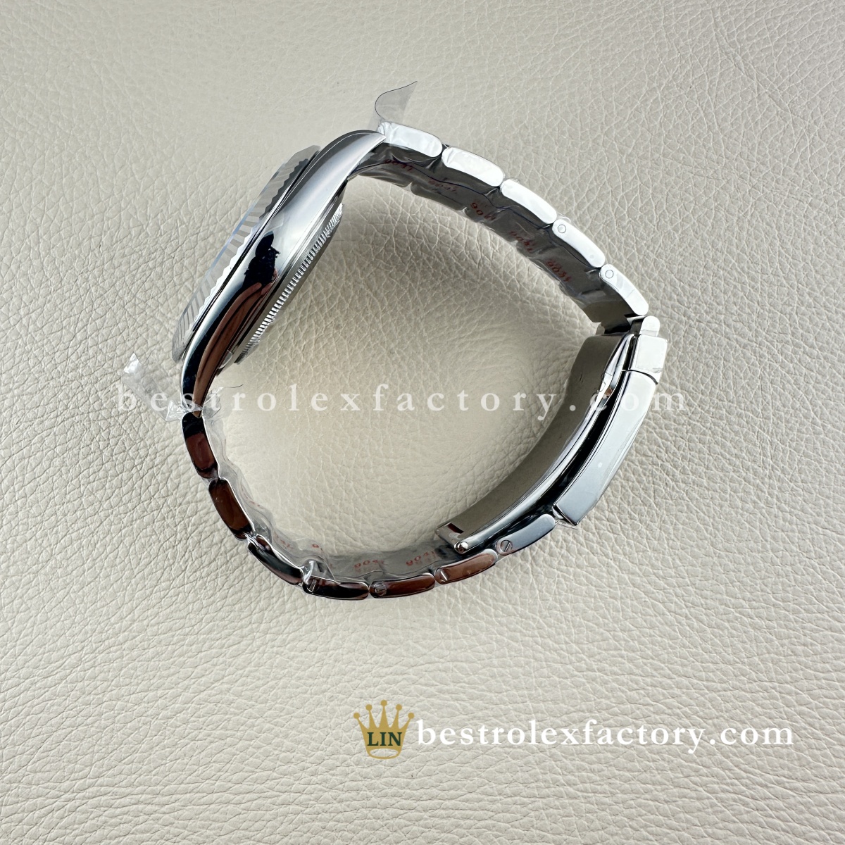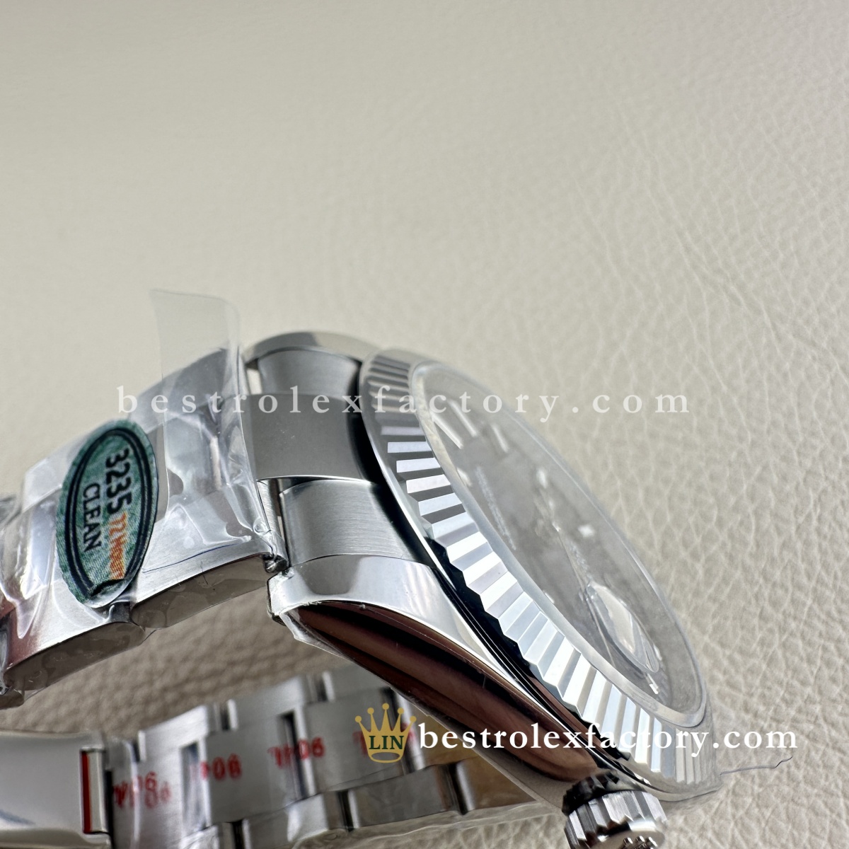 - Il Super Clone Rolex Datejust 126334-0001 di Clean Factory abbina la lunetta scanalata in oro bianco a un quadrante blu sunburst, creando un look moderno, raffinato e discreto. Sebbene possa sembrare semplice, questa combinazione richiede una produzione di altissimo livello: l’oro bianco è più difficile da lavorare rispetto ad altri metalli preziosi, e qualsiasi imperfezione si nota subito sullo sfondo blu pulito.