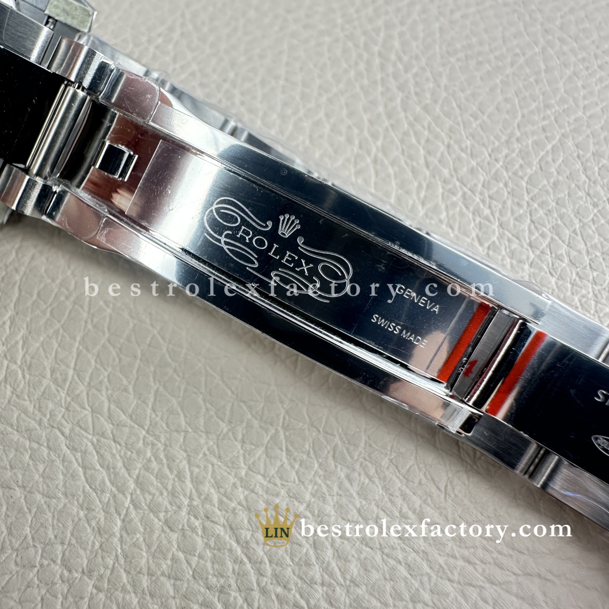 - Il bracciale Oyster aggiunge una sensazione solida e contemporanea che si abbina alla palette fredda. I suoi maglie a tre elementi sono robusti ma confortevoli, con bordi esterni satinati e sezioni centrali lucidate che creano il giusto contrasto. La chiusura Oysterclasp si blocca con sicurezza e si regola facilmente, rendendo l’orologio perfetto per l’uso quotidiano.