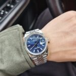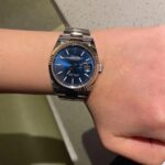The blue dial is striking — it has a slight sunburst finish that reflects light beautifully. Really impressed with the depth of the color.