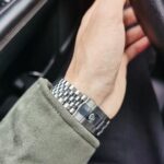 - Le cinque maglie del bracciale offrono, nonostante l’aspetto formale, un comfort quotidiano eccellente. Ogni sezione si muove con fluidità, offrendo la tipica flessibilità del Jubilee, ma con una solidità che ne aumenta la praticità. Rispetto all’Oyster, risulta più elegante e adatta a contesti dove l’impressione di raffinatezza è essenziale.