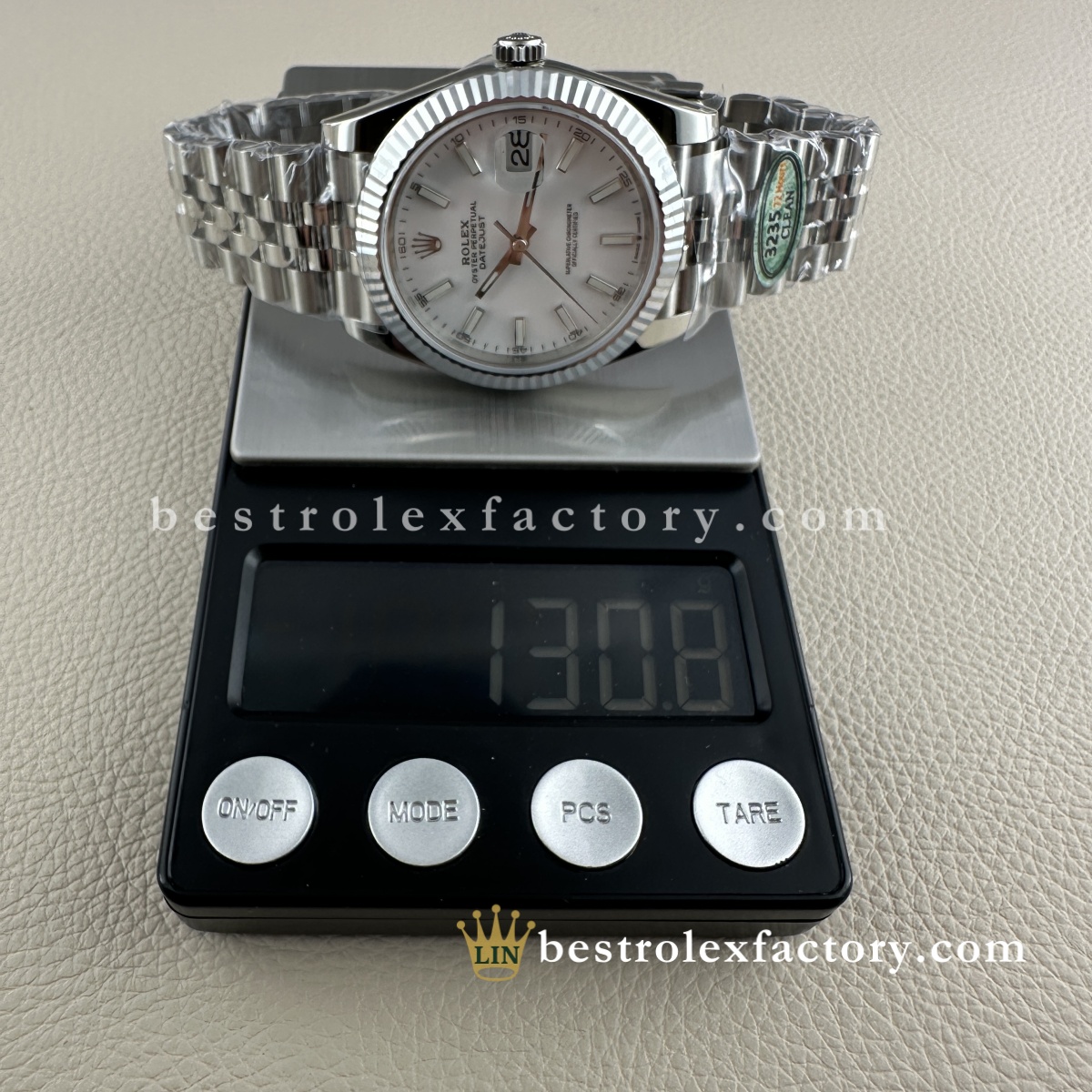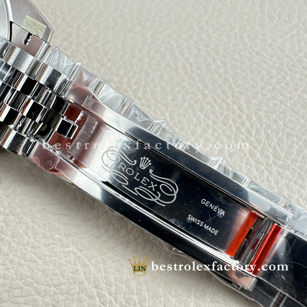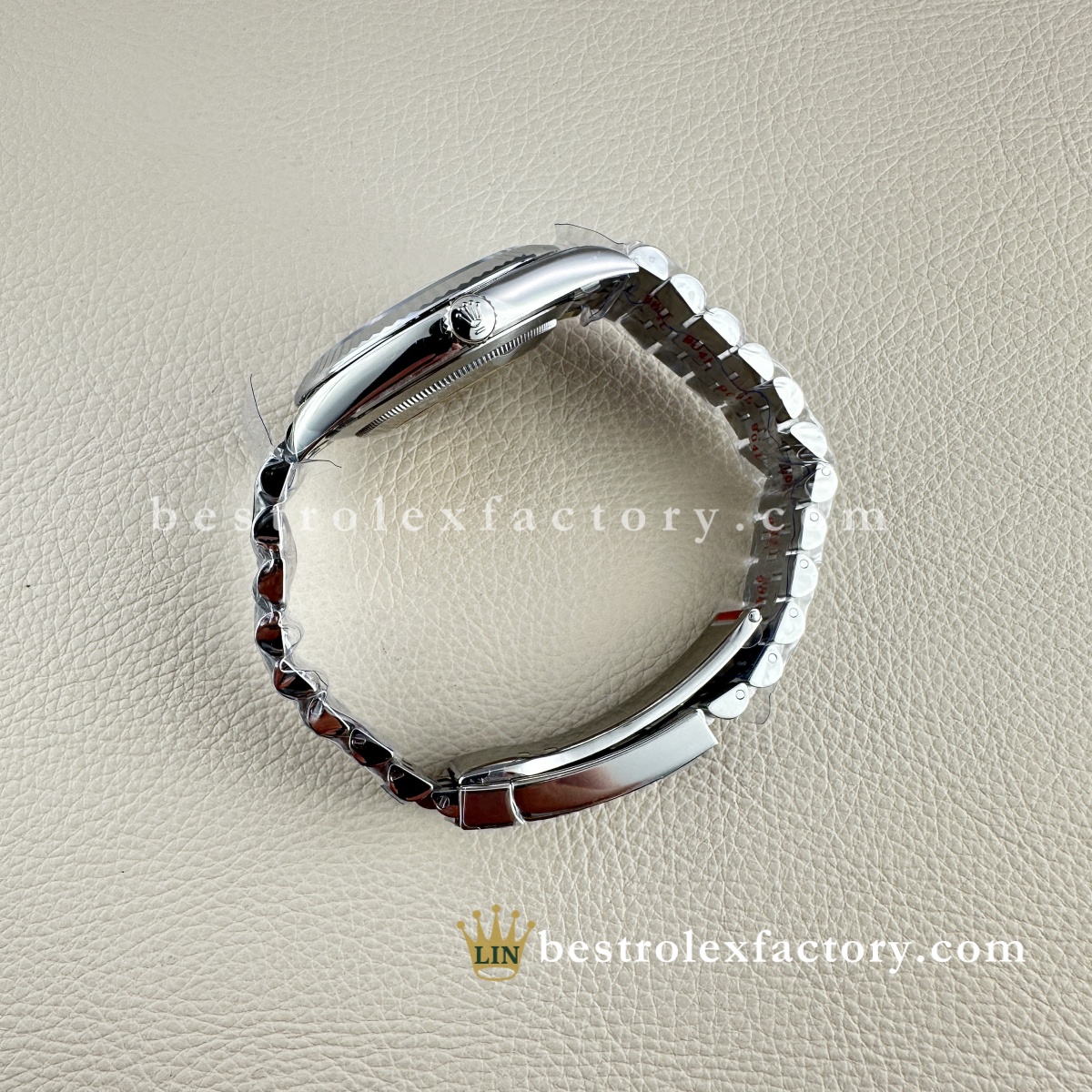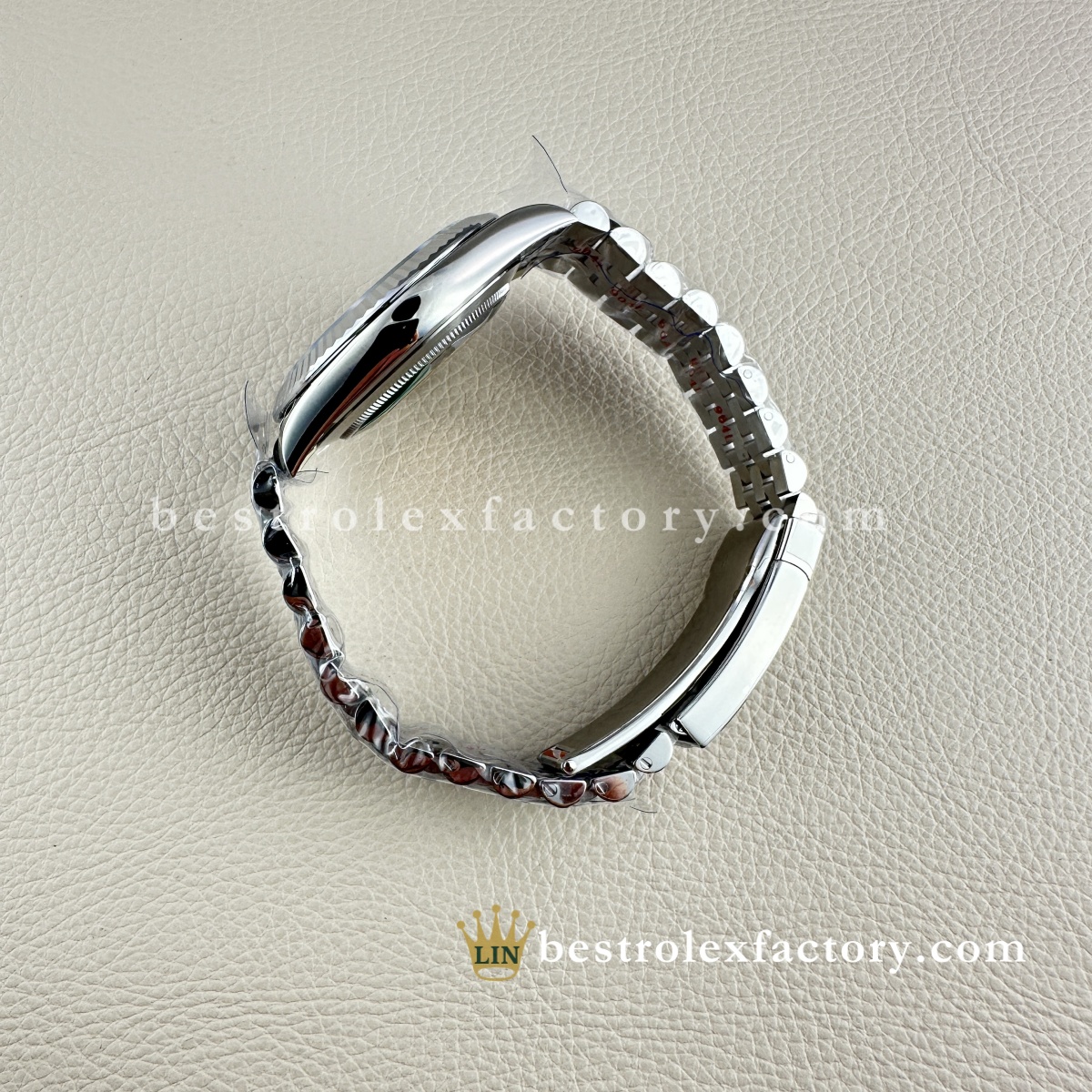 - Con i suoi 41 mm, questo modello comunica una sicurezza silenziosa. Il quadrante bianco garantisce massima versatilità e adeguatezza in ogni contesto, mentre l’oro bianco dona un lusso autentico che non ha bisogno di ostentazione. Il bracciale Jubilee aggiunge comfort e sobria eleganza, rendendo questa Datejust perfetta tanto in ambienti professionali quanto nelle occasioni formali.