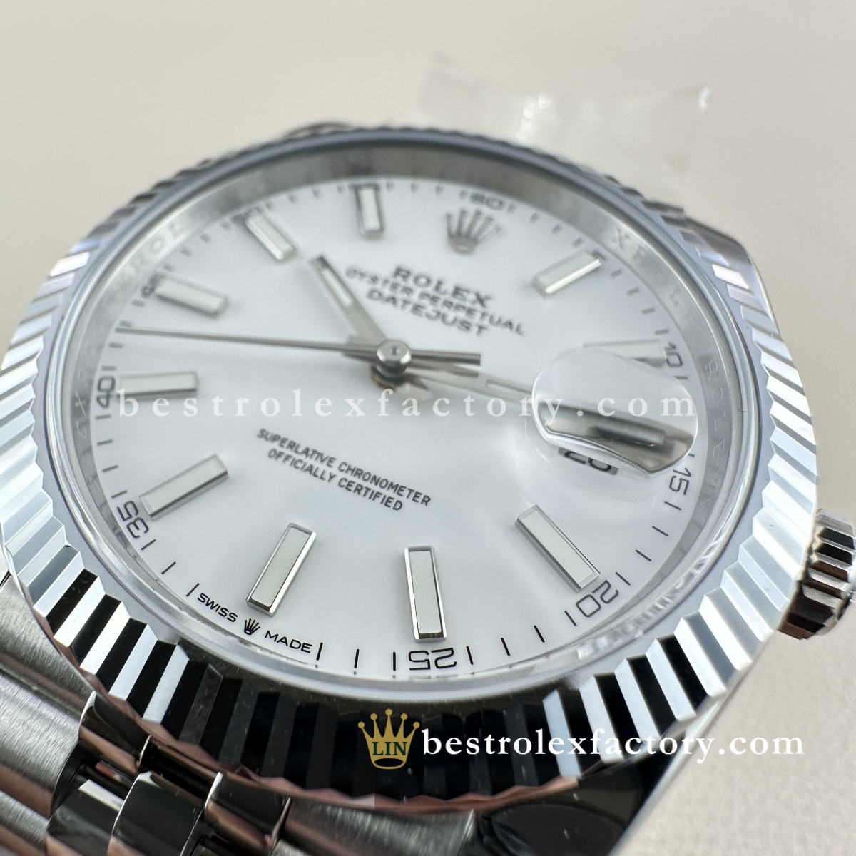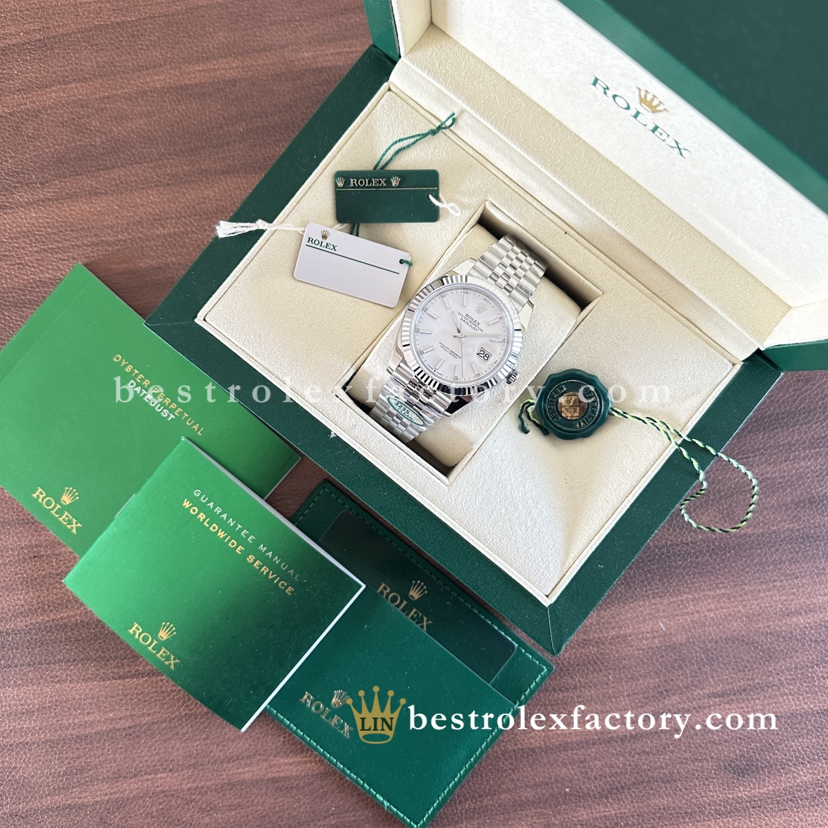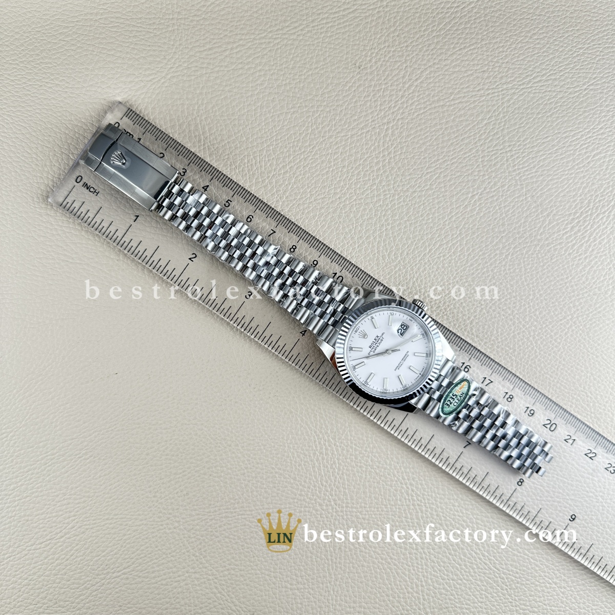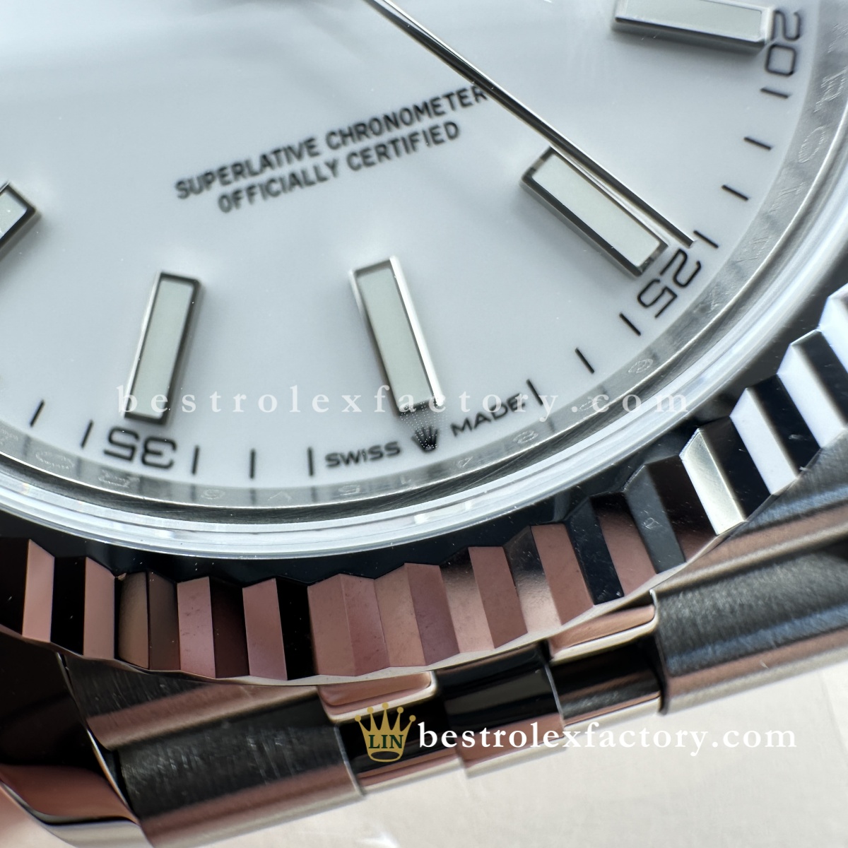 - Con i suoi 41 mm, questo modello comunica una sicurezza silenziosa. Il quadrante bianco garantisce massima versatilità e adeguatezza in ogni contesto, mentre l’oro bianco dona un lusso autentico che non ha bisogno di ostentazione. Il bracciale Jubilee aggiunge comfort e sobria eleganza, rendendo questa Datejust perfetta tanto in ambienti professionali quanto nelle occasioni formali.