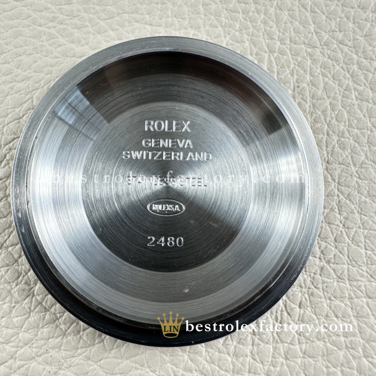 - La lente Cyclops raggiunge il corretto ingrandimento 2,5x perfettamente centrato sulla finestrella della data. I numeri replicano in ogni dettaglio le specifiche originali, e il vetro zaffiro include la corona laser incisa a ore 6, esattamente nella posizione originale.
