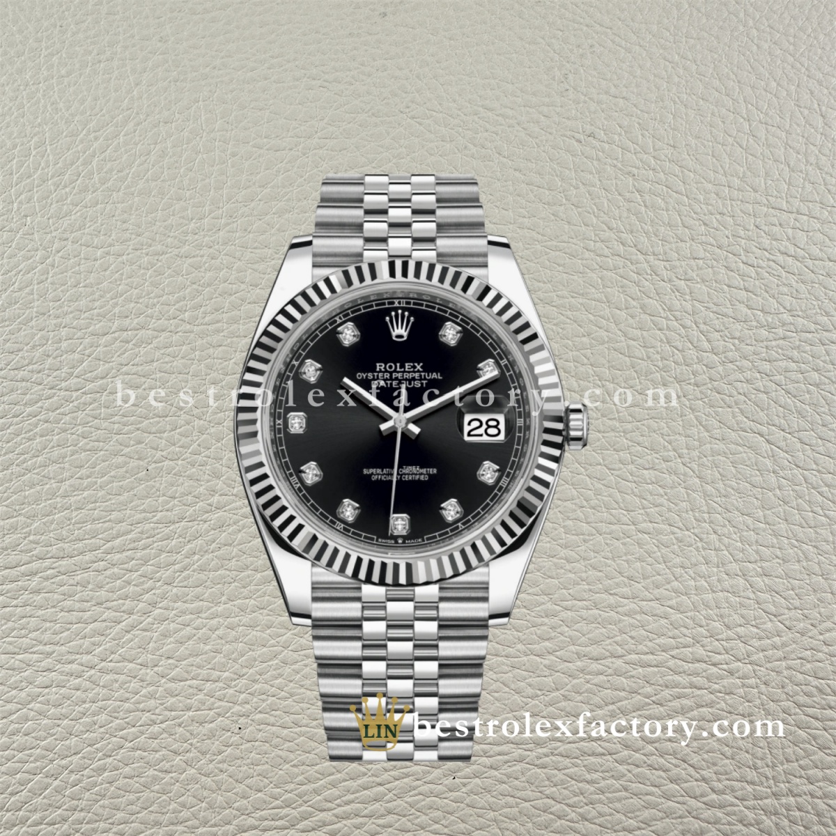 - Il Rolex Super Clone Datejust 126334-0012 di Clean Factory abbina la sofisticatezza del quadrante nero alla brillantezza dei diamanti e all’eleganza dell’oro bianco, creando una delle combinazioni più iconiche e affascinanti dell’intera collezione. I quadranti neri fanno risaltare al massimo i marcatori in diamante: lo sfondo scuro elimina ogni distrazione e permette a ogni pietra di sprigionare la sua luce. Riuscire a realizzare questa configurazione richiede la padronanza di quattro lavorazioni complesse: una finitura nera profonda e uniforme, la precisione della lunetta scanalata in oro bianco, l’incastonatura di moissanite di livello superiore e la costruzione del bracciale Jubilee a cinque maglie. La maggior parte dei produttori fatica a ottenere anche solo uno di questi elementi, ed è per questo che questa esecuzione si distingue.