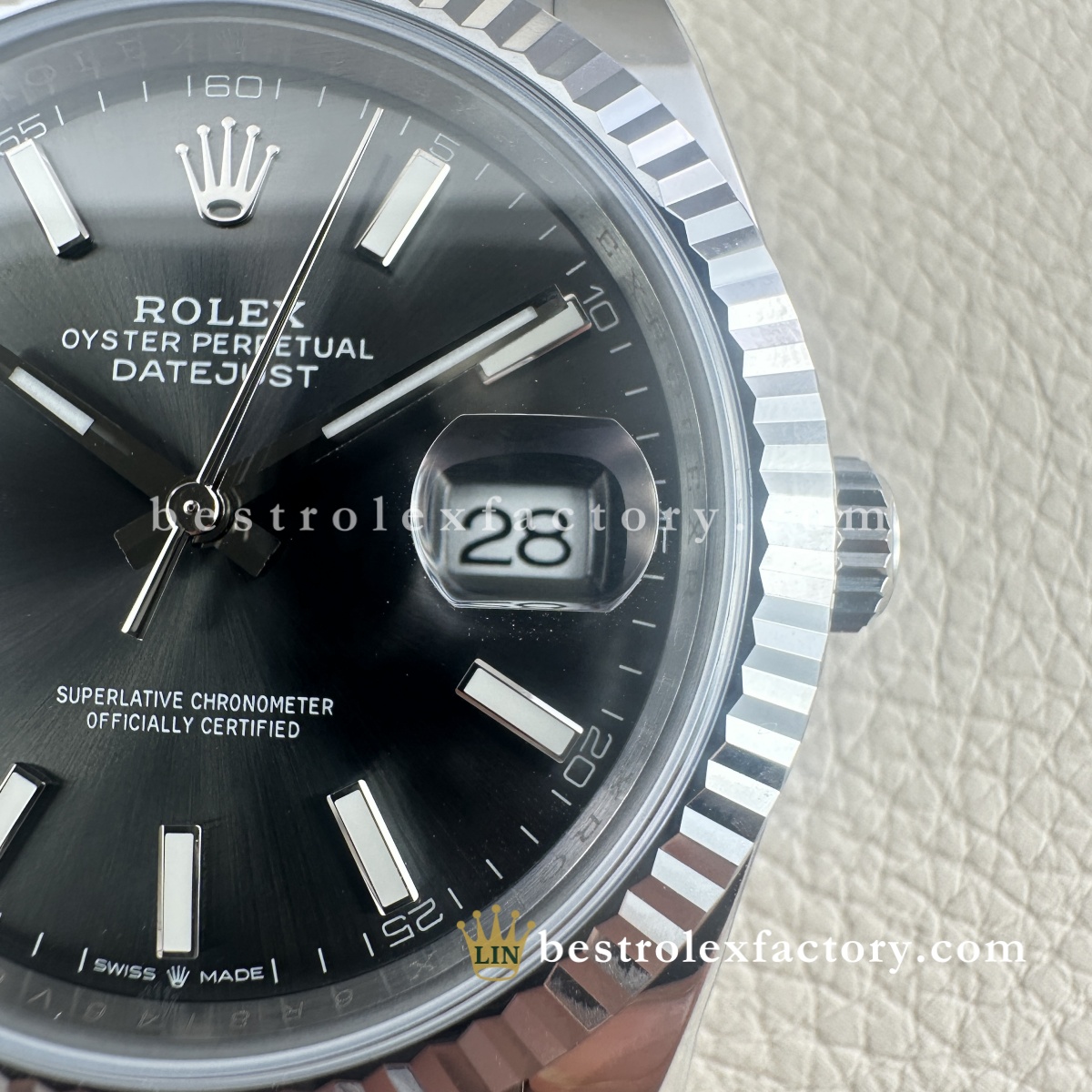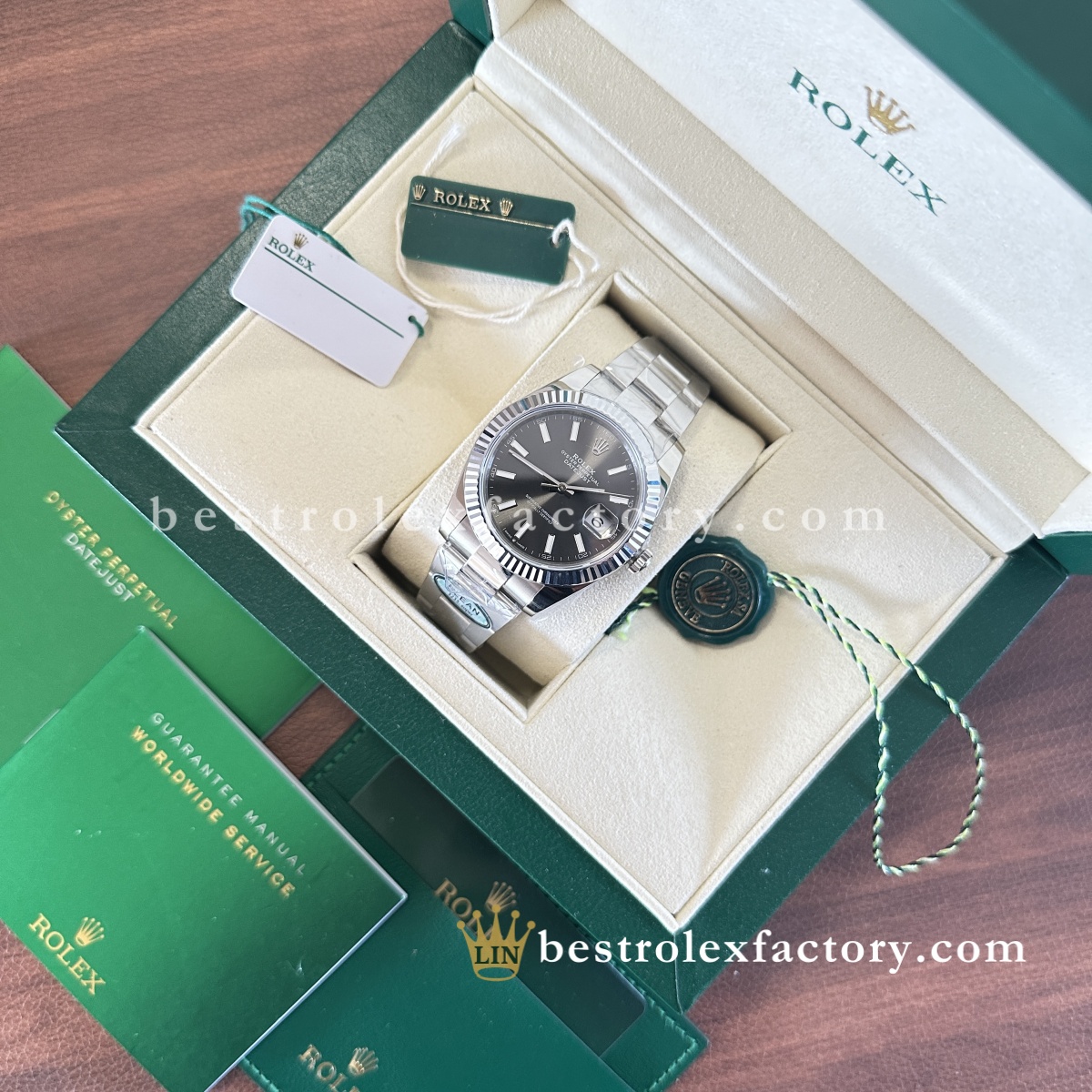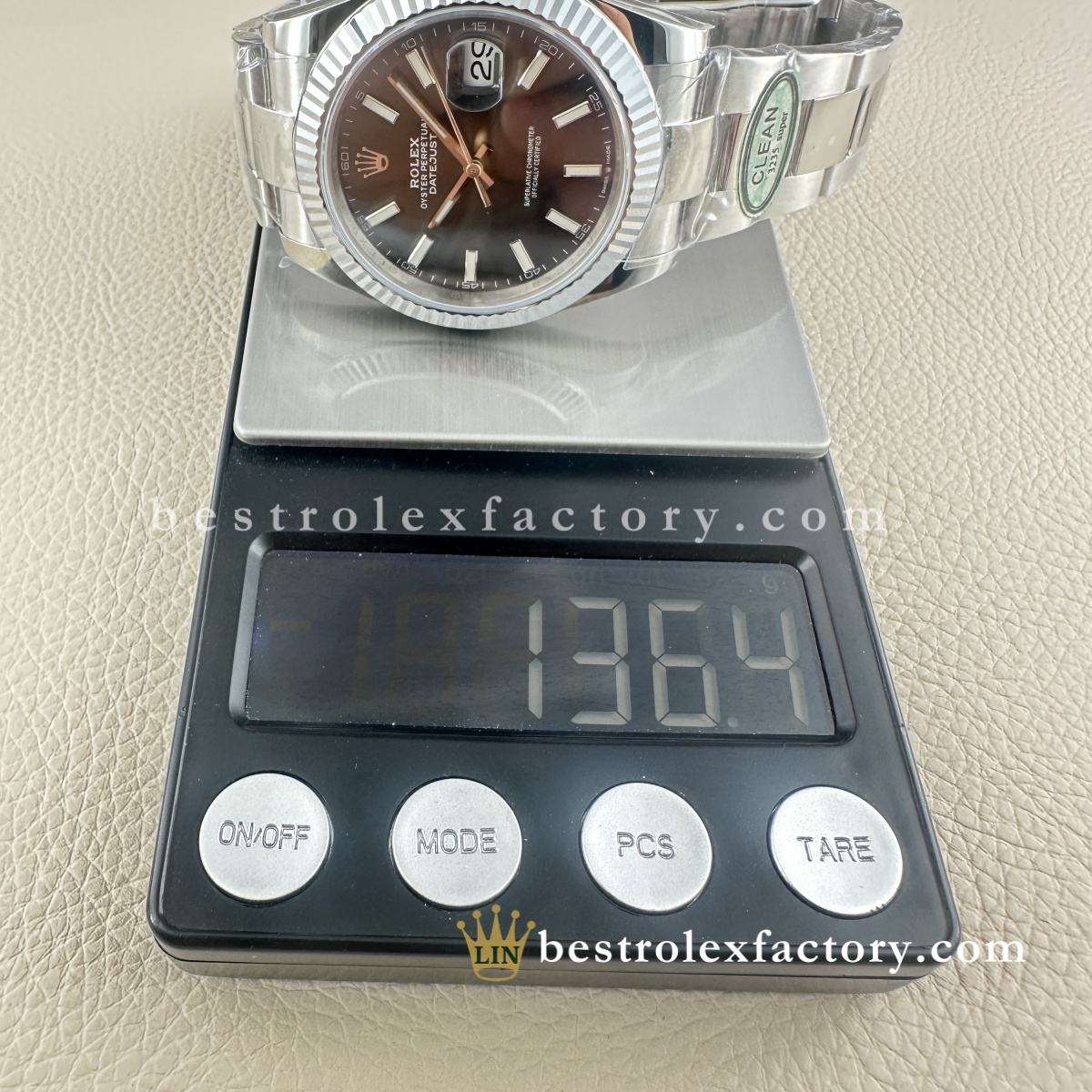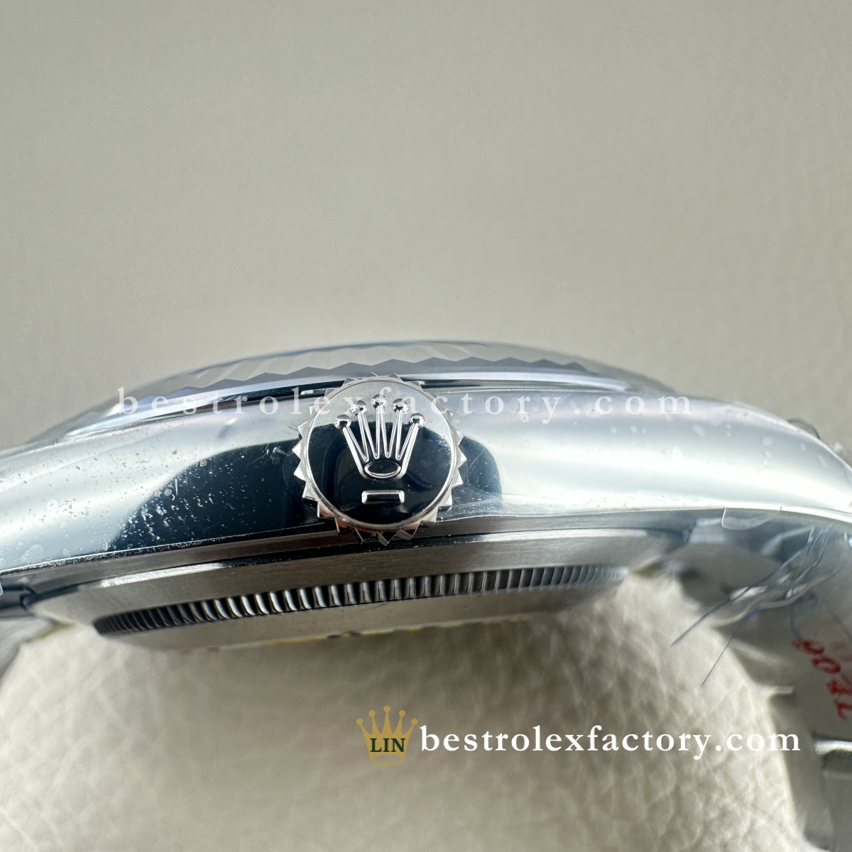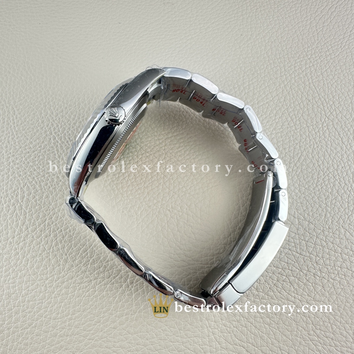- Il Super Clone Datejust 126334-0013 di Clean Factory dimostra perfettamente perché questo marchio è considerato il punto di riferimento assoluto nella produzione di repliche di fascia alta. Questa versione unisce l’esigente quadrante grigio con la lunetta scanalata in oro bianco e il bracciale Oyster invece del Jubilee. Se lo metti accanto a un Rolex originale, farai fatica a trovare differenze: la qualità convince davvero.