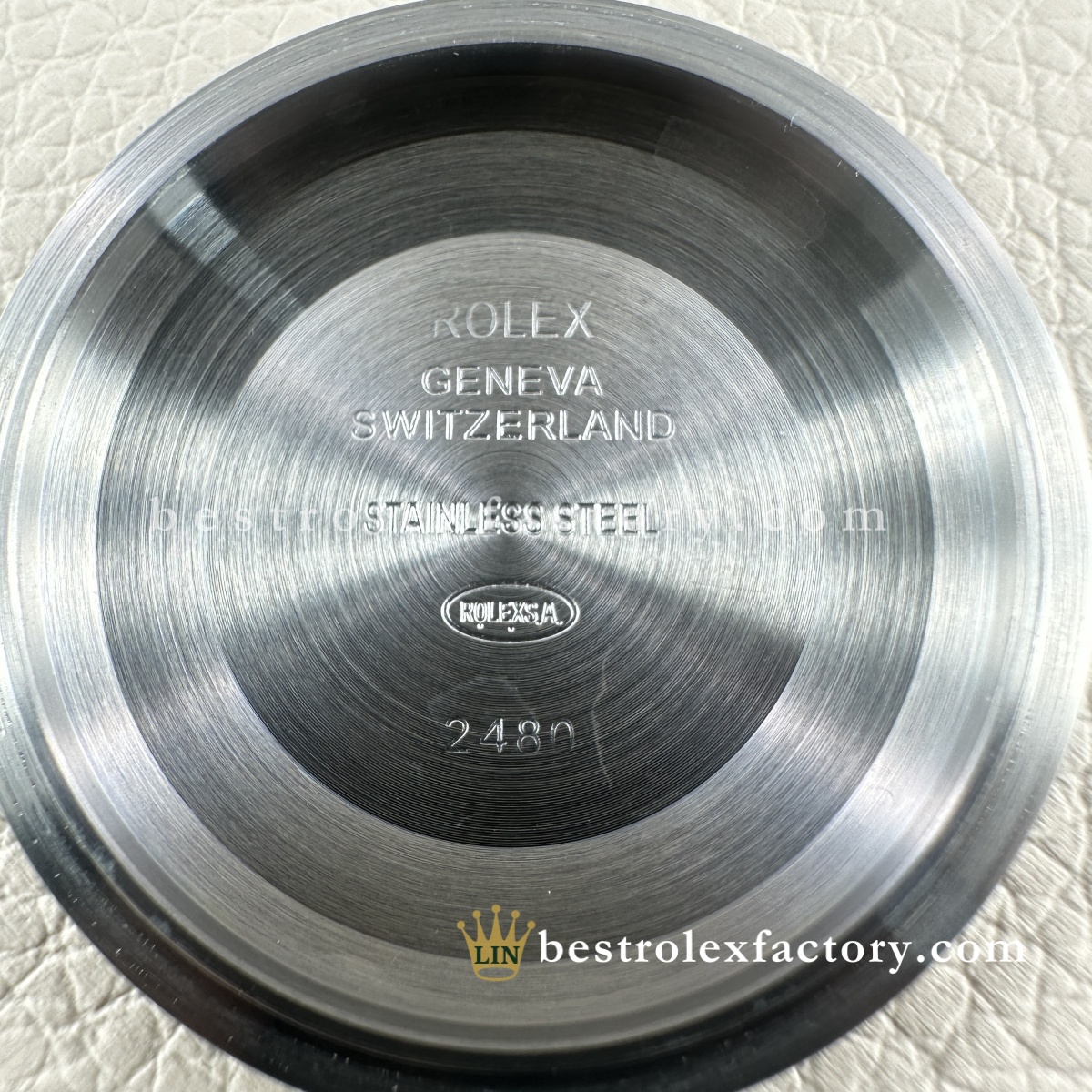 - Anche le scritte stampate—“OYSTER PERPETUAL” e “SUPERLATIVE CHRONOMETER”—sono perfette. L’inchiostro svizzero a base oleosa ha lo stesso spessore e la stessa texture dell’originale, con una tipografia impeccabile e spaziature che seguono con precisione la curvatura del quadrante.