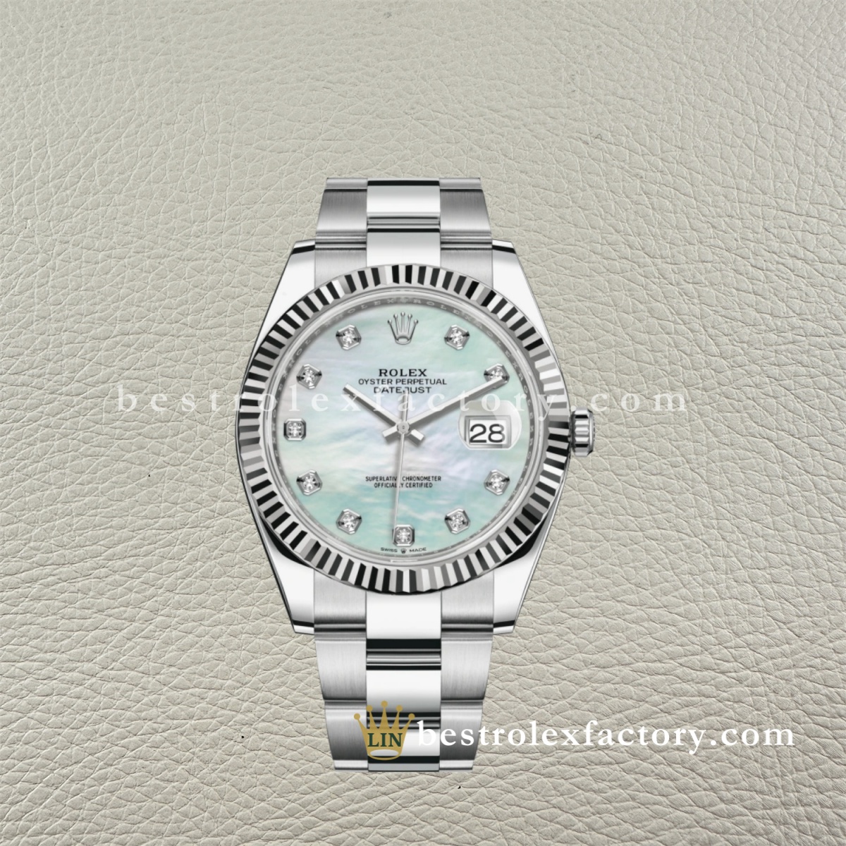 - Il Super Clone Rolex Datejust 126334-0019 di Clean Factory affronta una delle combinazioni più tecnicamente complesse dell’orologeria di lusso: quadrante in madreperla, indici in diamante e lunetta zigrinata in oro bianco. La maggior parte dei produttori non osa nemmeno tentare una configurazione simile, perché lavorare con un materiale naturale così delicato richiede competenze e macchinari specializzati che quasi nessuno possiede. Se lo metti accanto a un Rolex originale, capirai subito perché Clean Factory si è guadagnata la reputazione di saper realizzare ciò che sembrava irraggiungibile.