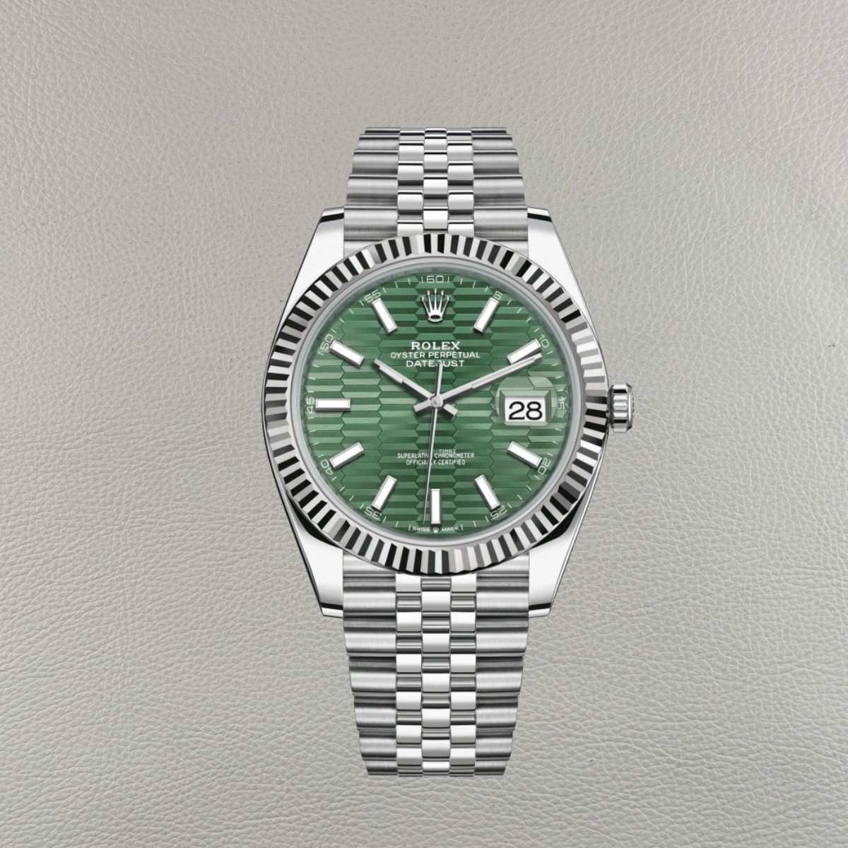 - Se stai cercando l’espressione finale del design audace e moderno di Rolex abbinato alla finitura senza tempo, questo fluted-motif verde su Jubilee è il meglio che puoi ottenere. L'artigianato va ben oltre l'aspetto superficiale—cattura la sensazione tattile, la finezza meccanica e la complessità visiva che definiscono il vero Rolex.